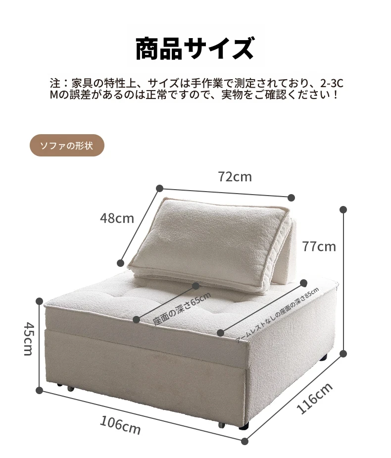 【フラッグシップモデルクッション厚手】2385メートル白色ソファベッド1.2メートル