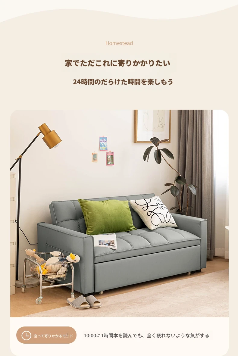 2385グレーソファベッド1.56メートル標準タイプ(2つのクッション付き)