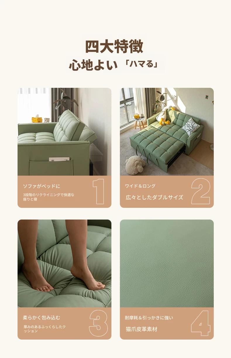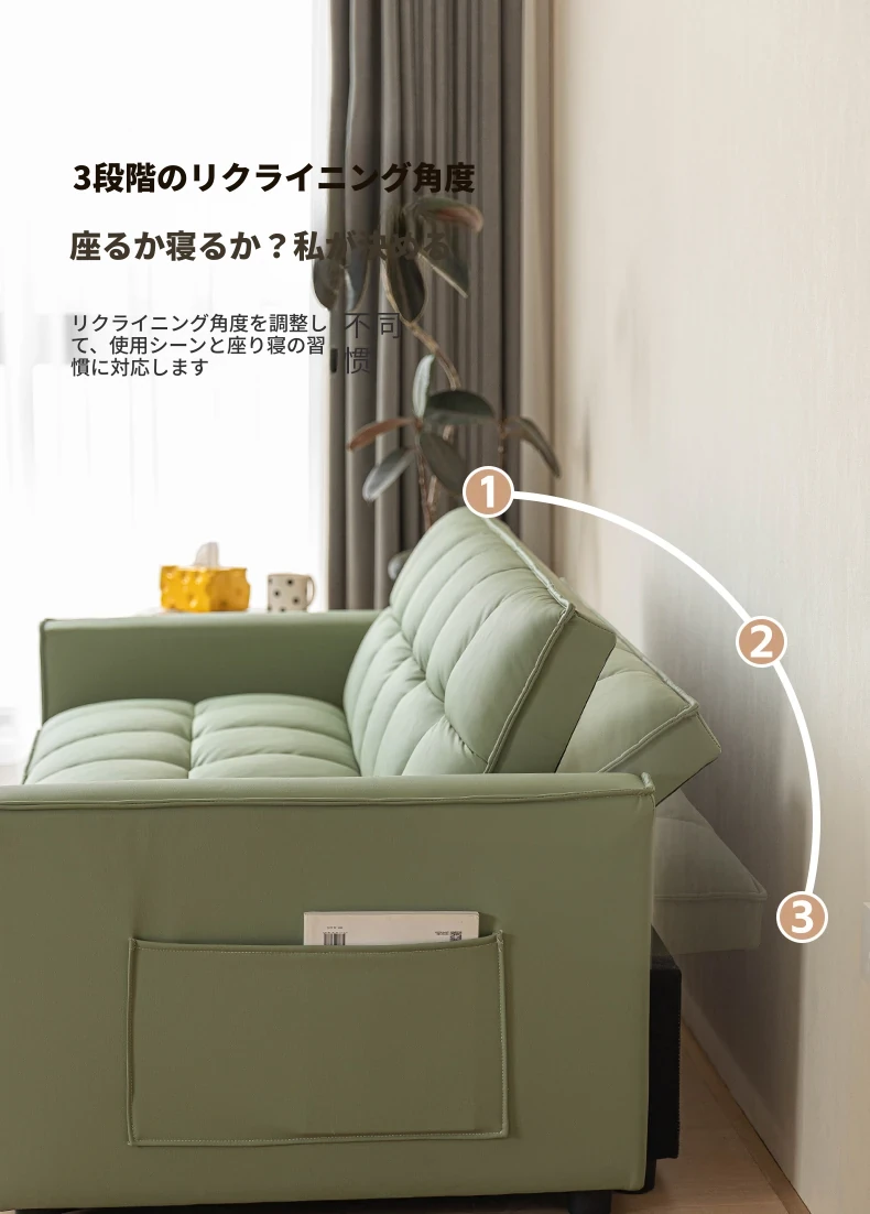 【フラッグシップモデルクッション厚手】2385豆沙緑ソファベッド1.2メートル