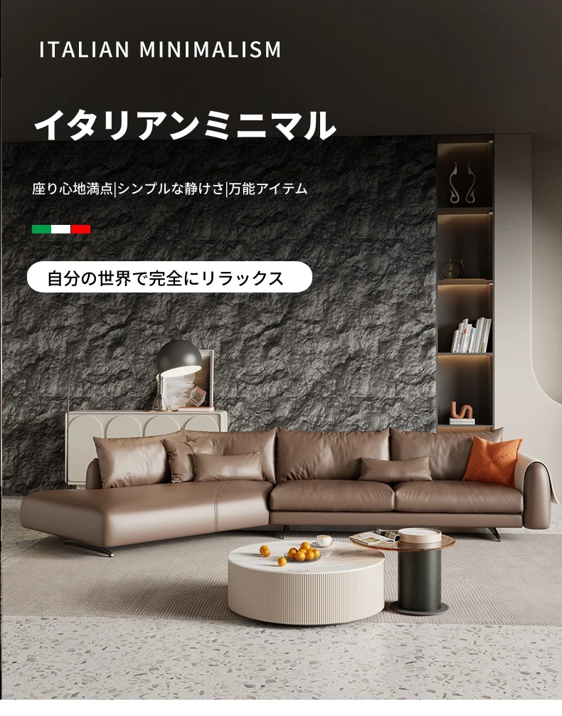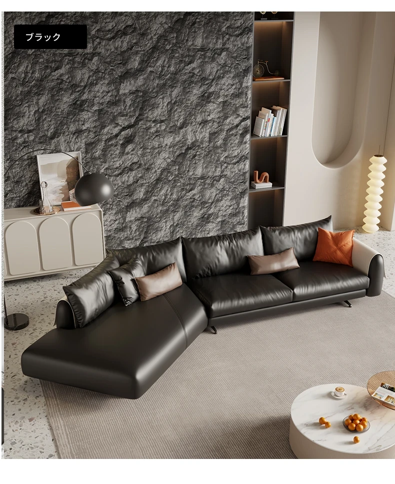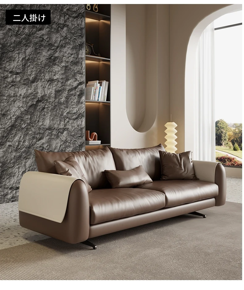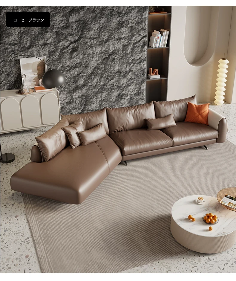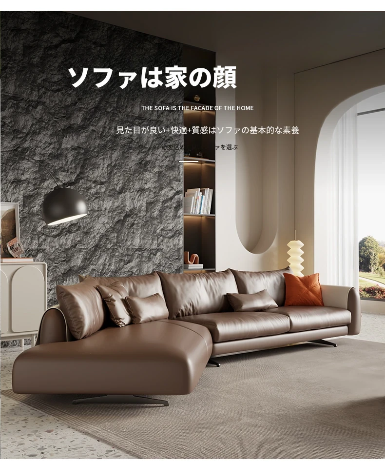 デザイナーによるイタリアンミニマリズム真皮ソファ - ユニークな形状のアーチ型デザイン、コンパクトなリビングにも最適なコーナータイプのフィアンセソファ。おしゃれで機能的な空間を演出します!