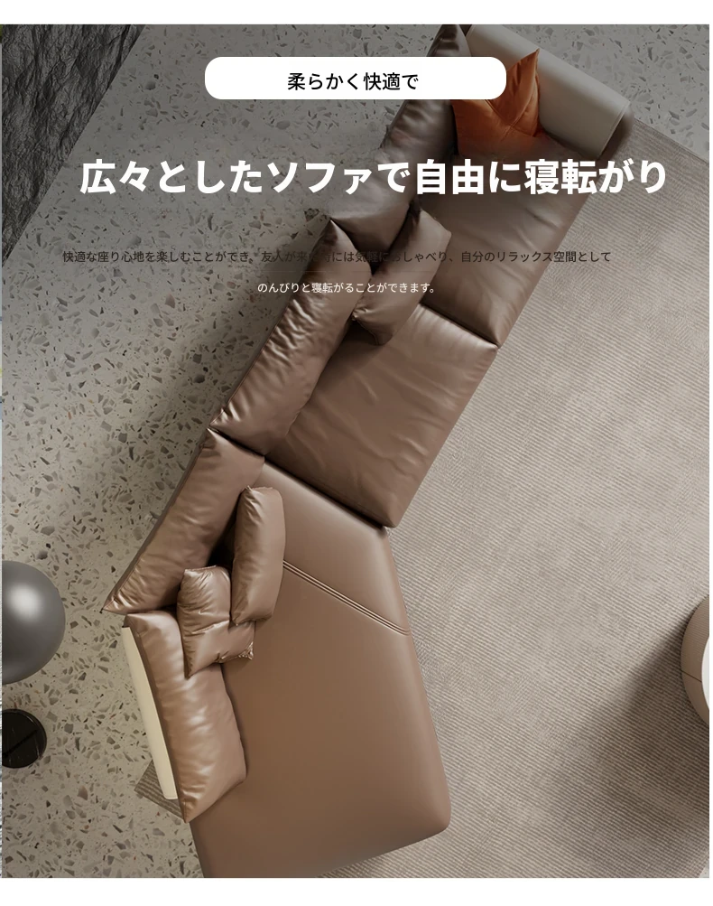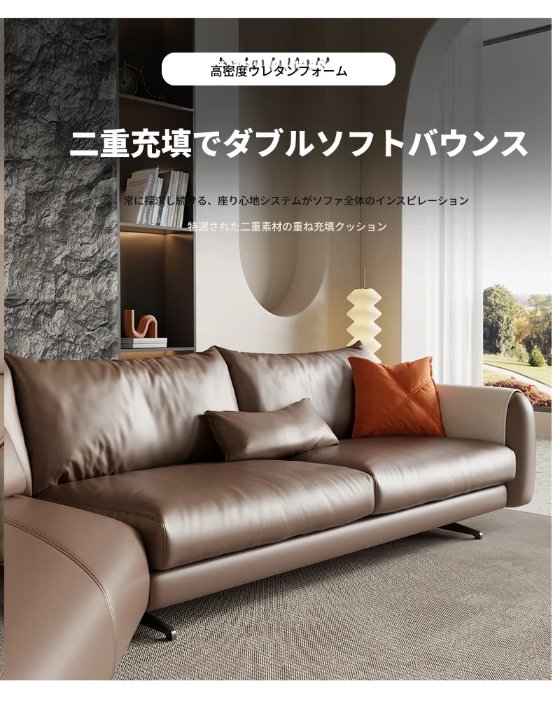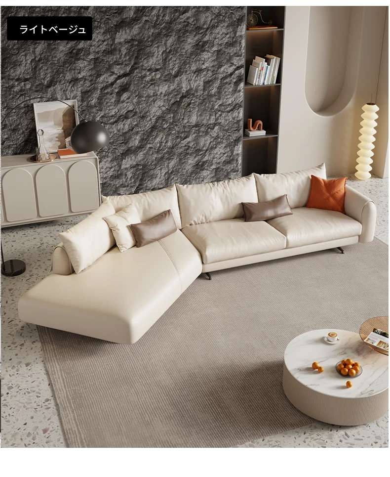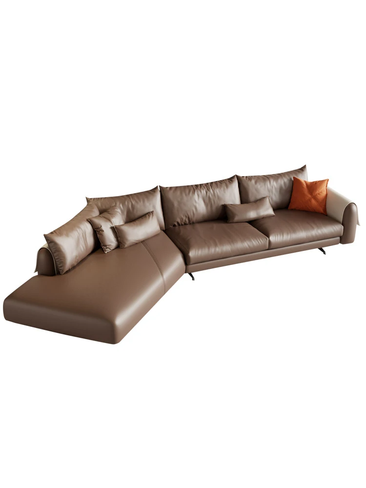 デザイナーによるイタリアンミニマリズム真皮ソファ - ユニークな形状のアーチ型デザイン、コンパクトなリビングにも最適なコーナータイプのフィアンセソファ。おしゃれで機能的な空間を演出します!