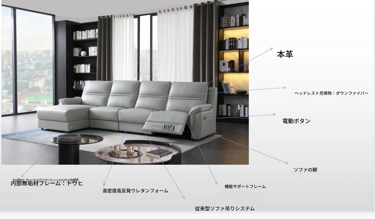 イーライプン - 8818 本革機能ソファー ロシア産落葉松使用 上質な牛革で快適な座り心地を実現!