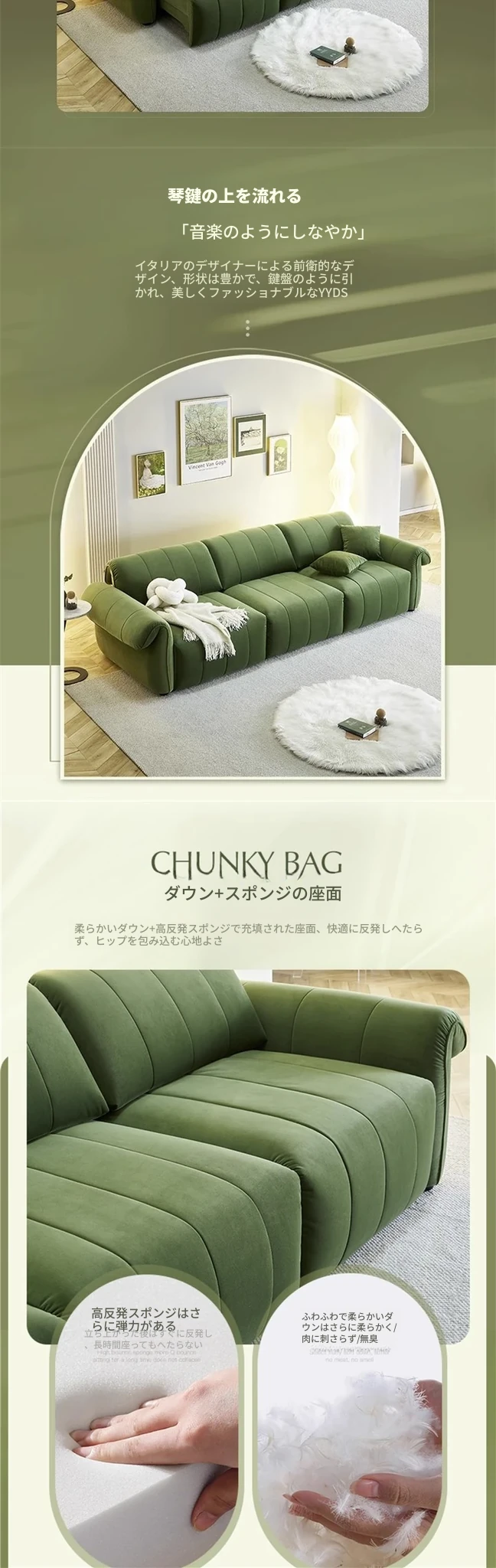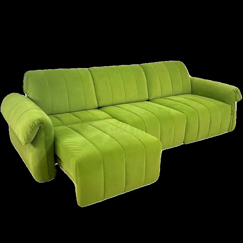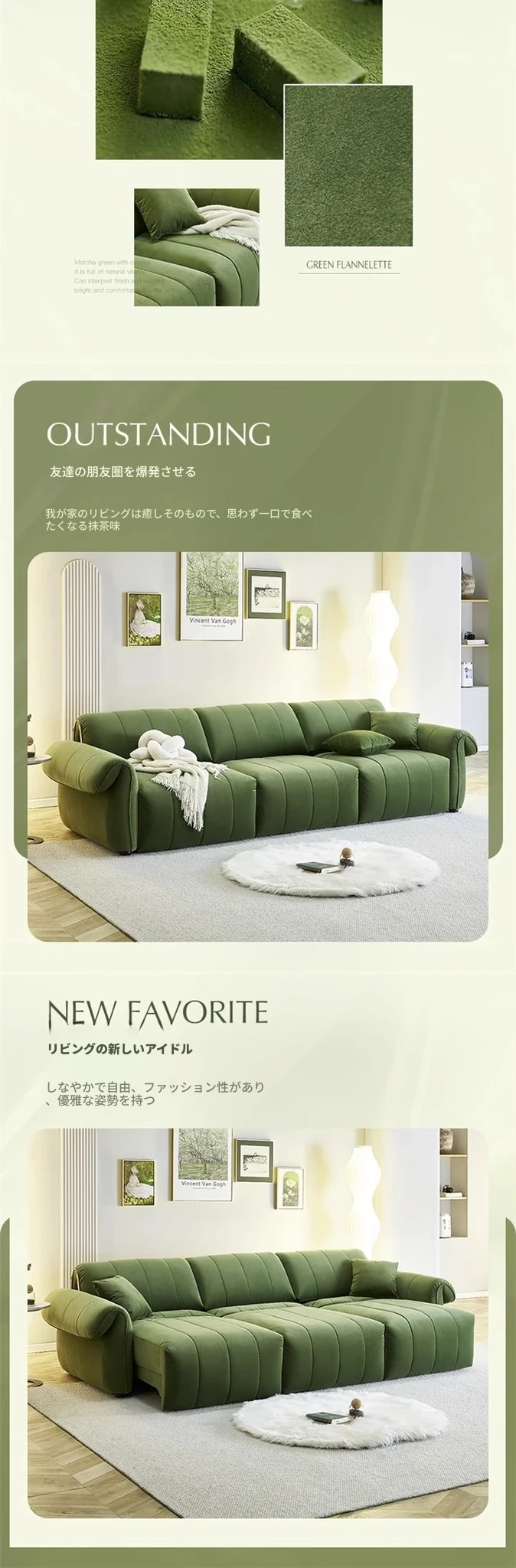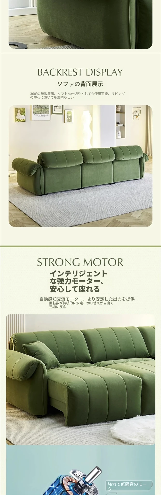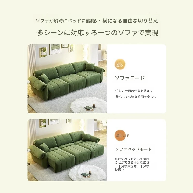 電動機能ソファベッド・リビング向けシンプルなオクトパスデザイン、伸縮可能な侘寂風モスグリーンのストレートファブリックソファで、心地よい空間を演出します。