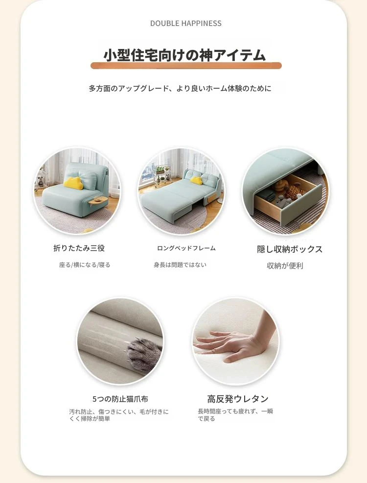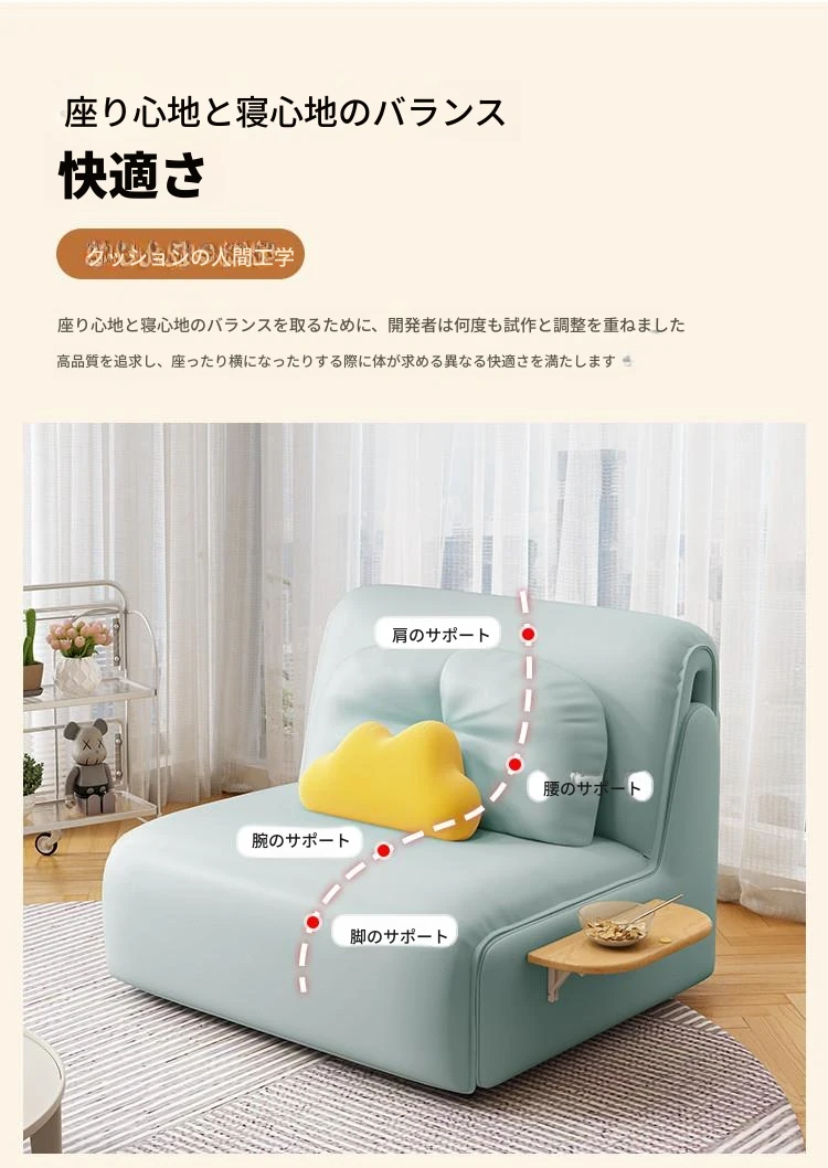 電動多機能ソファベッド 折りたたみ・伸縮可能 小型住宅に最適なリビング・書斎用 人気のデザイン ダブル・シングル両用