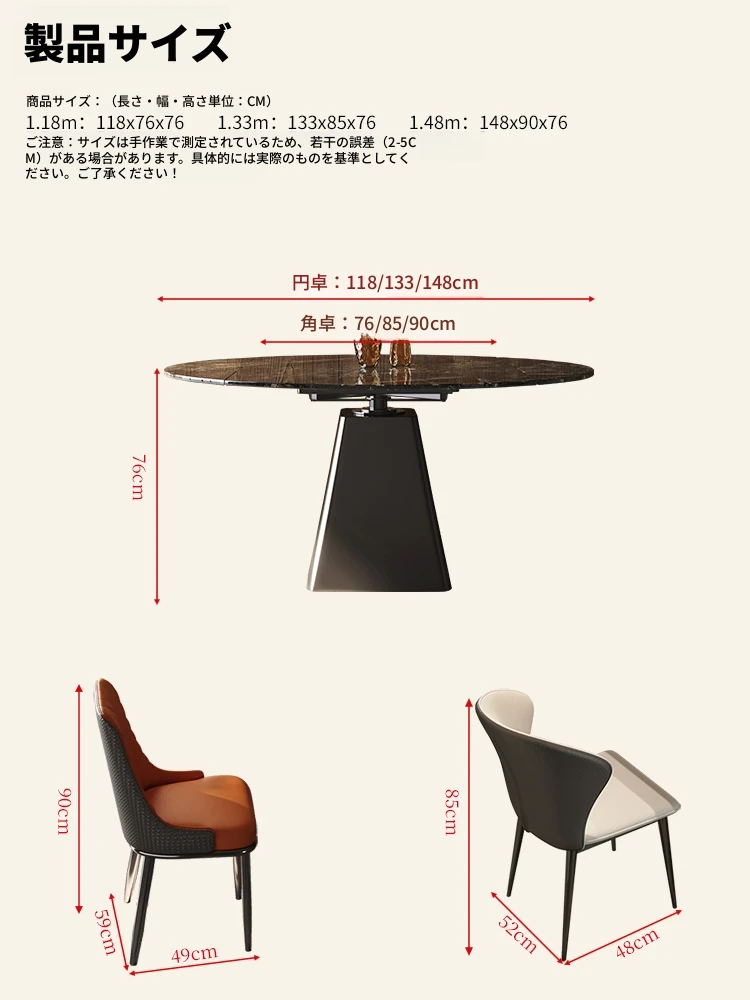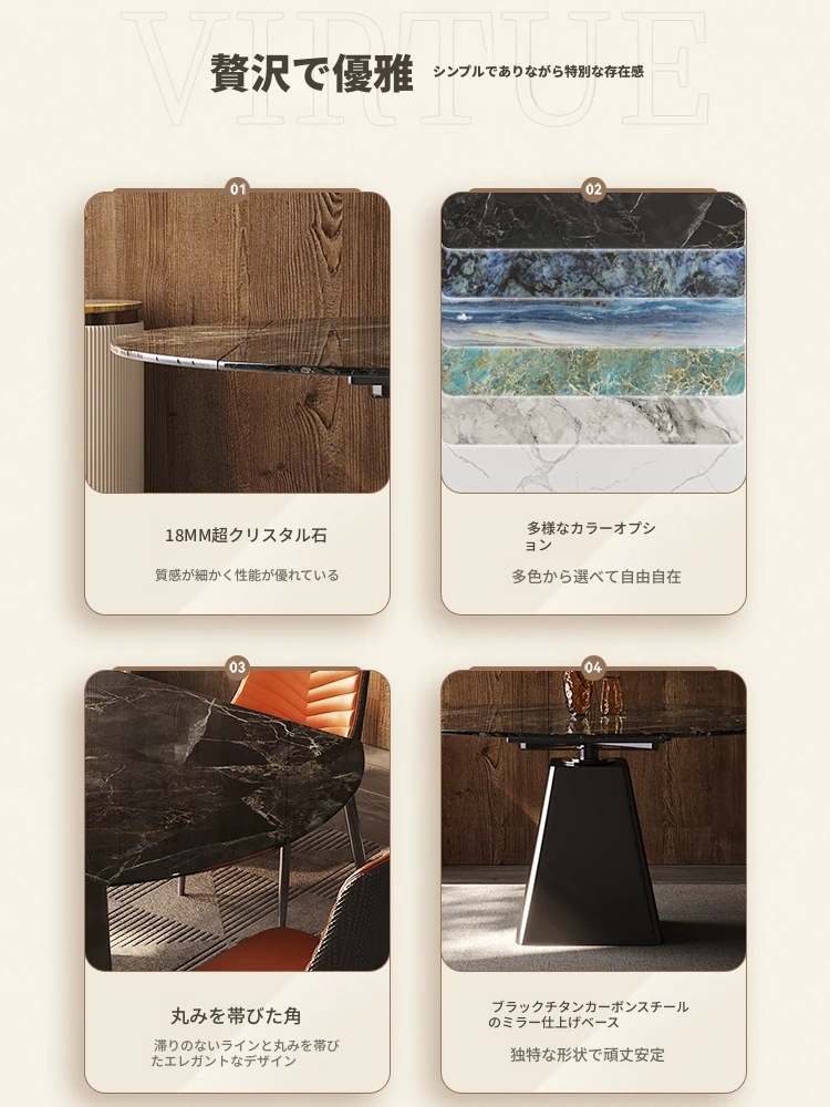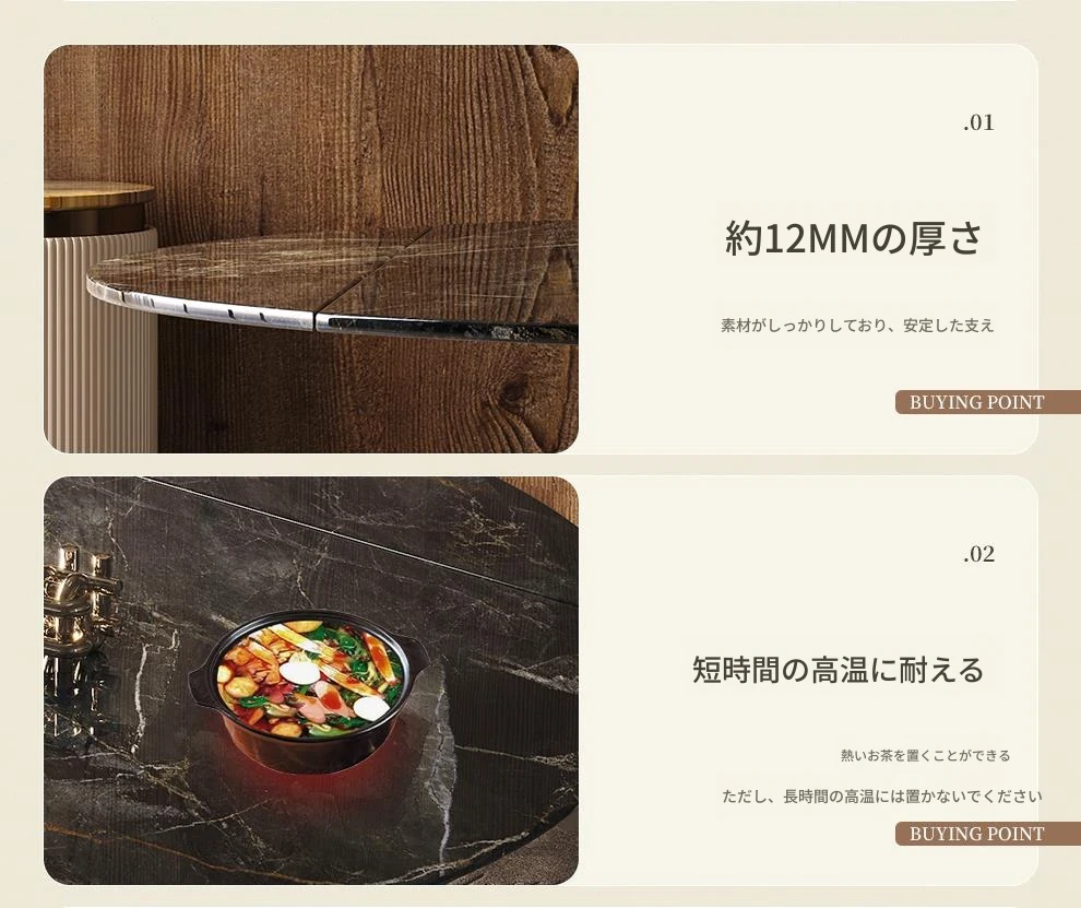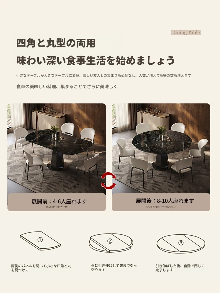 加厚超晶石【厚12mm】単一ダイニングテーブル-ミュンヘン 丸四角兼用タイプ