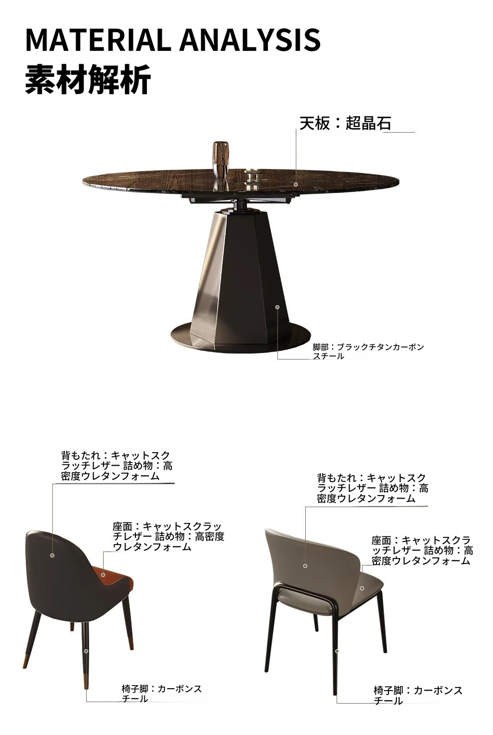 小スペースにぴったり!回転&伸縮機能付き、エレガントなイタリアンデザインの超クリスタル石製ダイニングテーブル&チェアセット。食事の時間を特別なものに!