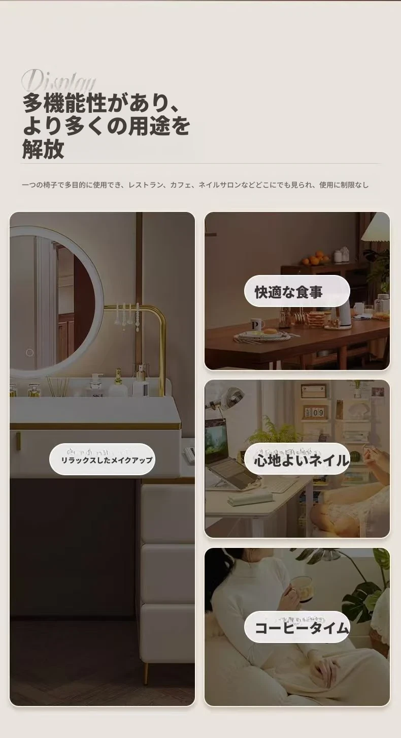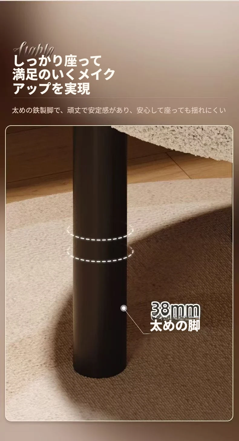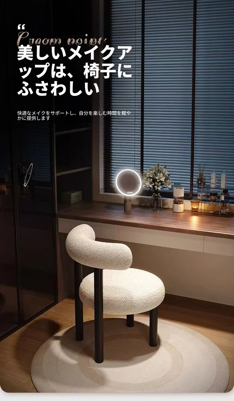 軽やかで高級感溢れる化粧台用スツール|モダンでシンプルなデザイン|女性のための理想的なメイクアップチェア|おしゃれな寝室にぴったり!