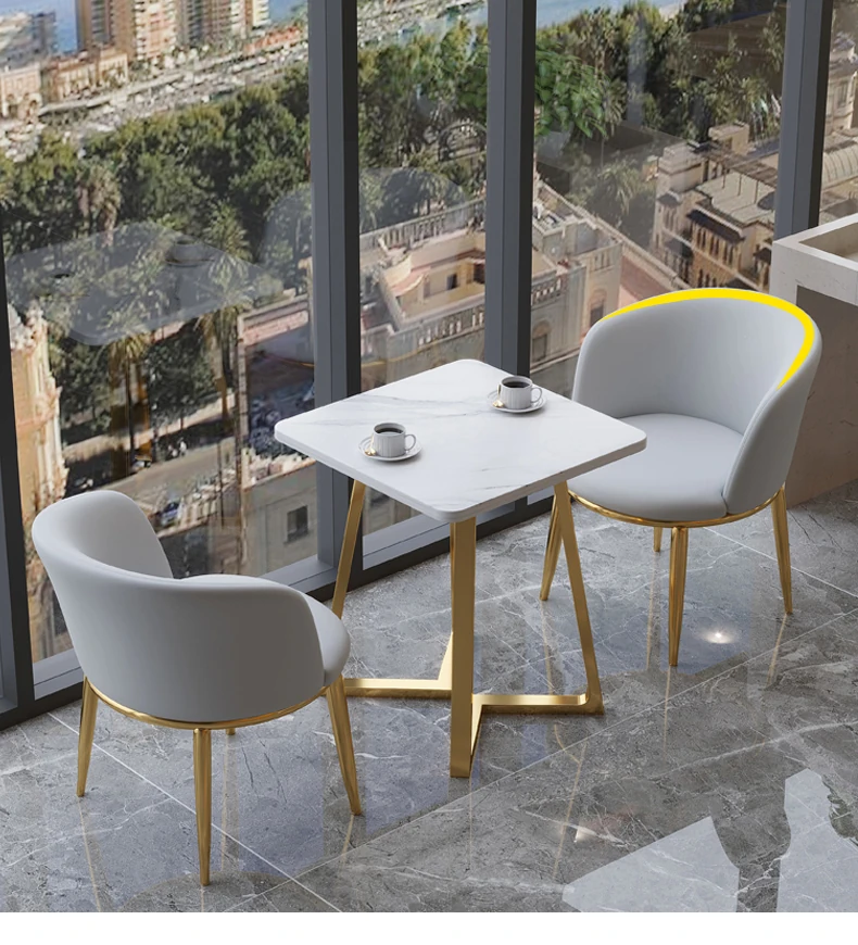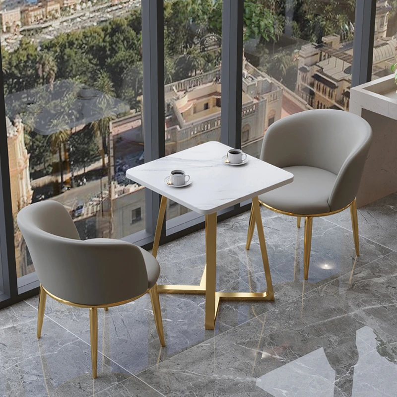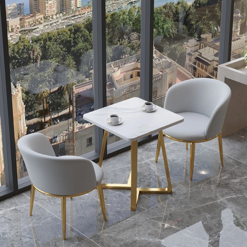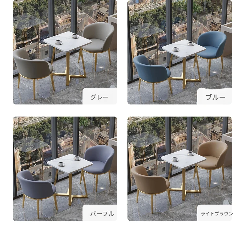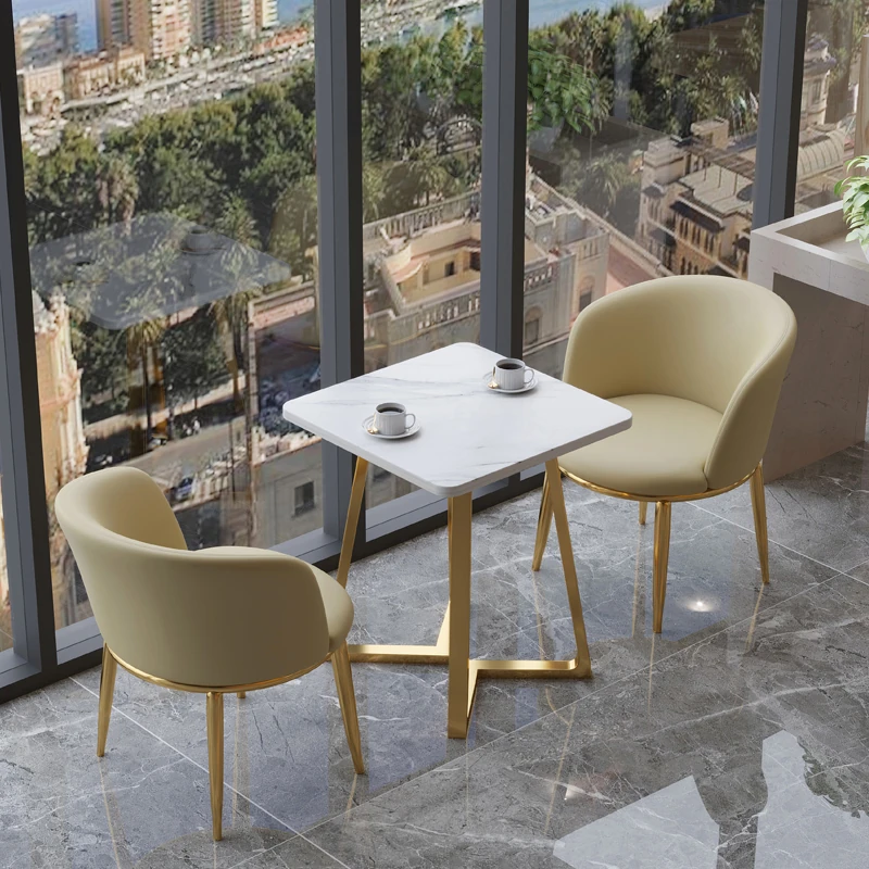 シンプルでスタイリッシュな接待テーブルセット|軽やかなラグジュアリー感漂う会議テーブル|オフィスや店舗に最適なカジュアルな円形・四角テーブル。快適なひとときを提供します!