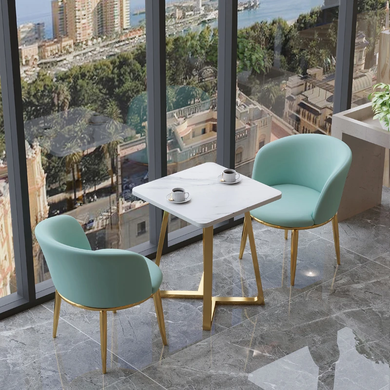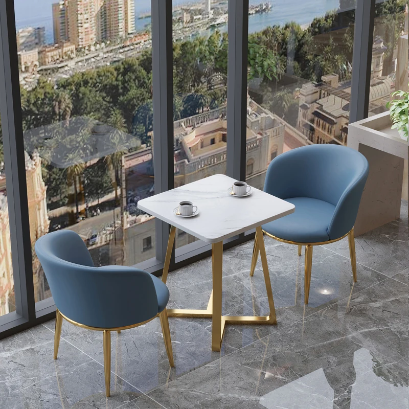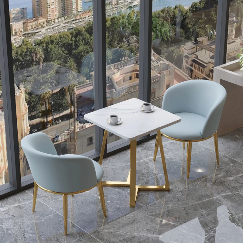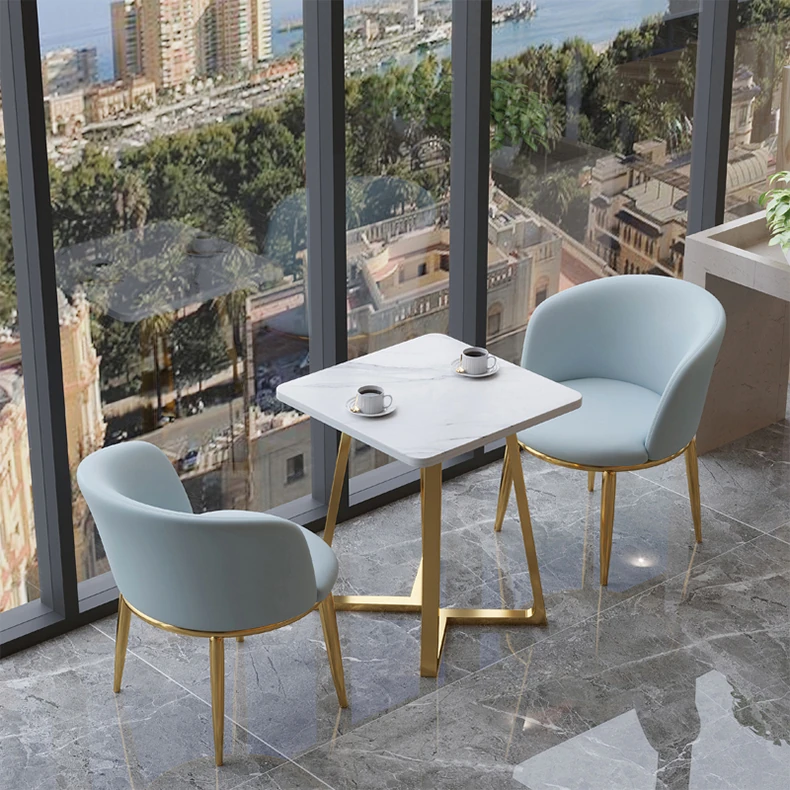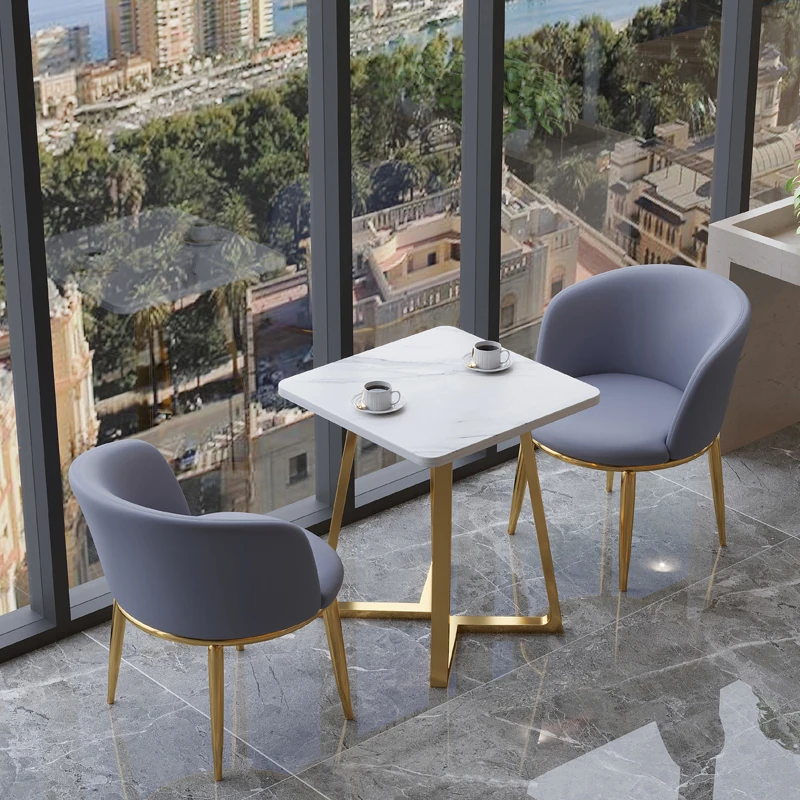 シンプルでスタイリッシュな接待テーブルセット|軽やかなラグジュアリー感漂う会議テーブル|オフィスや店舗に最適なカジュアルな円形・四角テーブル。快適なひとときを提供します!