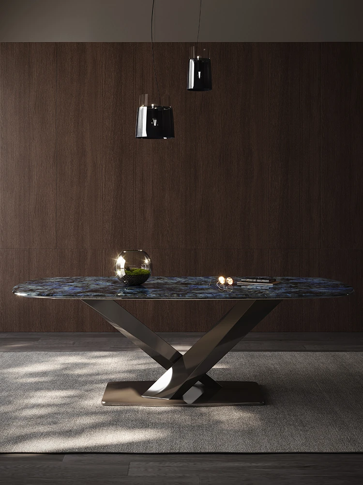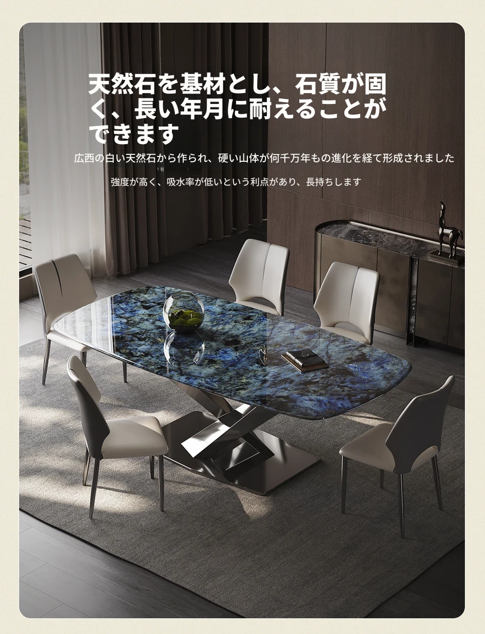 加厚超晶石【厚18mm】単一ダイニングテーブル-サファイア