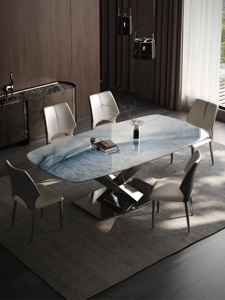 加厚超晶石【厚18mm】単一ダイニングテーブル-ブルークリスタル