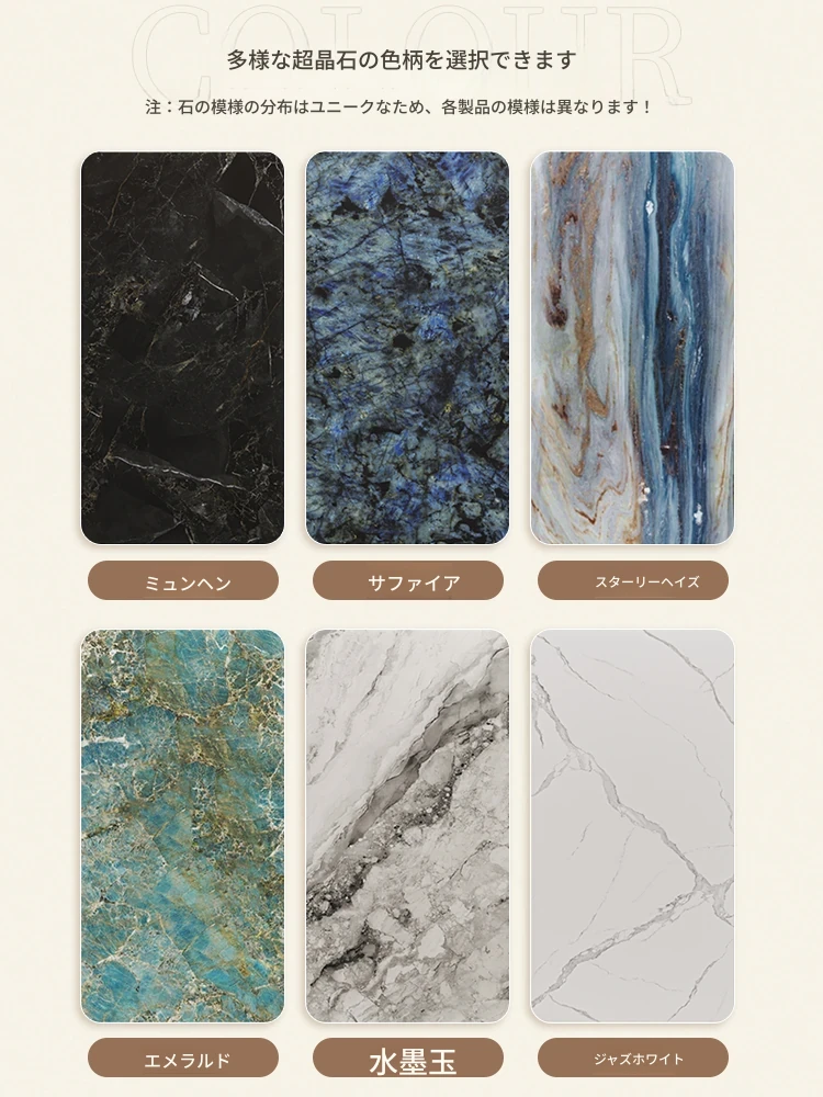 加厚超晶石【厚18mm】単一ダイニングテーブル-水墨玉
