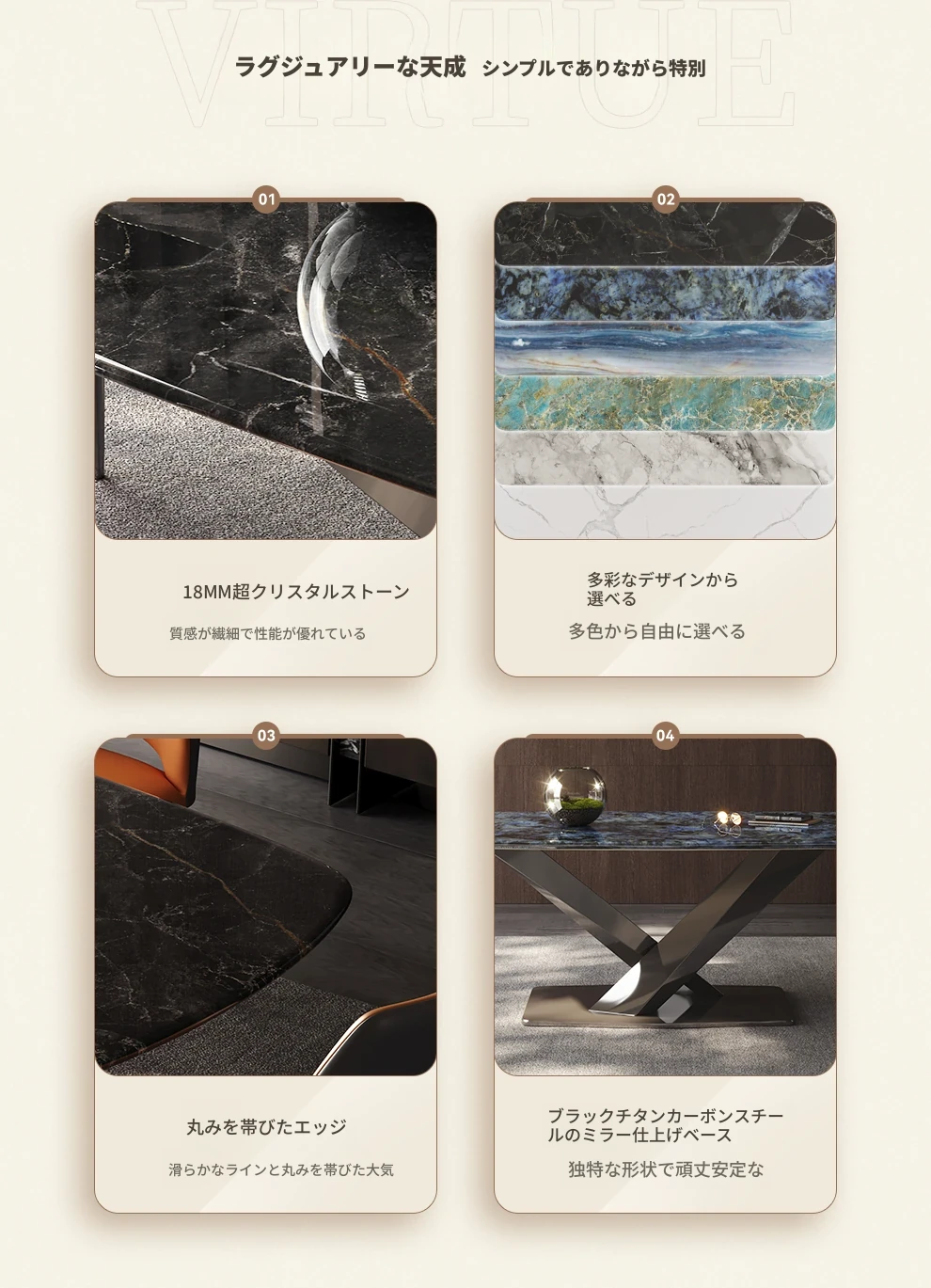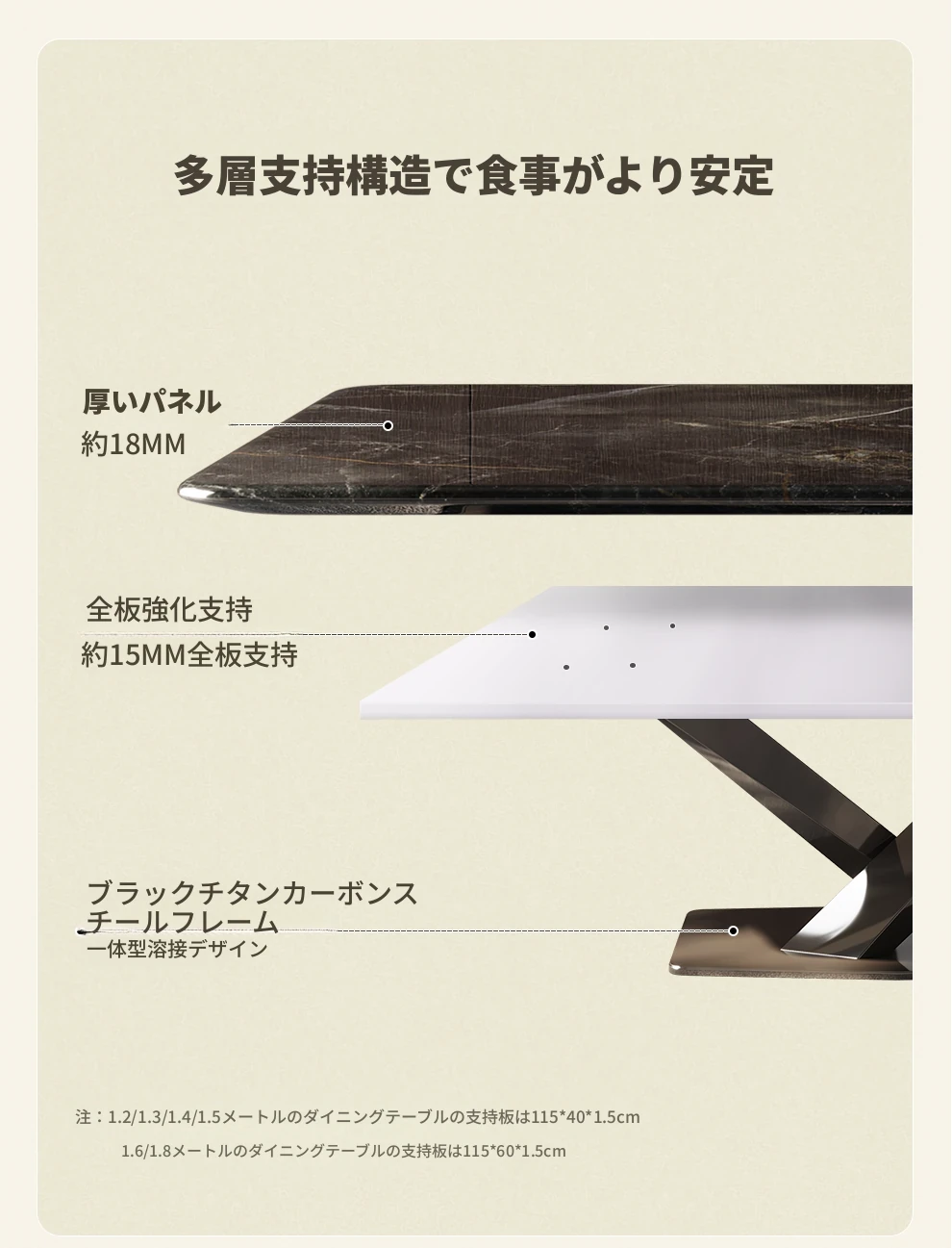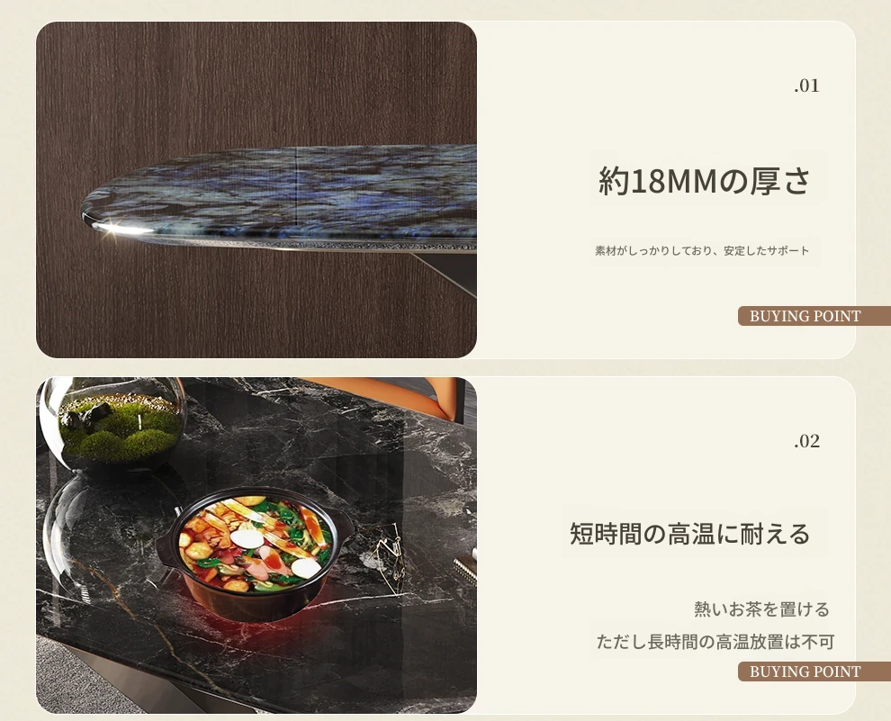 加厚超晶石【厚18mm】単一ダイニングテーブル-ミュンヘン