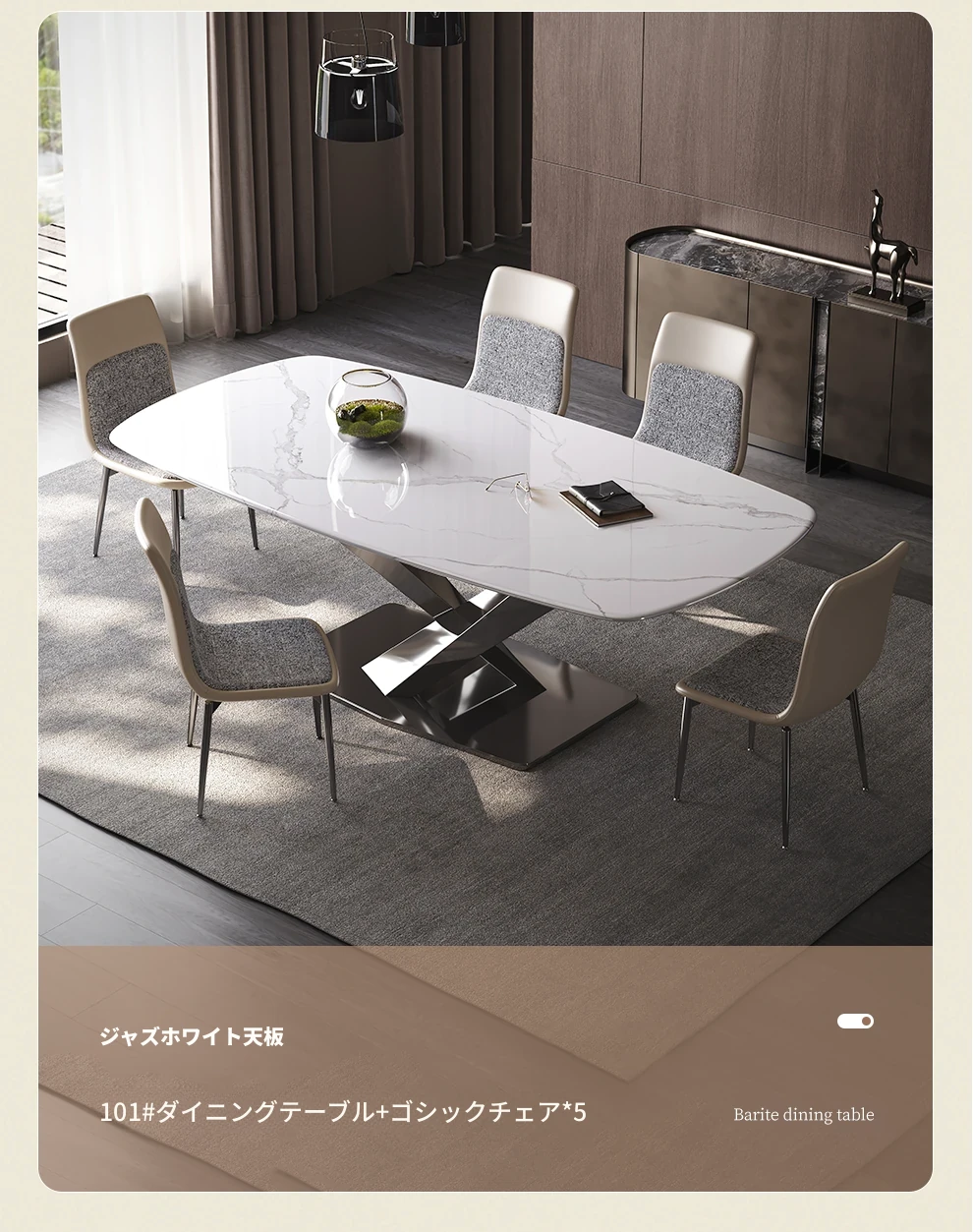 高級感溢れるミニマルデザインの超クリスタルストーンダイニングテーブル|狭い空間にも最適な現代的なマイクロクリスタルストーン製|厚手大理石仕上げで耐久性抜群!