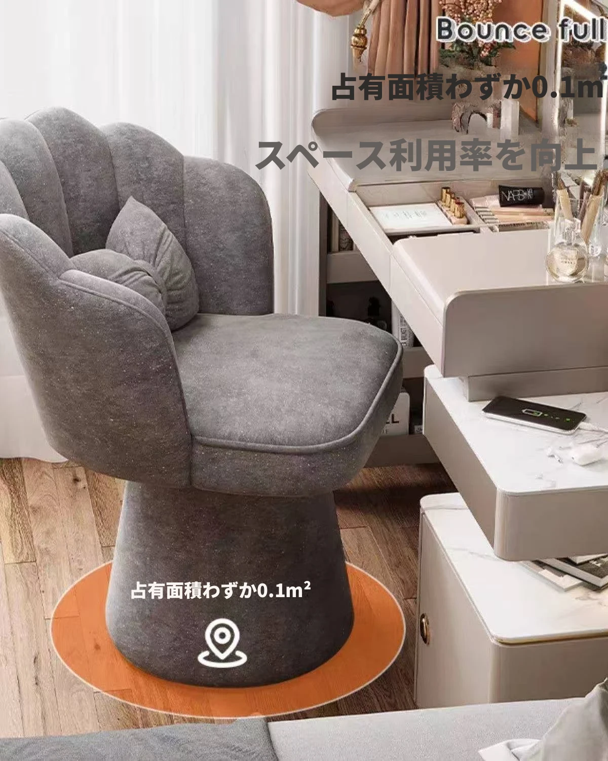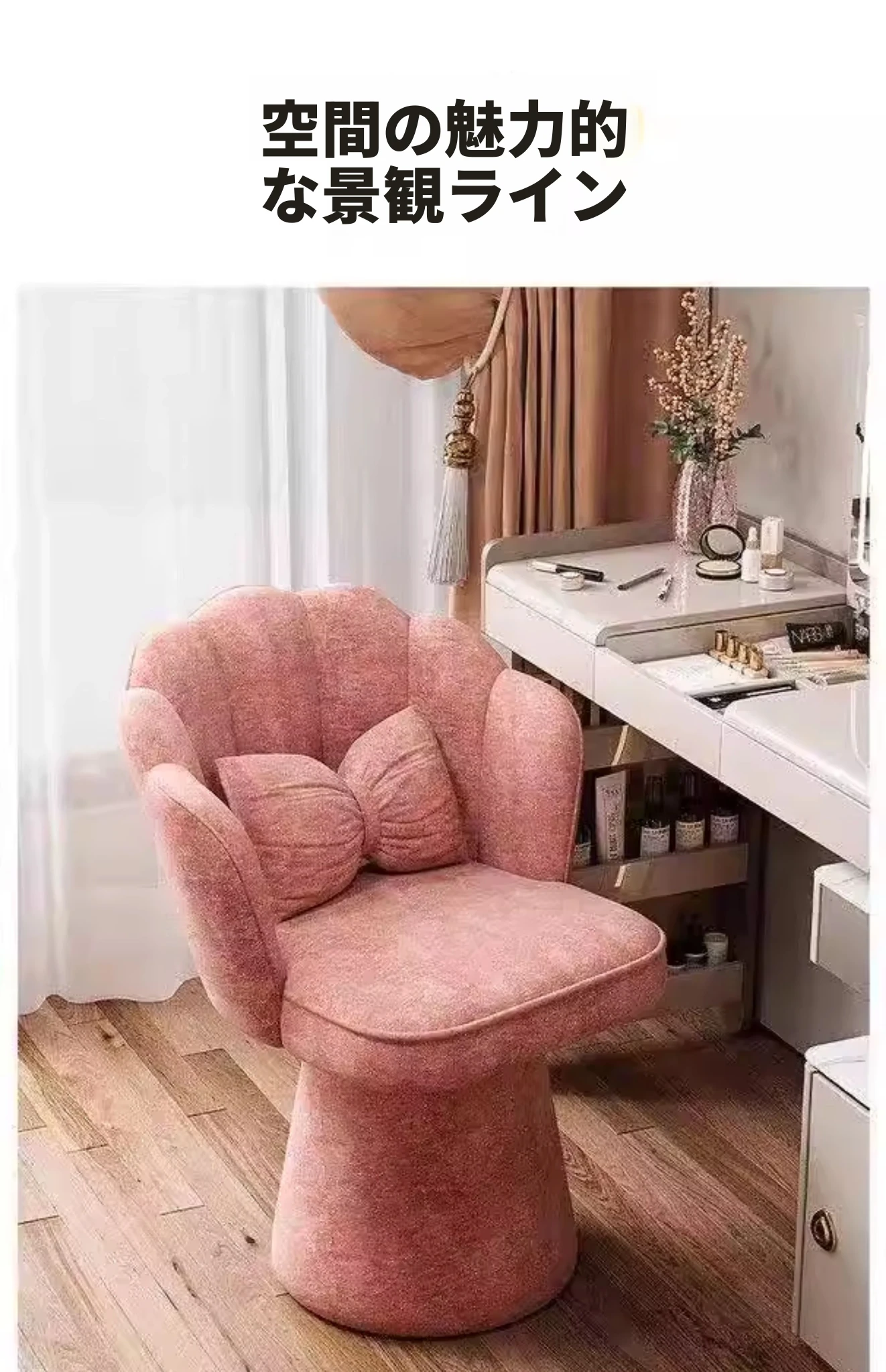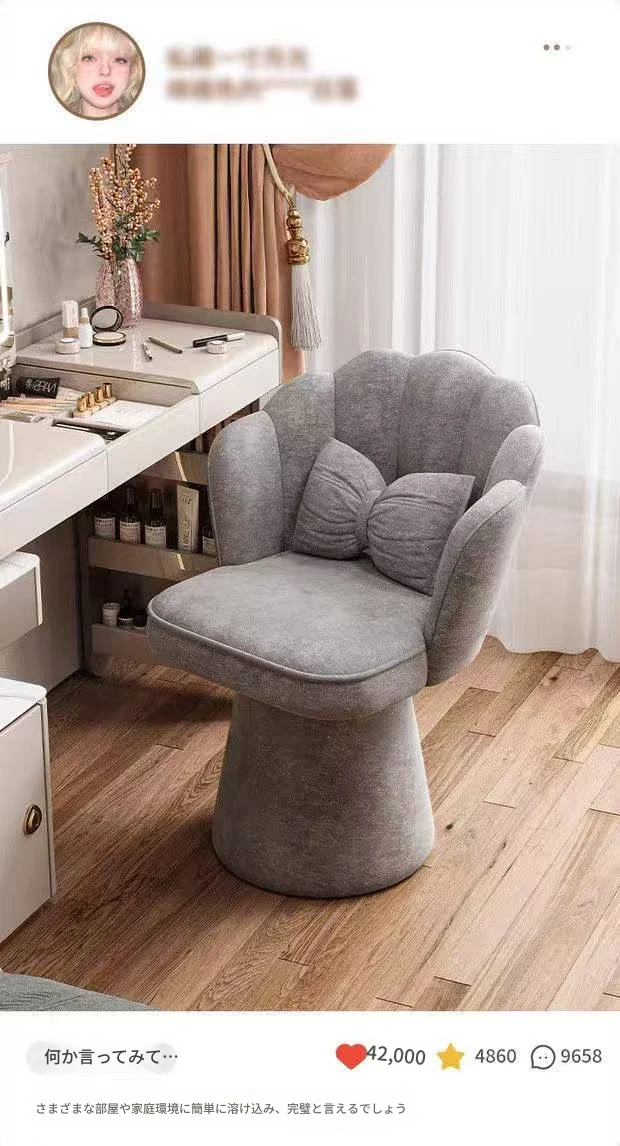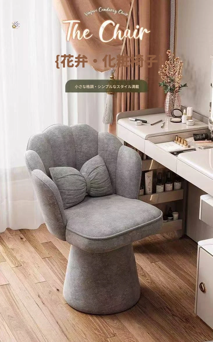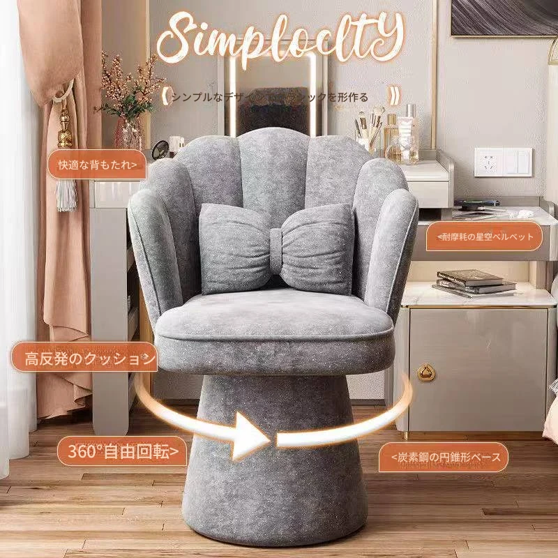 おしゃれで高級感あふれる回転式メイクアップスツール - 女の子のための寝室にぴったりな化粧台チェア。背もたれ付きで快適、ネイルにも最適なデザイン!あなたのビューティータイムを格上げします。