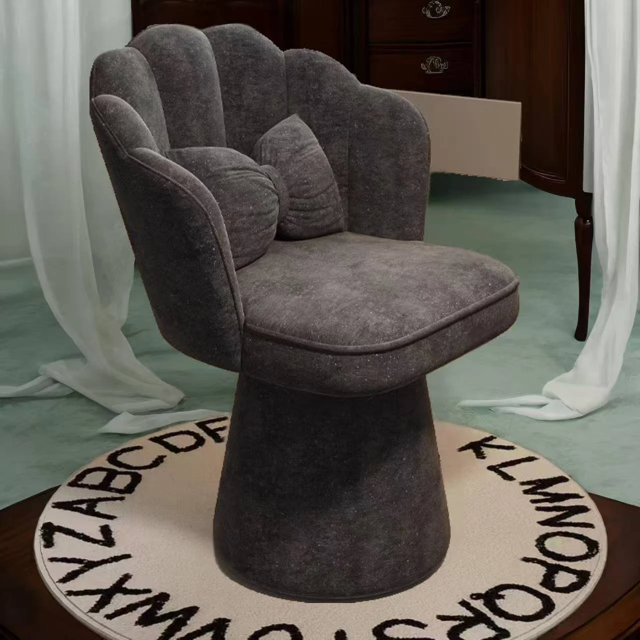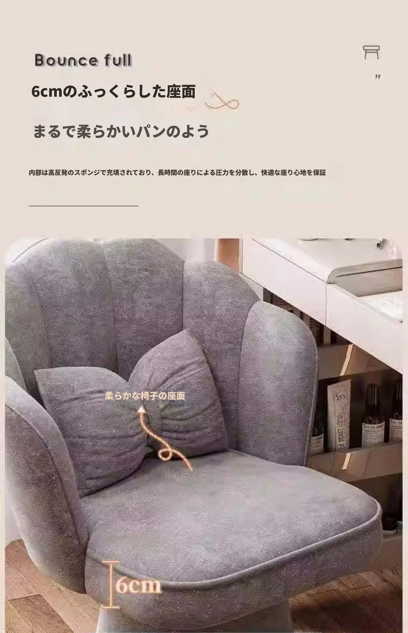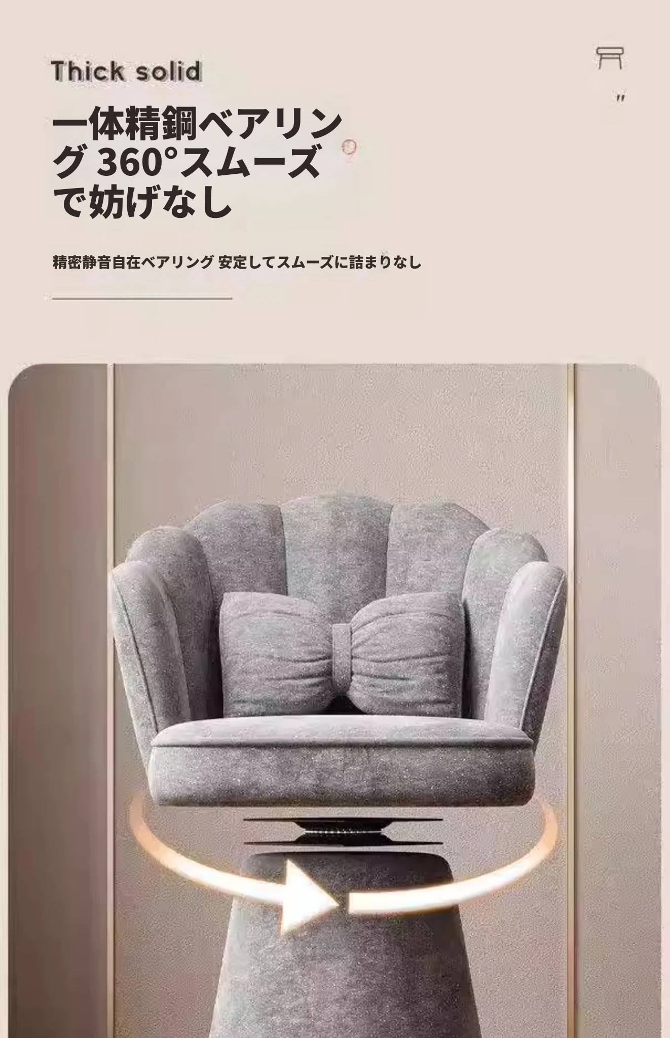 おしゃれで高級感あふれる回転式メイクアップスツール - 女の子のための寝室にぴったりな化粧台チェア。背もたれ付きで快適、ネイルにも最適なデザイン!あなたのビューティータイムを格上げします。
