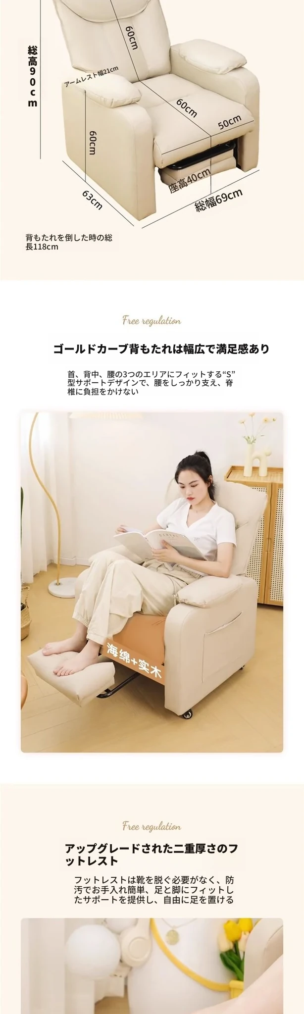 テクノロジー布ミルクホワイト【背もたれ調整可】+フットスツール