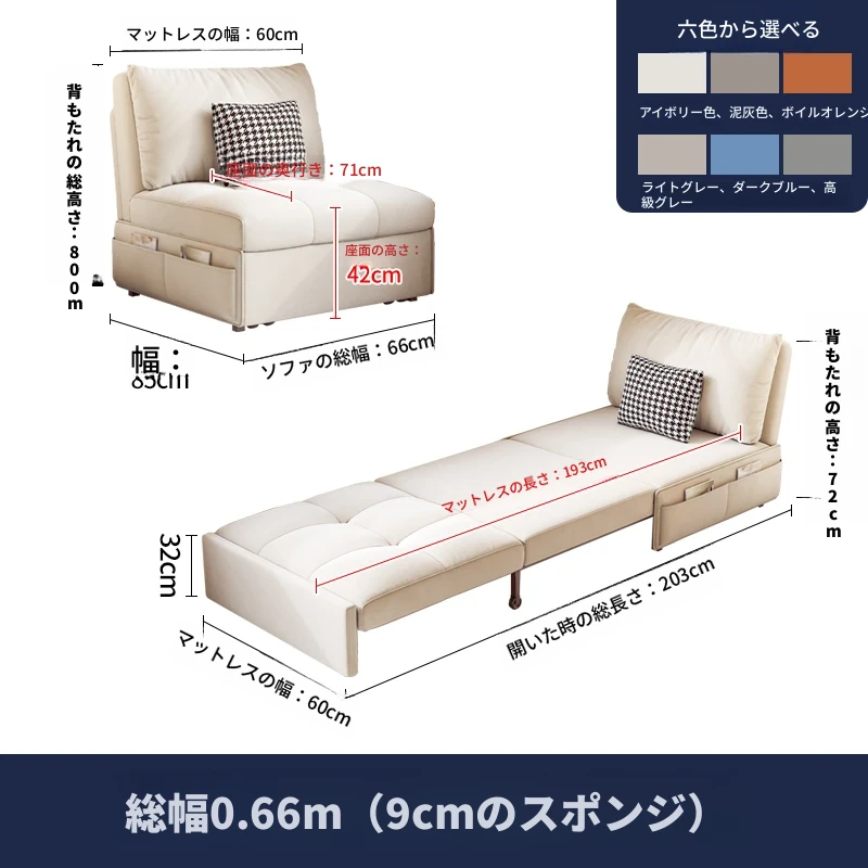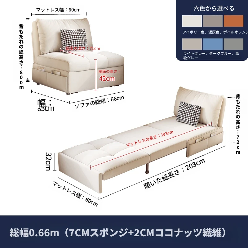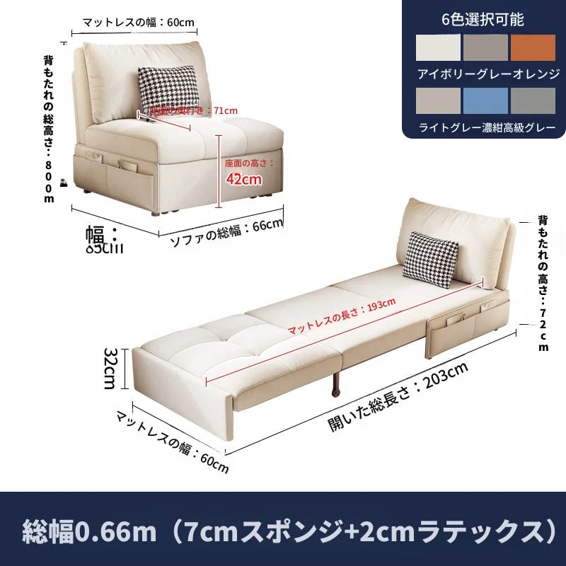 総幅0.66メートル(7CMスポンジ+2CMラテックス)収納なし