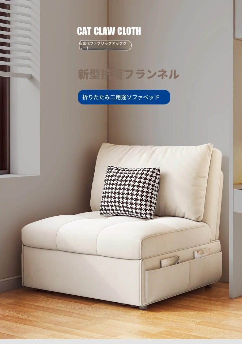 【香港送料無料】2023年新作!おしゃれなフロアソファベッド - アームレスデザインで、狭いお部屋にもピッタリ!折りたたみ&スライド式、シングルとダブルの2WAYタイプで、快適な睡眠空間を提供します!