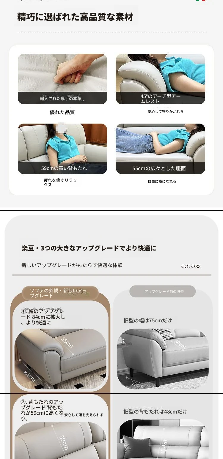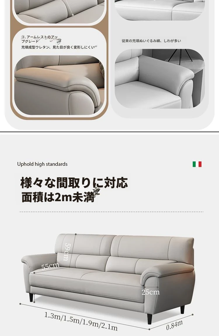 【大3人用1.9メートル】輸入本革【ラテックス版】厚手トップレイヤー