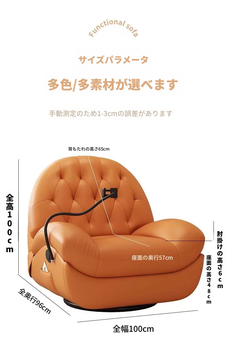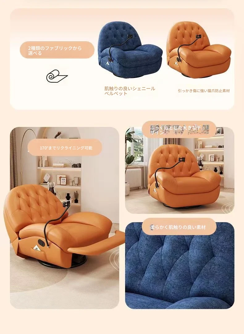 (電動で座って横になり、回転し、USB充電とスマホスタンド付き)