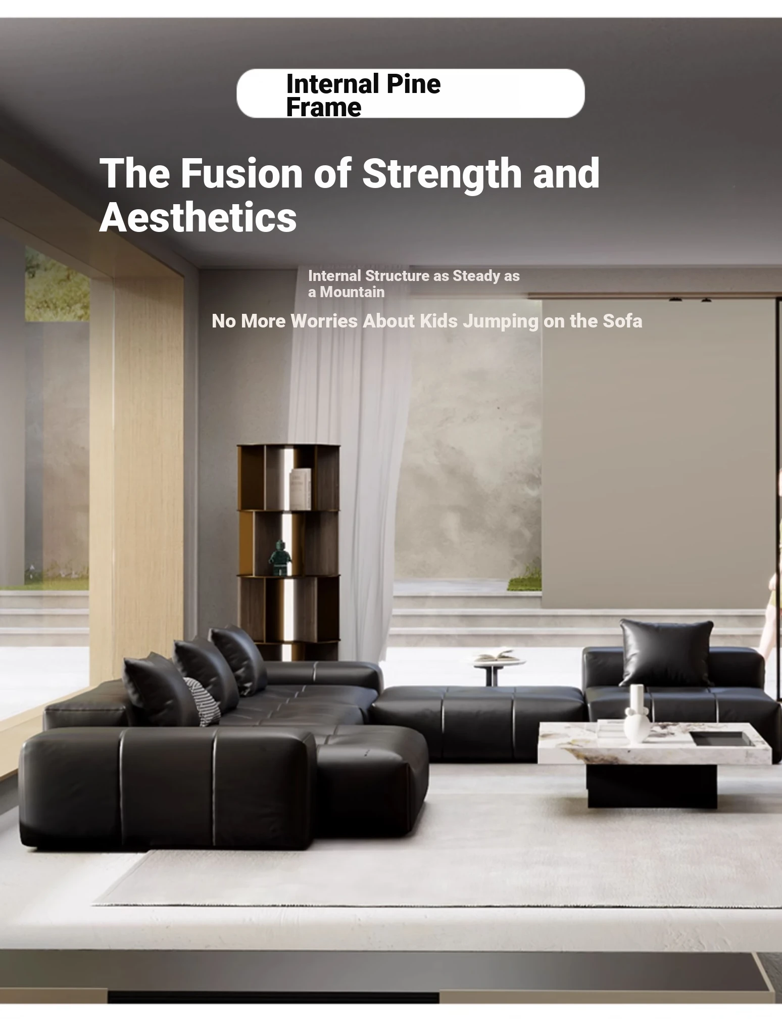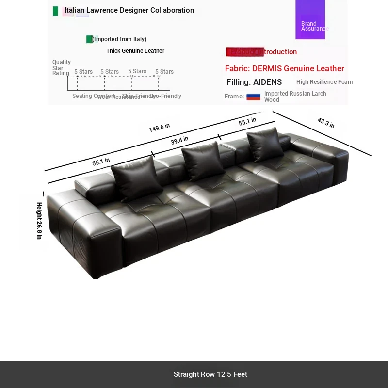 Straight 118.11 in thickened Full Leather Sofa