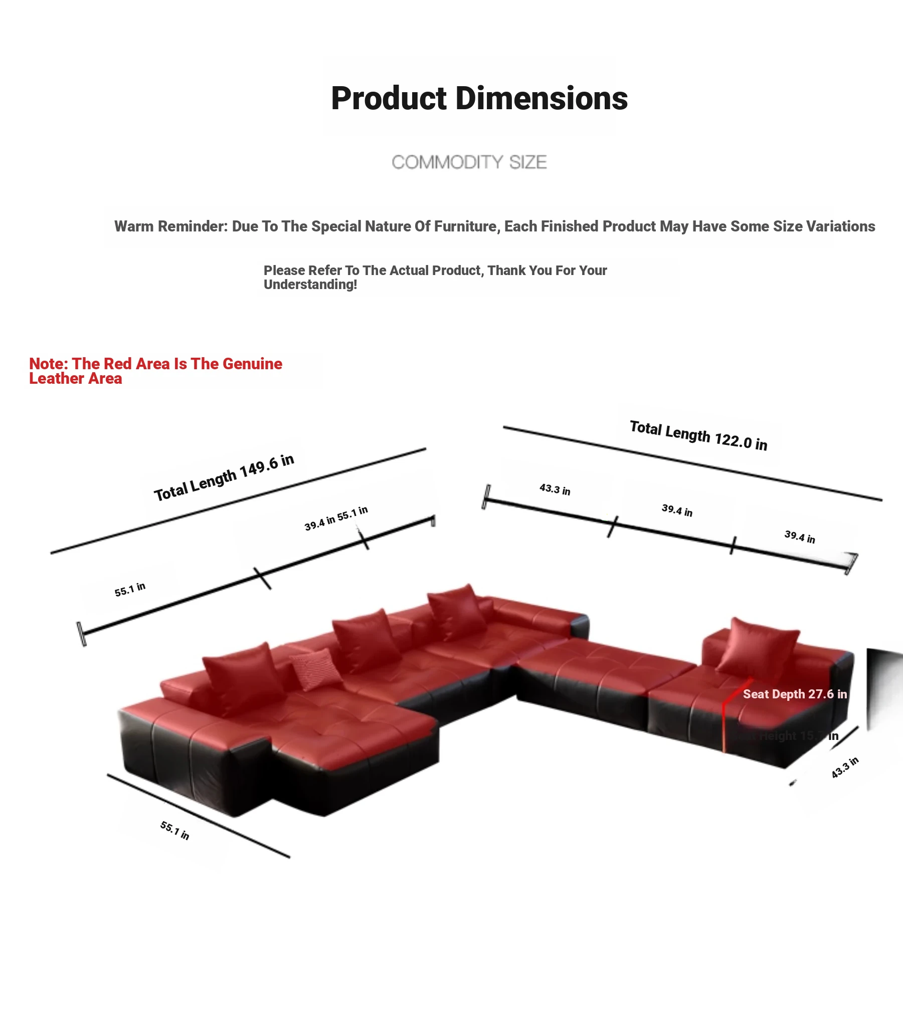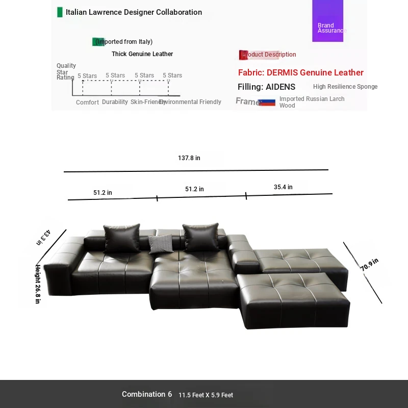 Combination 236.22in 137.80in x 70.87 in thickened full leather sofa