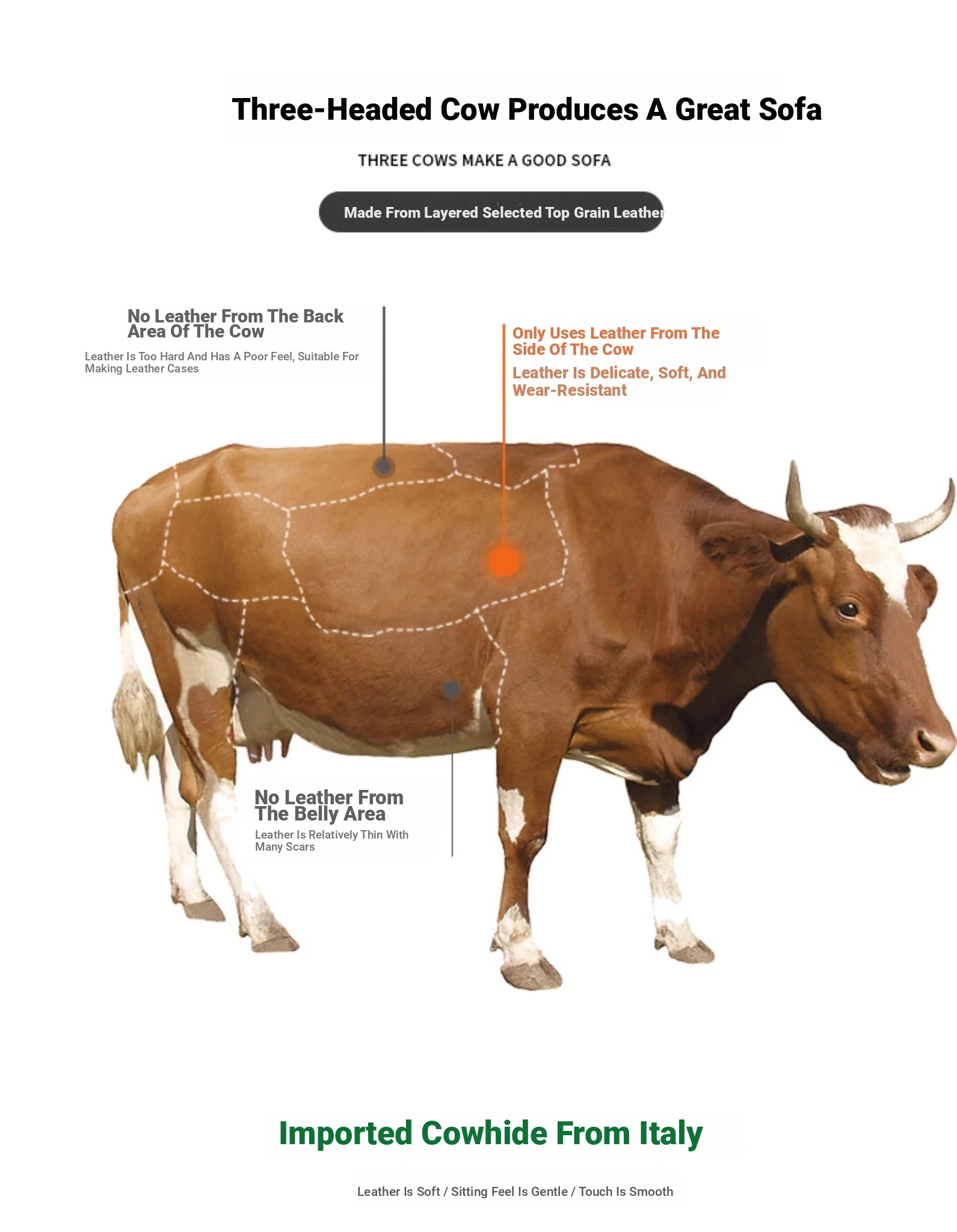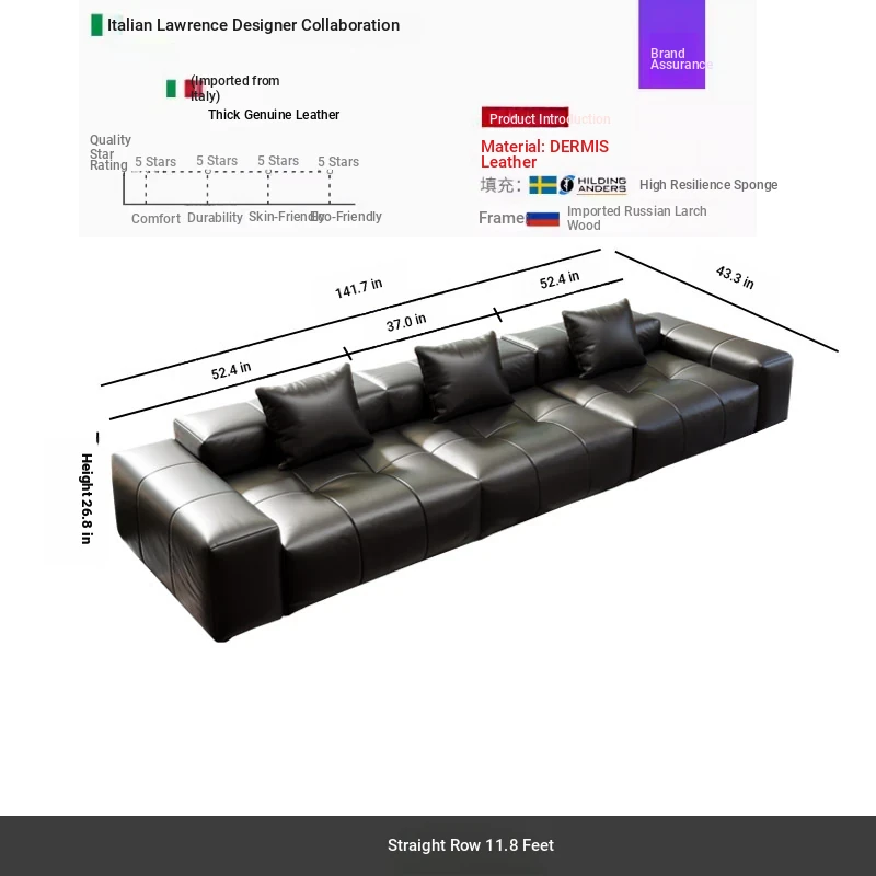 Straight 141.73 in thickened Full Leather Sofa