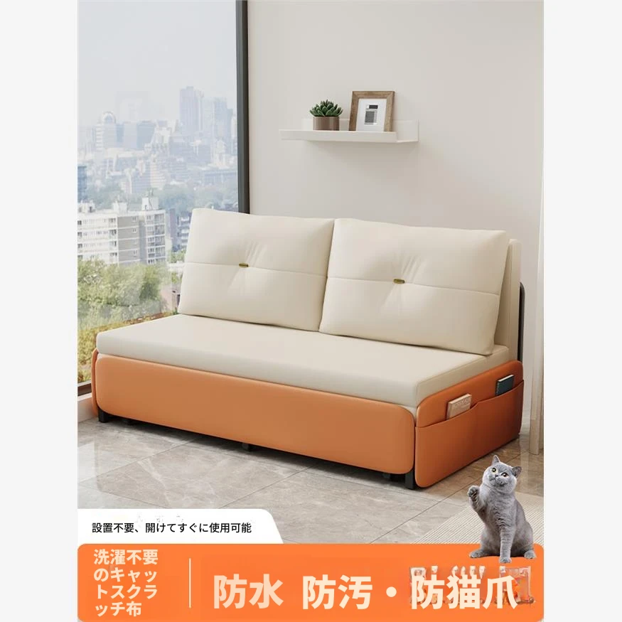 香港送料無料!小型住宅に最適な二人用ソファベッド!シンプルで折りたたみ可能、伸縮式の多機能収納ソファ。リビングルームにぴったりのスタイリッシュなアイテムで、スペースを有効活用!