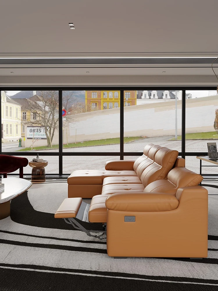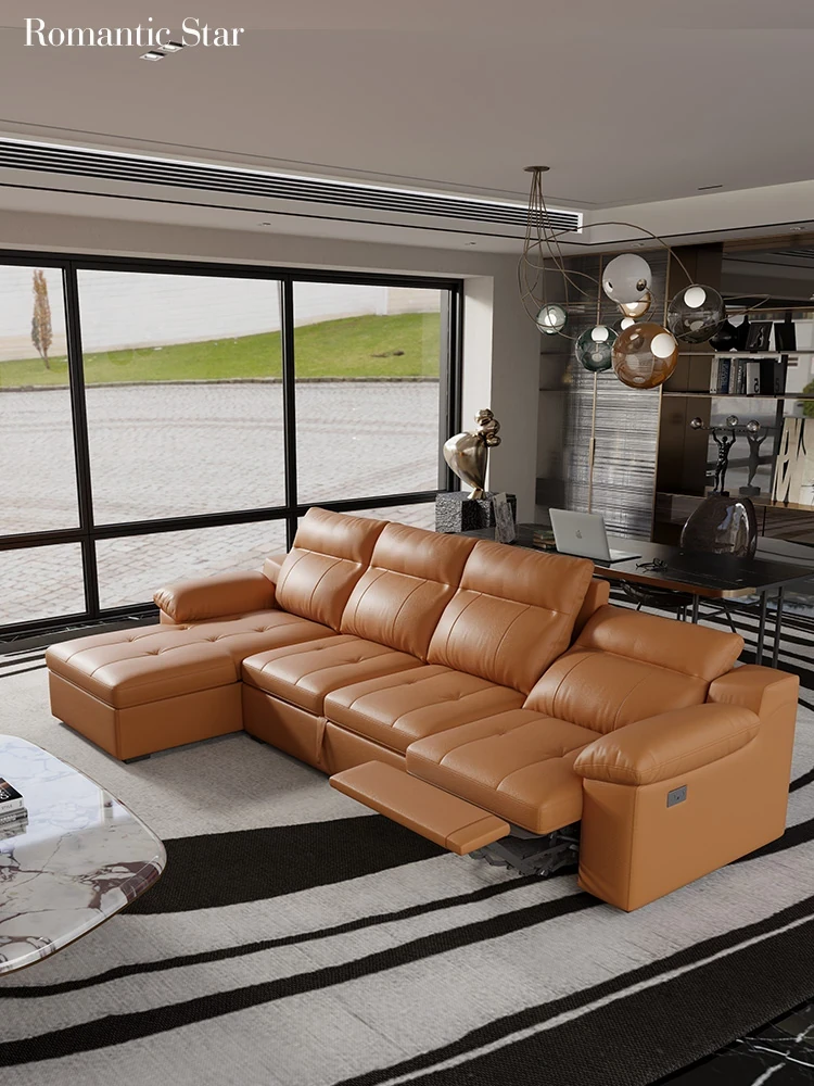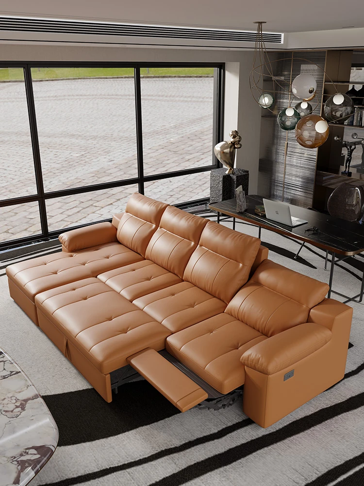 イタリアンスタイルの電動機能付き本革ソファベッド - リビングルームにぴったりな超広々とした現代的でシンプルなデザイン、家用に最適な2WAY伸縮式ベッド - 東莞よりお届け!