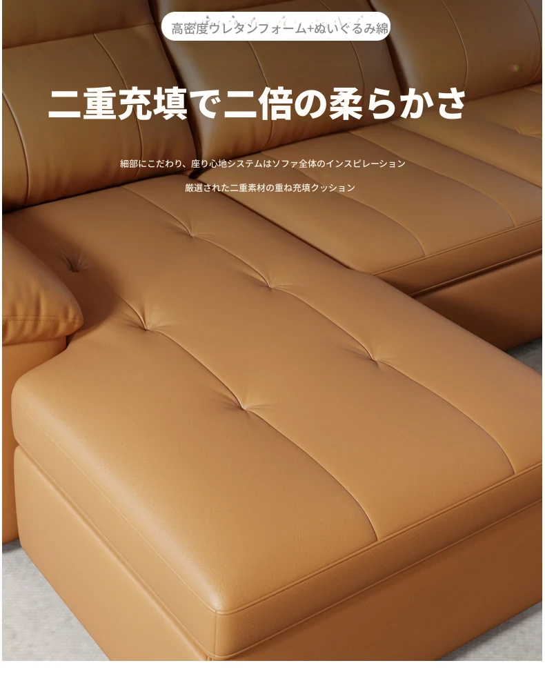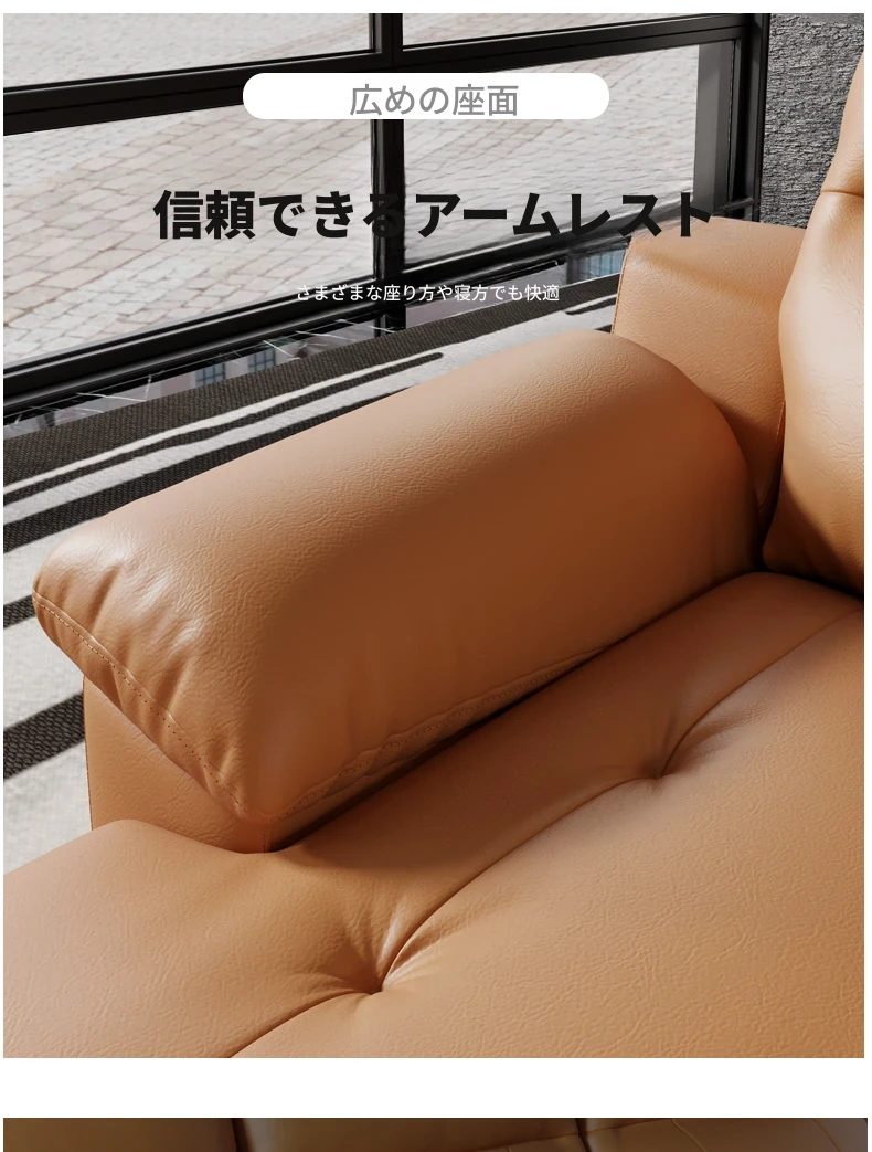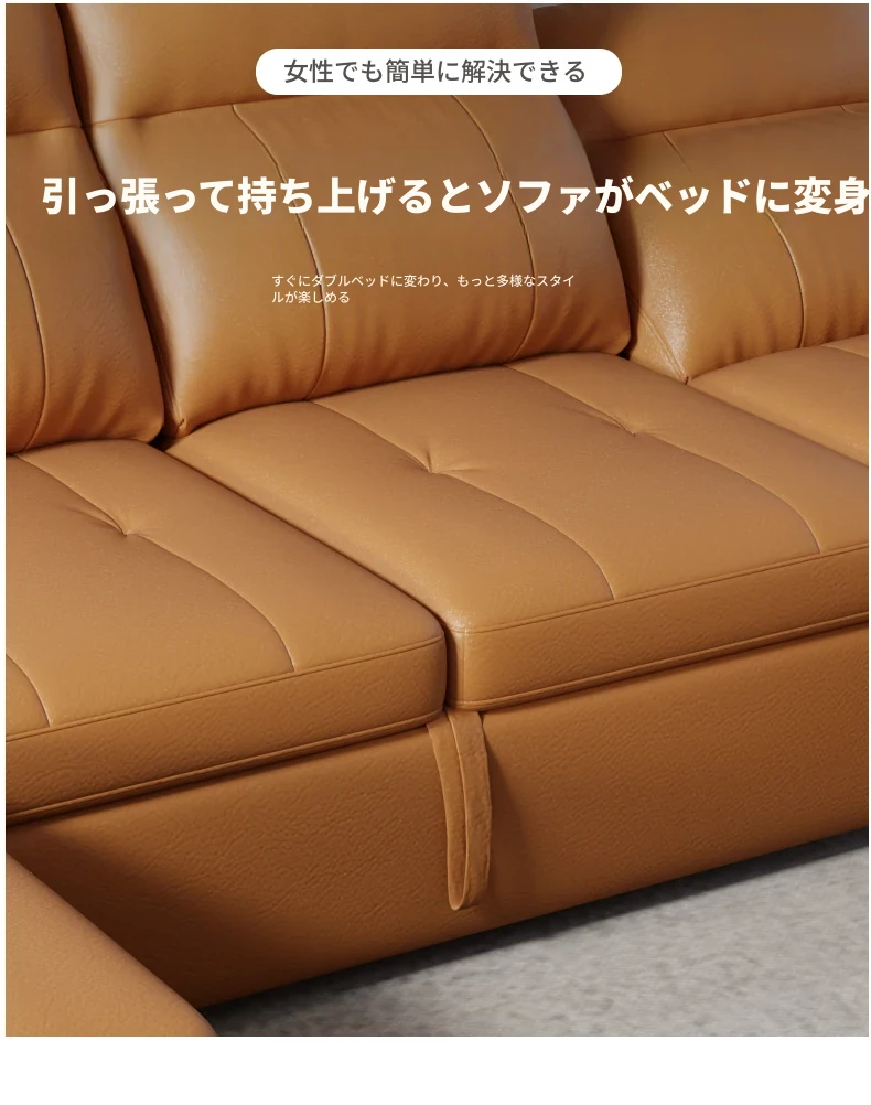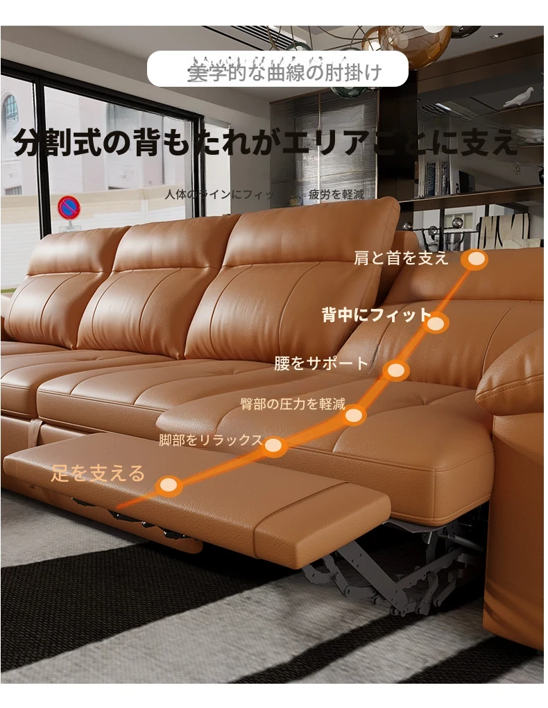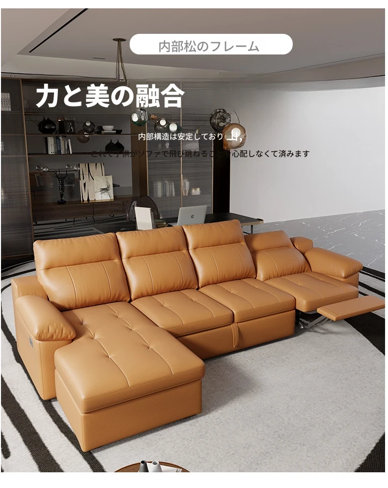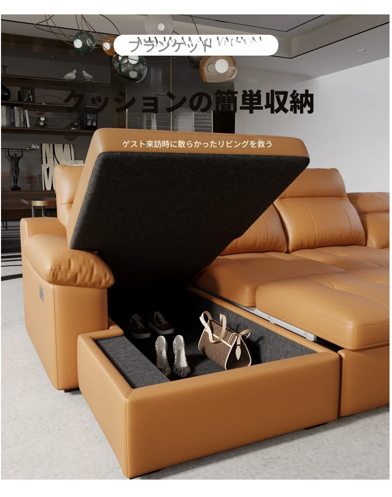 本革ソファ 電動ユニット+トランドルベッド+収納付きカウチ(3.5メートル)