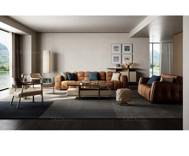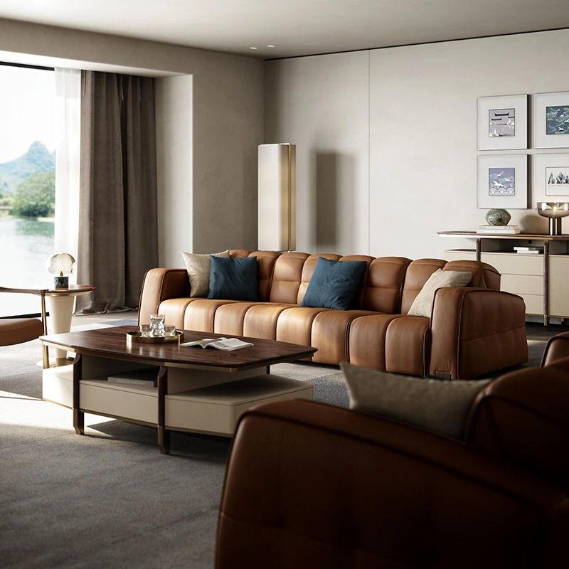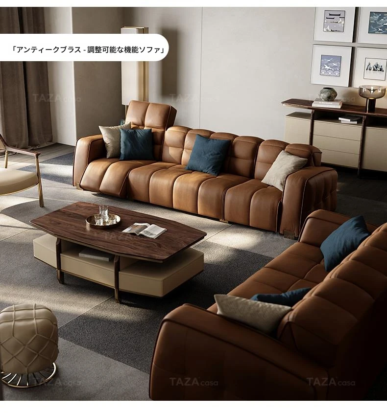 イタリア製電動ソファー - ヴィラ全体にマッチするリビングシリーズ、モダンでラグジュアリーな本革ソファー。快適な座り心地と洗練されたデザインで、あなたの空間をグレードアップ!