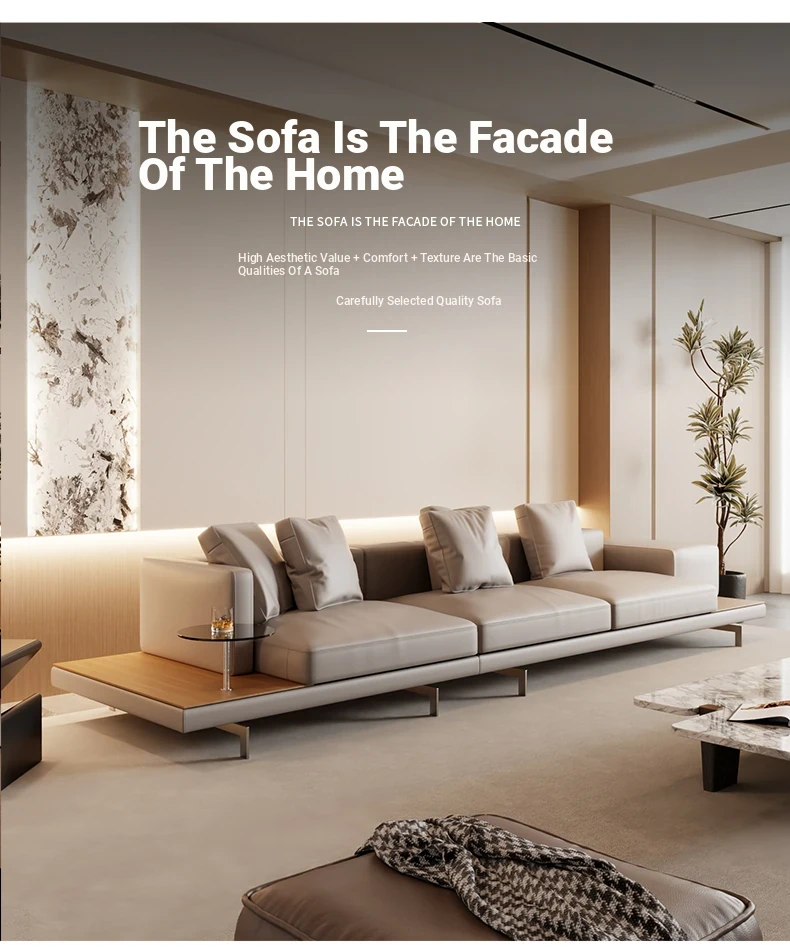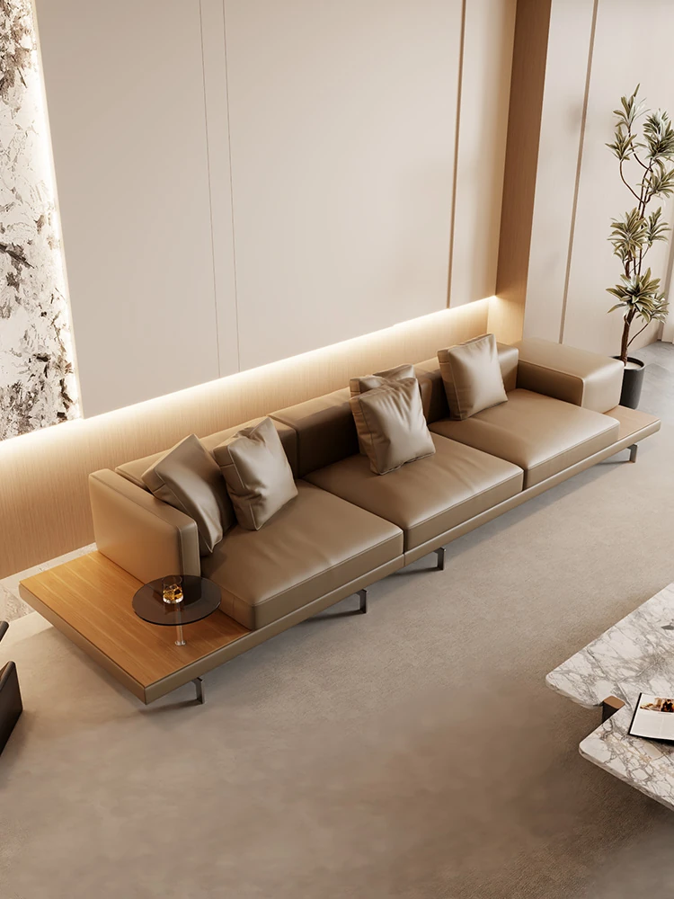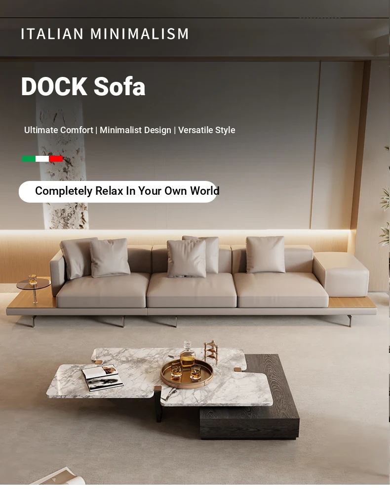 Italian Genuine Leather Dock Sofa - Japanese Minimalist Design with Solid Wood, Perfect Corner Piece for Your Living Room - Quality Furniture from Foshan