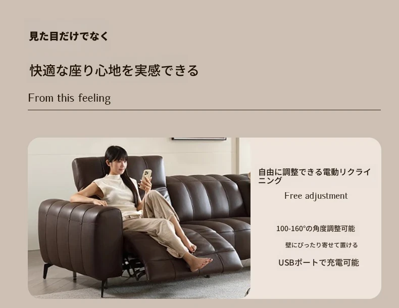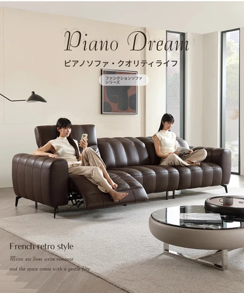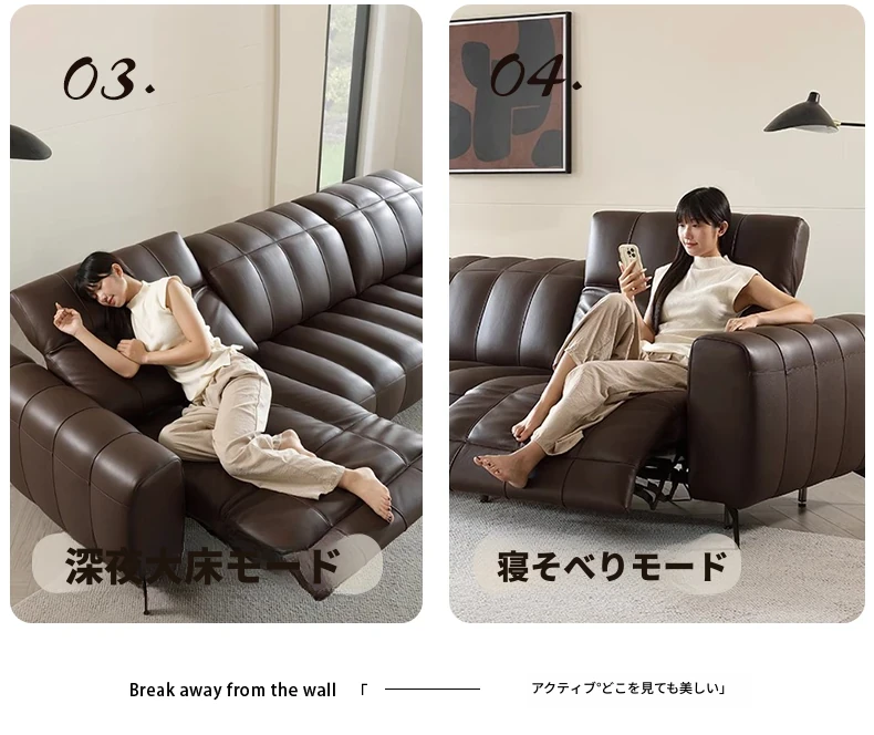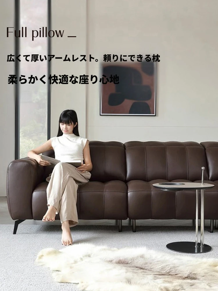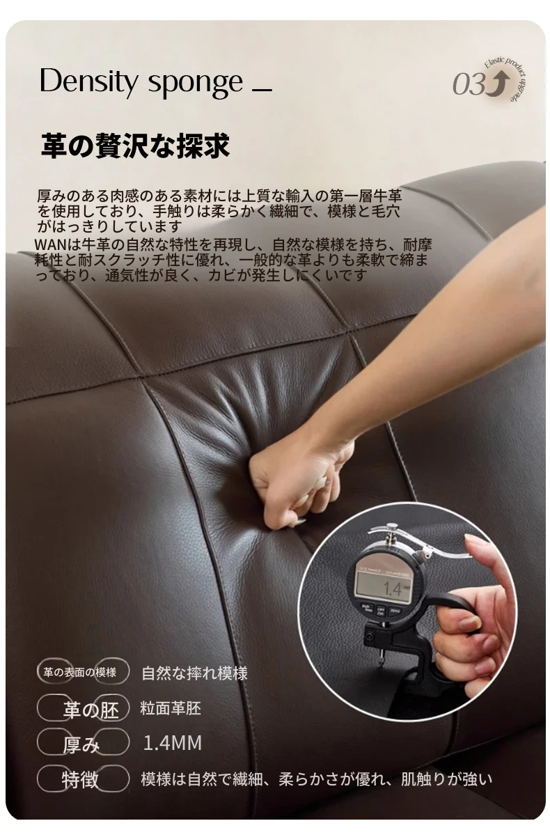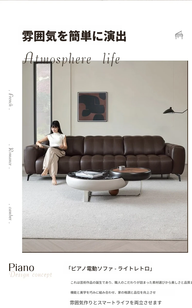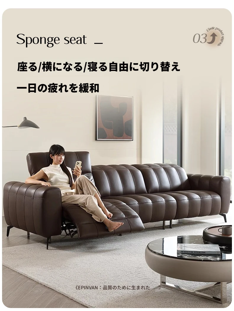 イタリアンミニマル電動ソファ - 本革・第一層牛革使用、ピアノキー調整機能搭載!猫の爪にも強いレザー仕上げで、スタイリッシュなリビング空間を演出します。快適さとデザインを両立した高品質ソファです!