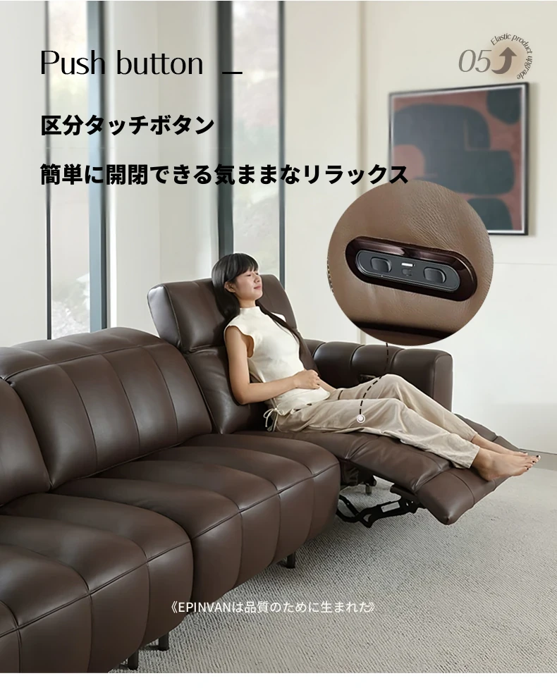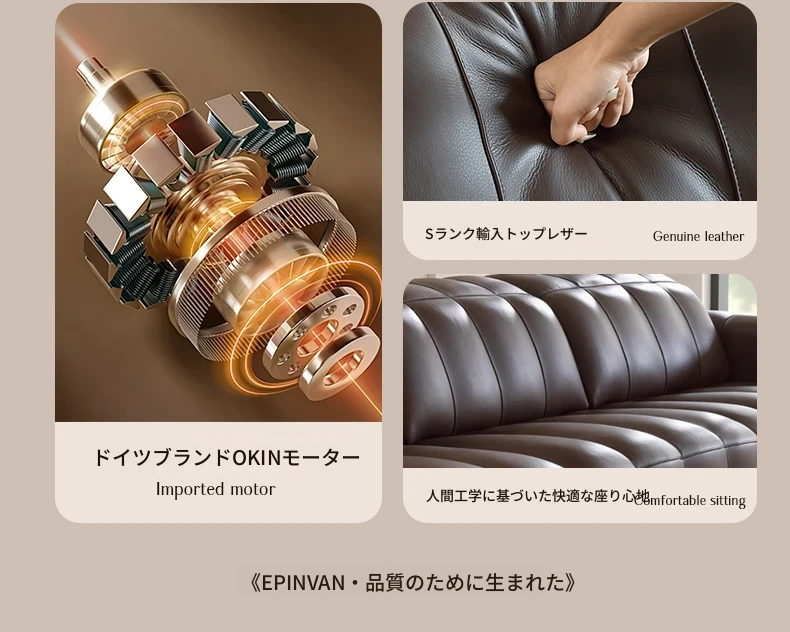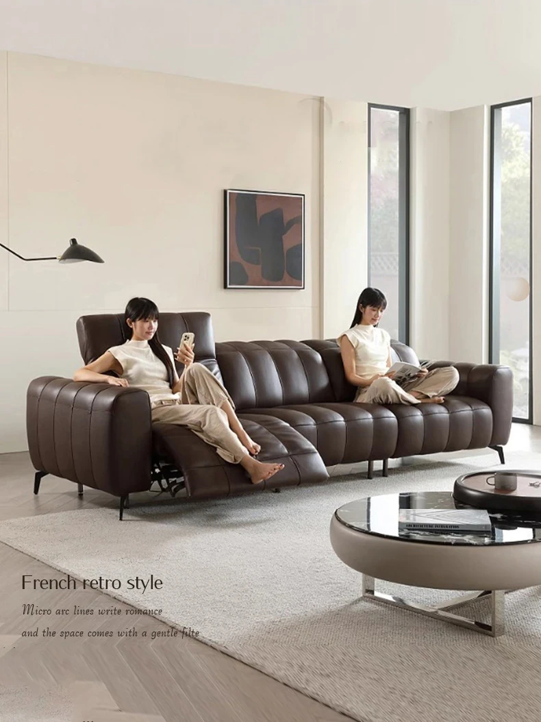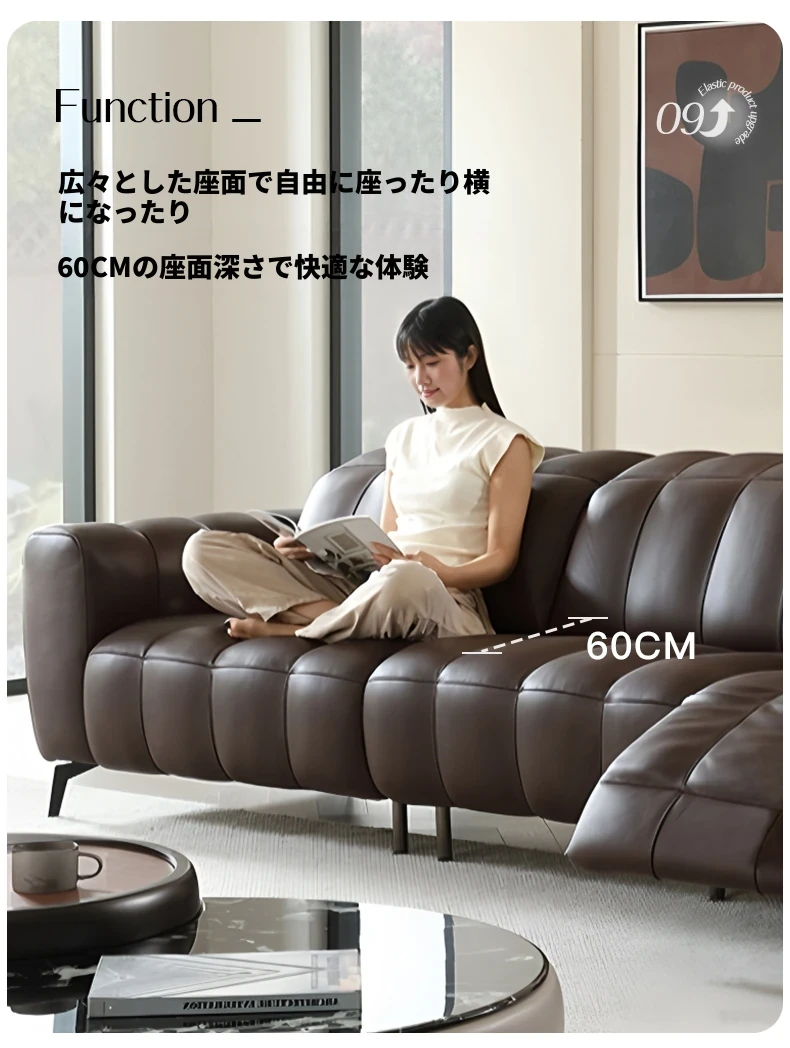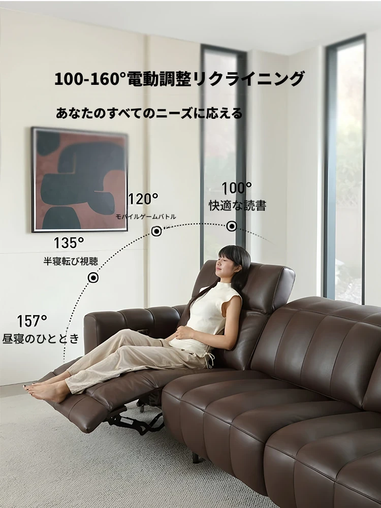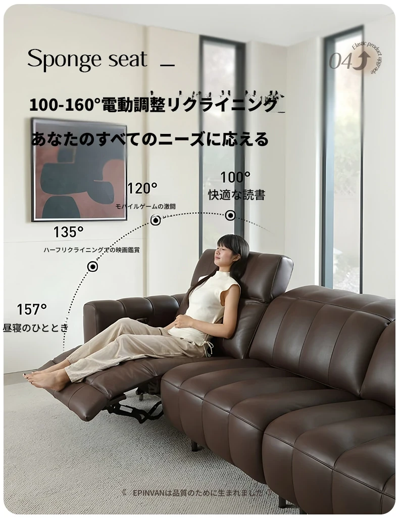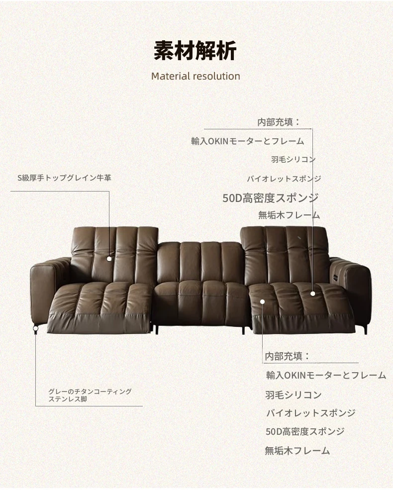イタリアンミニマル電動ソファ - 本革・第一層牛革使用、ピアノキー調整機能搭載!猫の爪にも強いレザー仕上げで、スタイリッシュなリビング空間を演出します。快適さとデザインを両立した高品質ソファです!