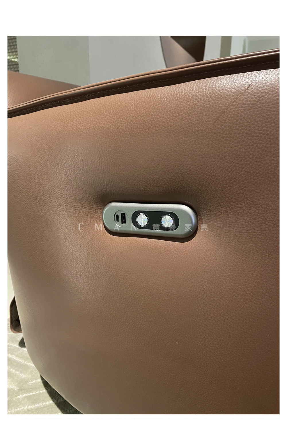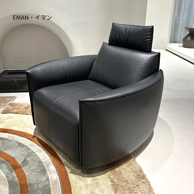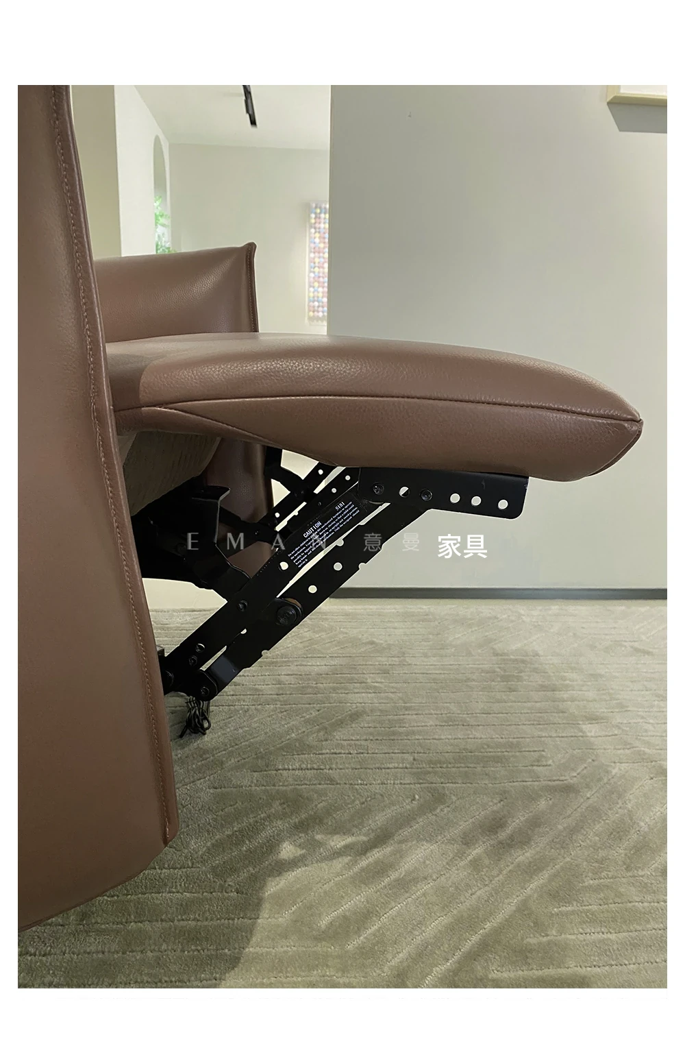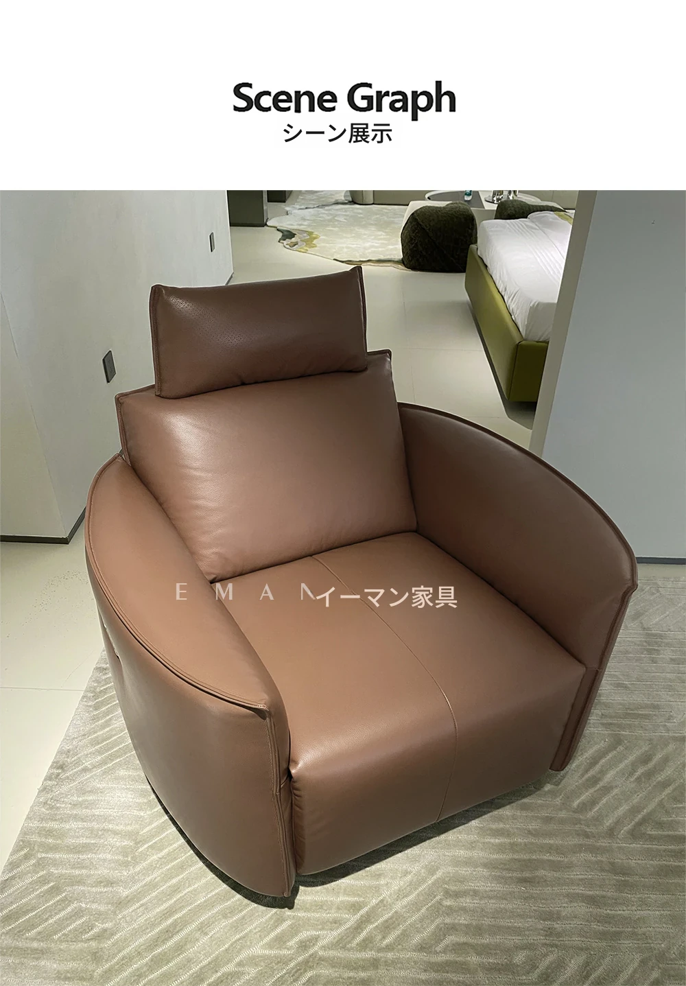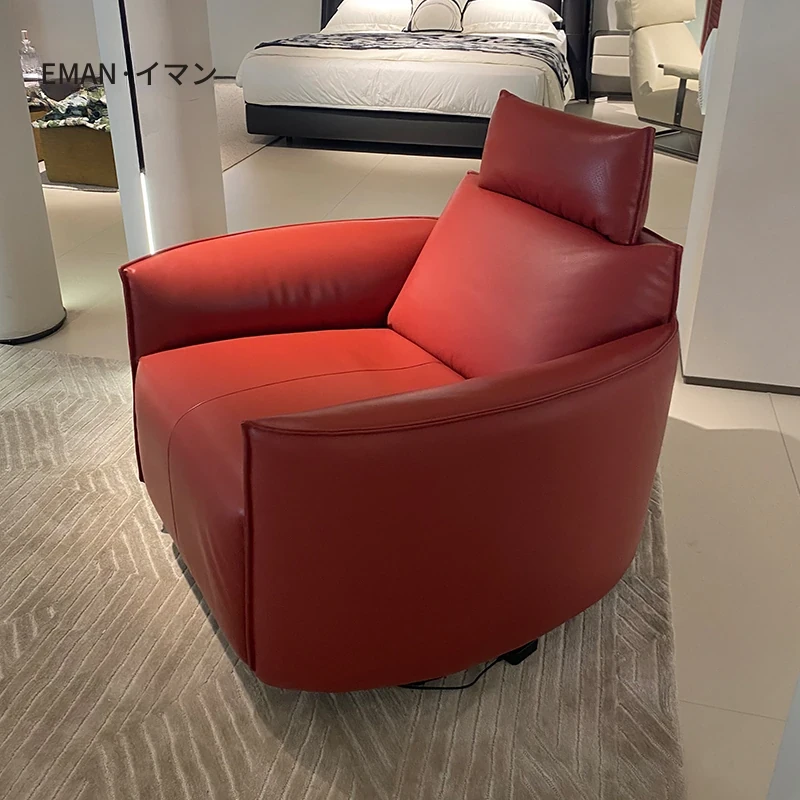 イタリアンミニマルデザインの本革電動リクライニングソファ、一人掛けのモダンな回転リラックスチェア。スタイリッシュなデザイナーアイテムで、快適なひとときを提供します。