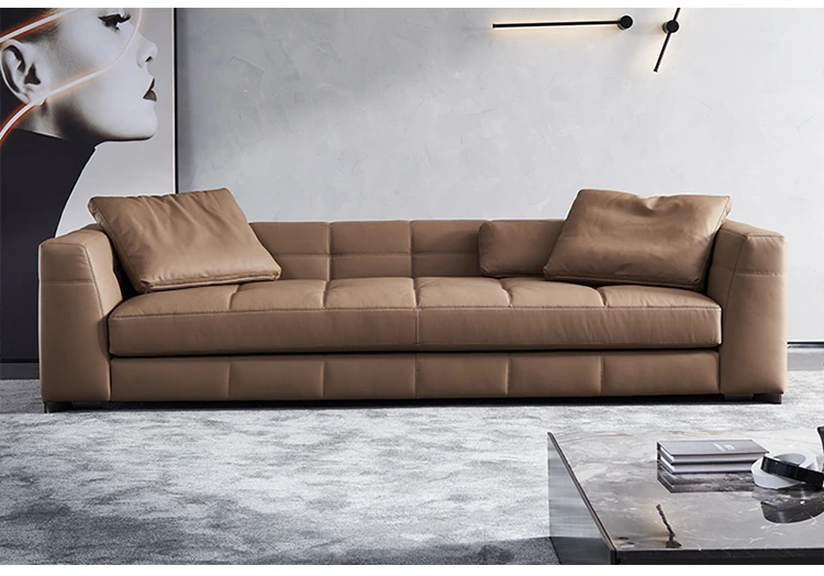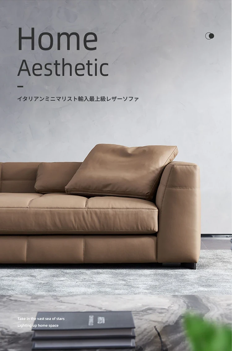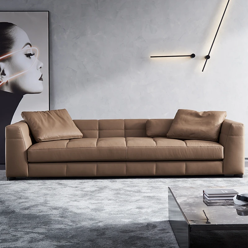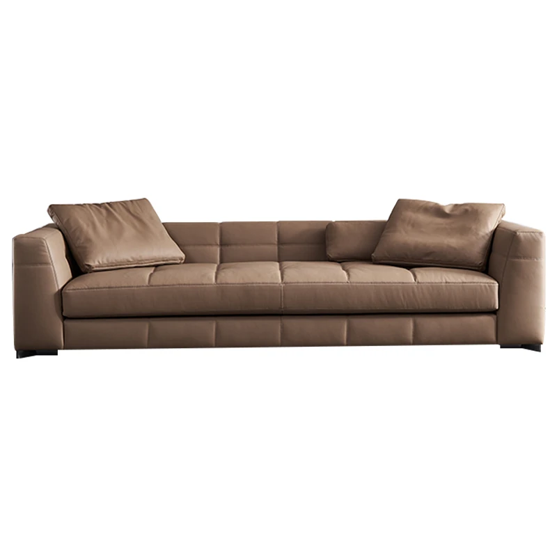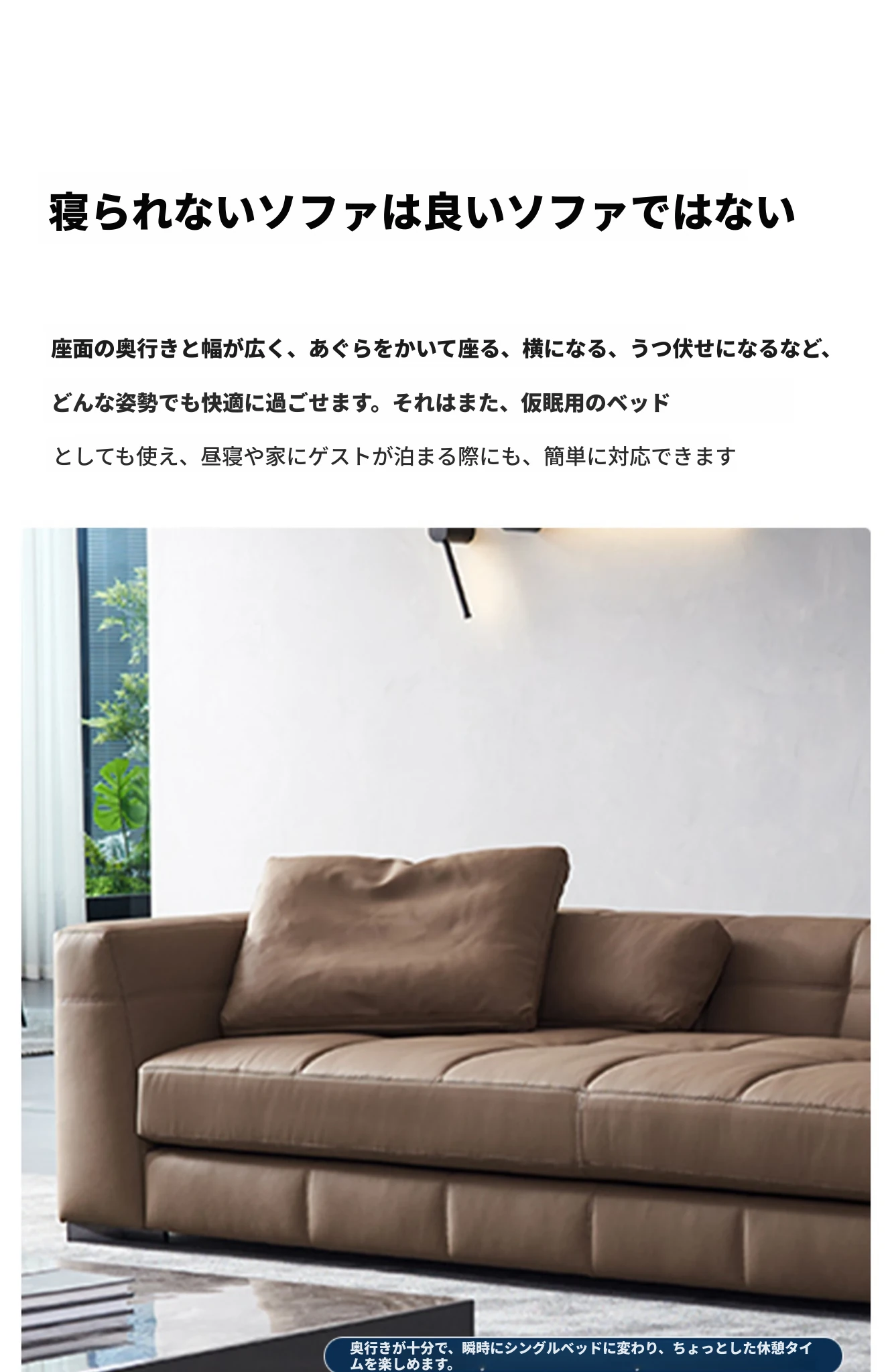 イタリアンミニマリズムの本革ブレザーソファ - 高級別荘に最適な一流の牛革製、デザイナーによる直線的なデザインで、洗練されたリビング空間を演出します。