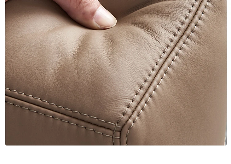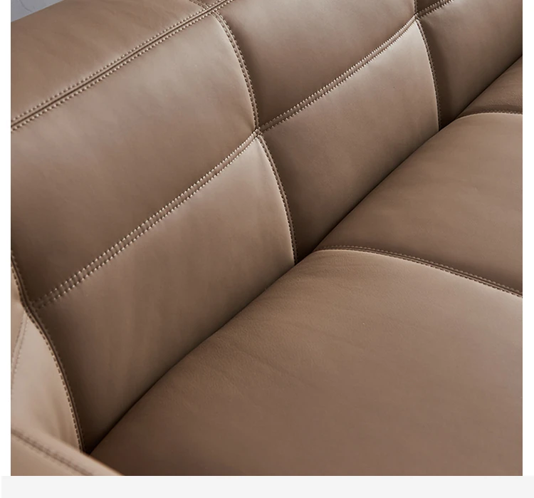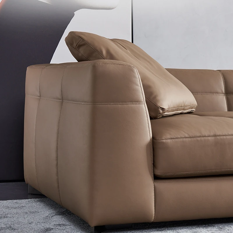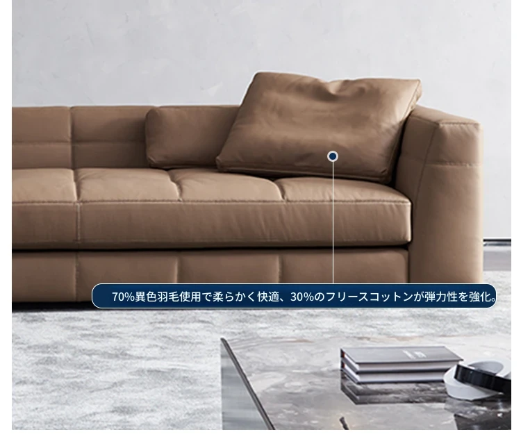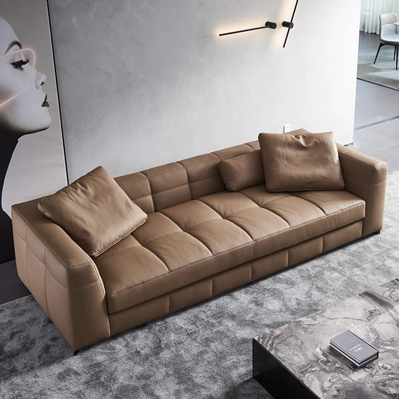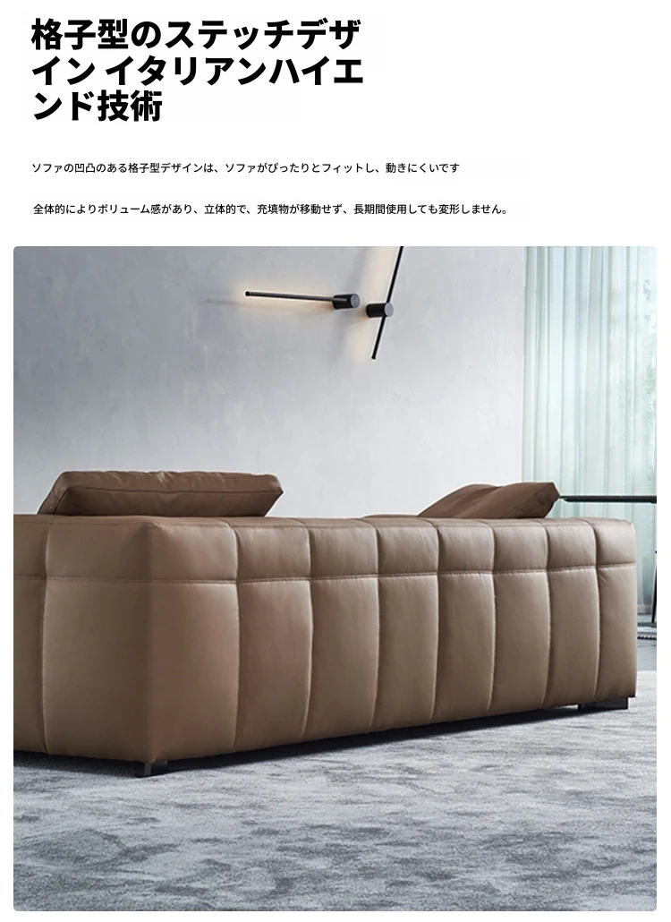 イタリアンミニマリズムの本革ブレザーソファ - 高級別荘に最適な一流の牛革製、デザイナーによる直線的なデザインで、洗練されたリビング空間を演出します。
