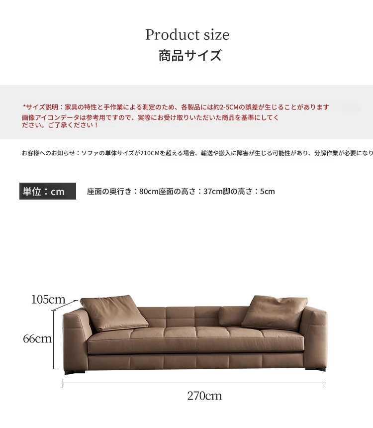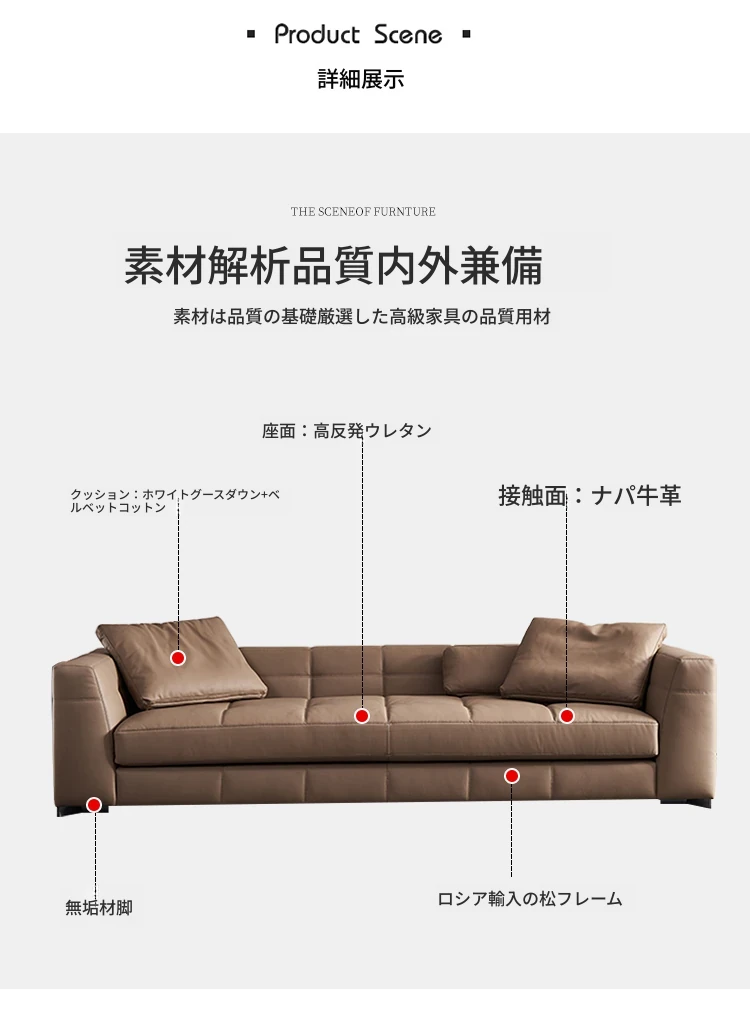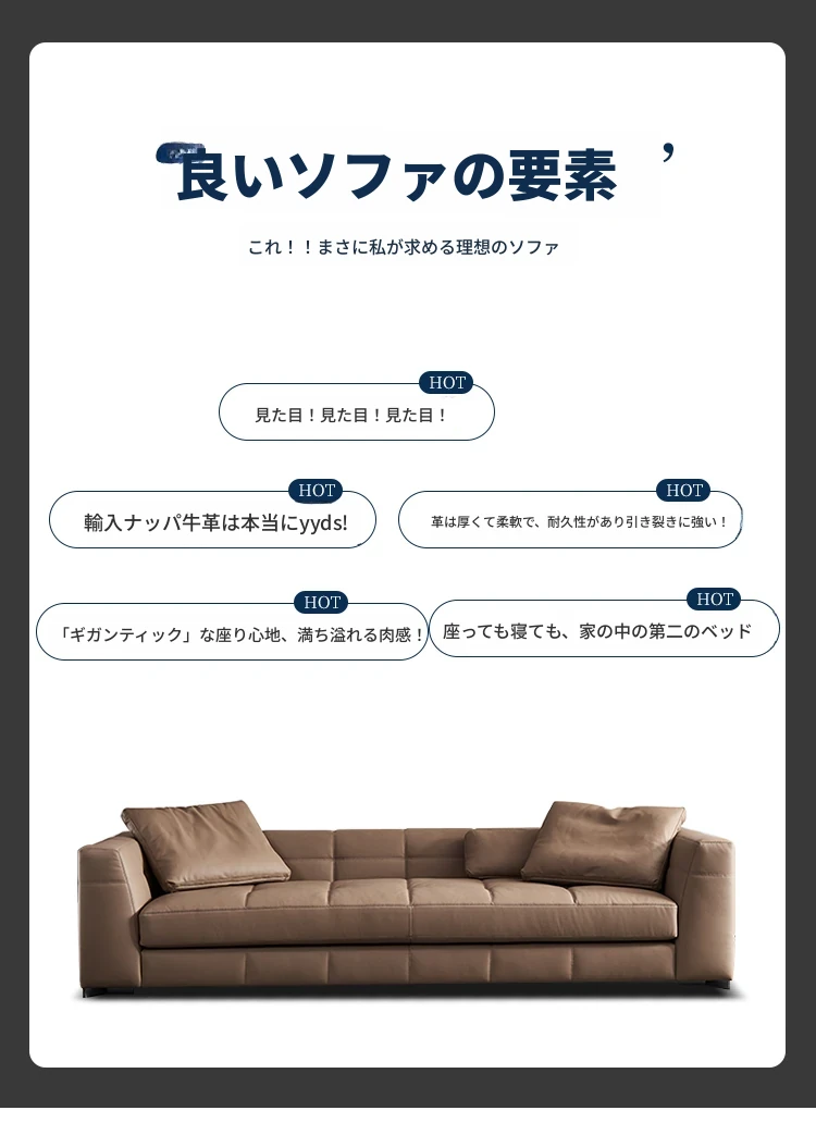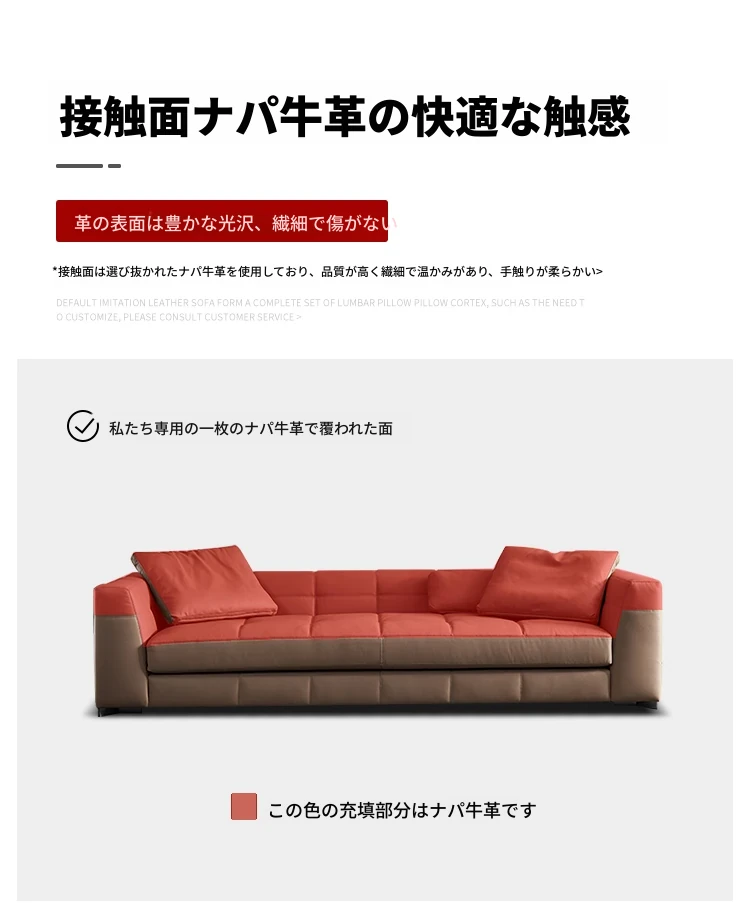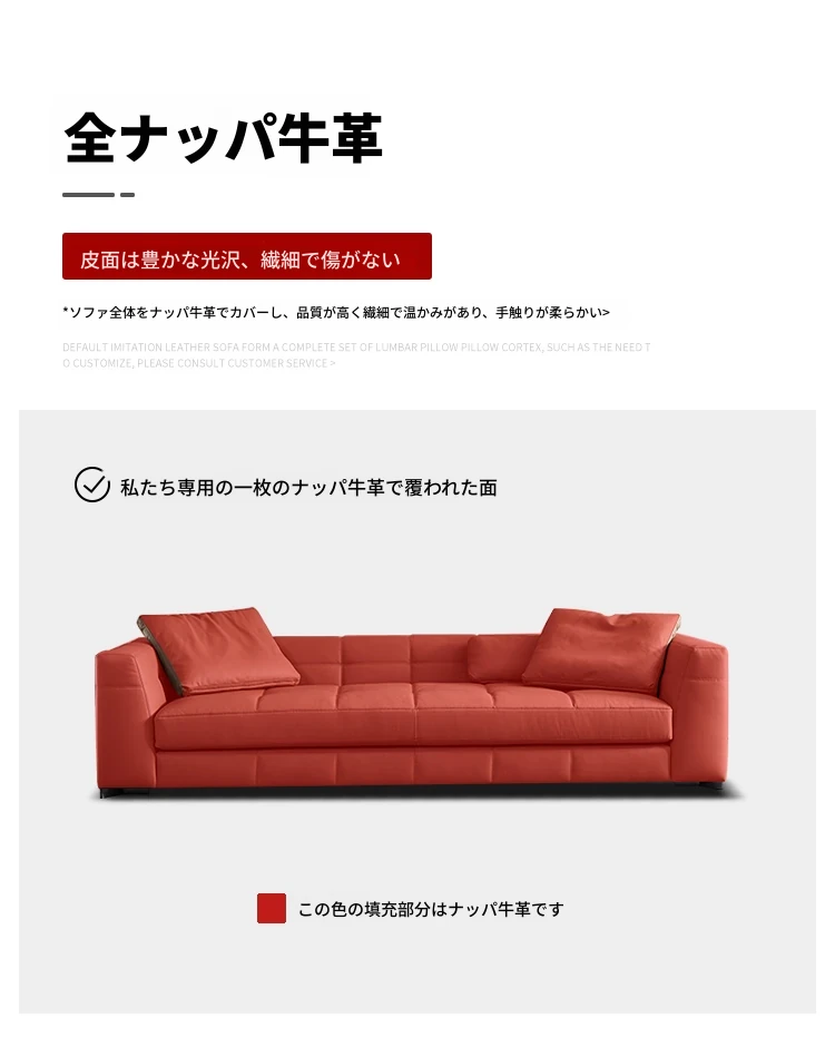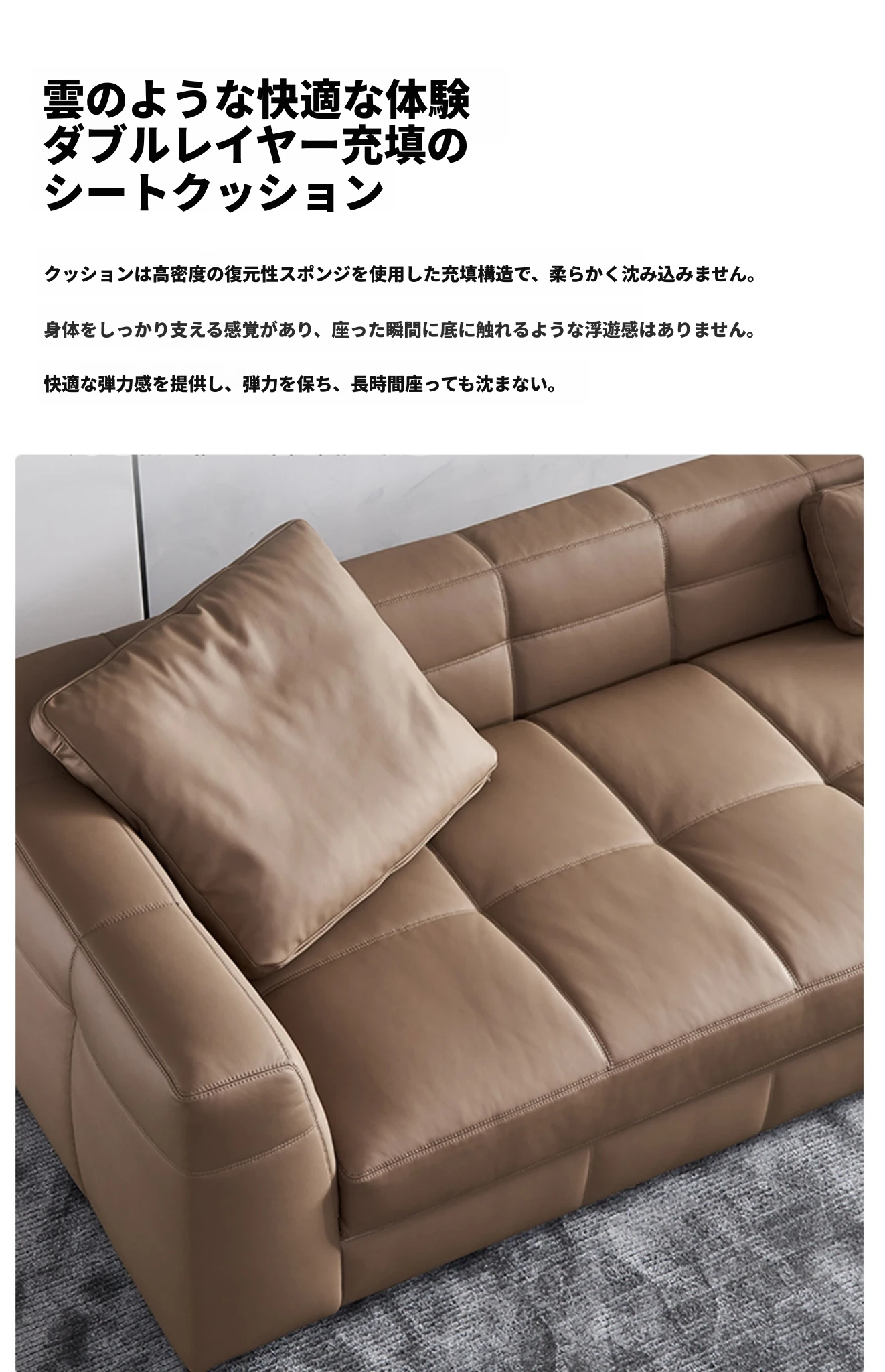 2.7mストレート【全皮インポート加厚ナパ牛革+高反発スポンジ】