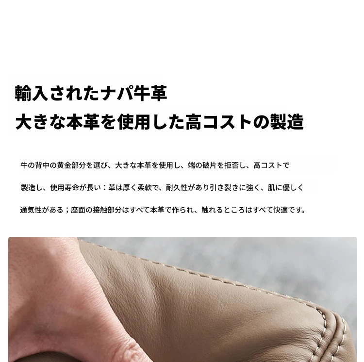 3.3mストレート【全皮インポート加厚ナパ牛革+高反発スポンジ】