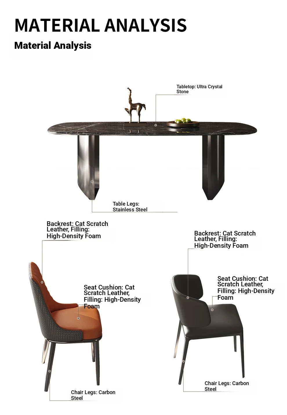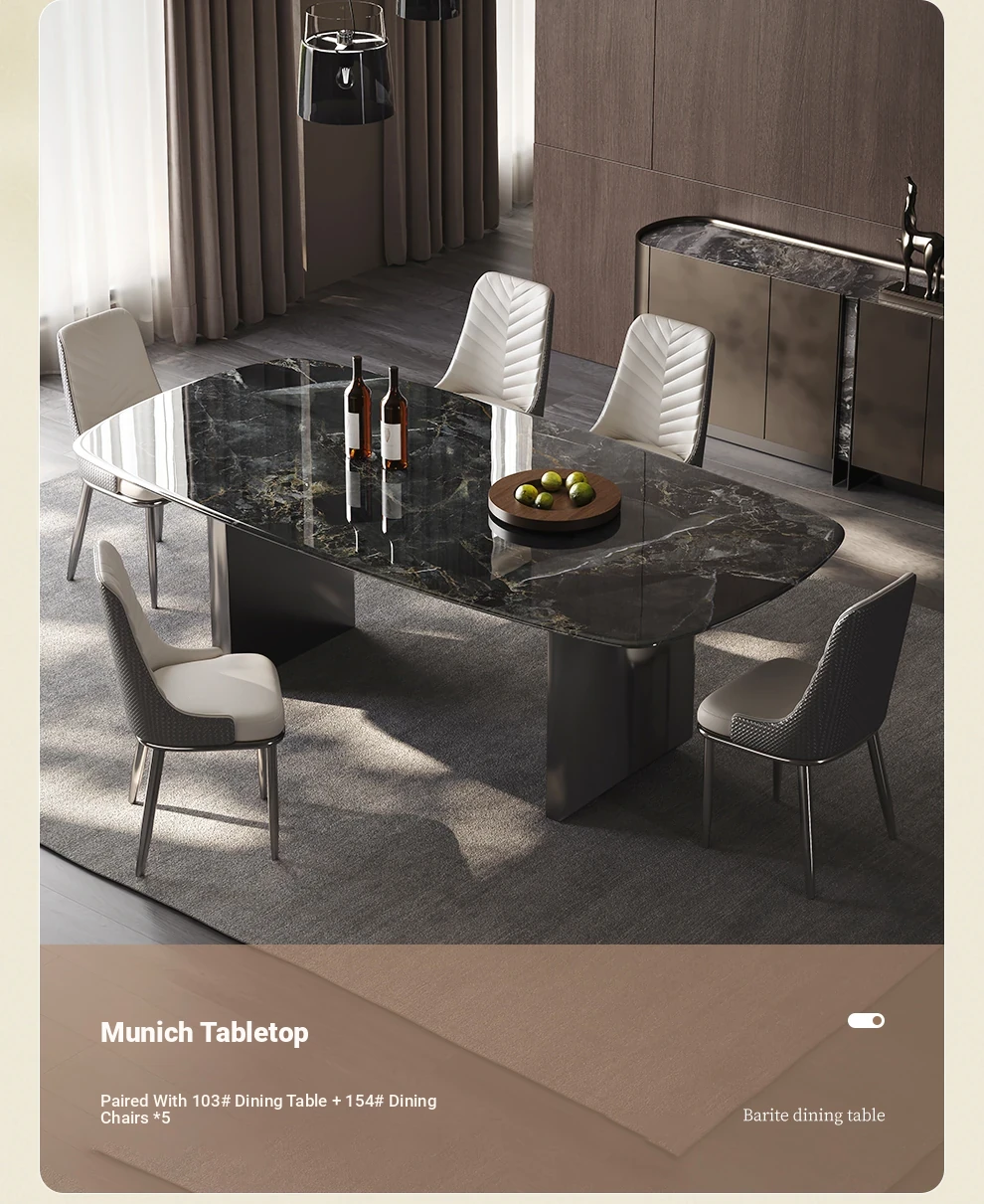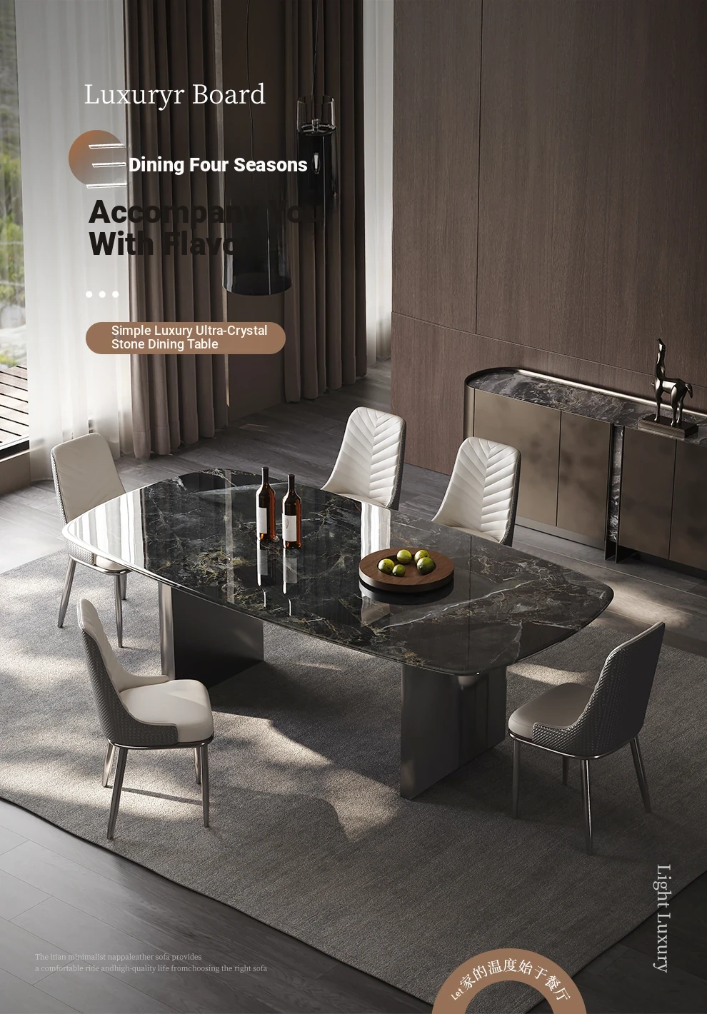 Italian Natural Marble Luxury Micro-Crystal Dining Table Set - Elegant Rectangular Ultra-Crystal Home Dining Table and Chairs Combination for Upscale Interiors