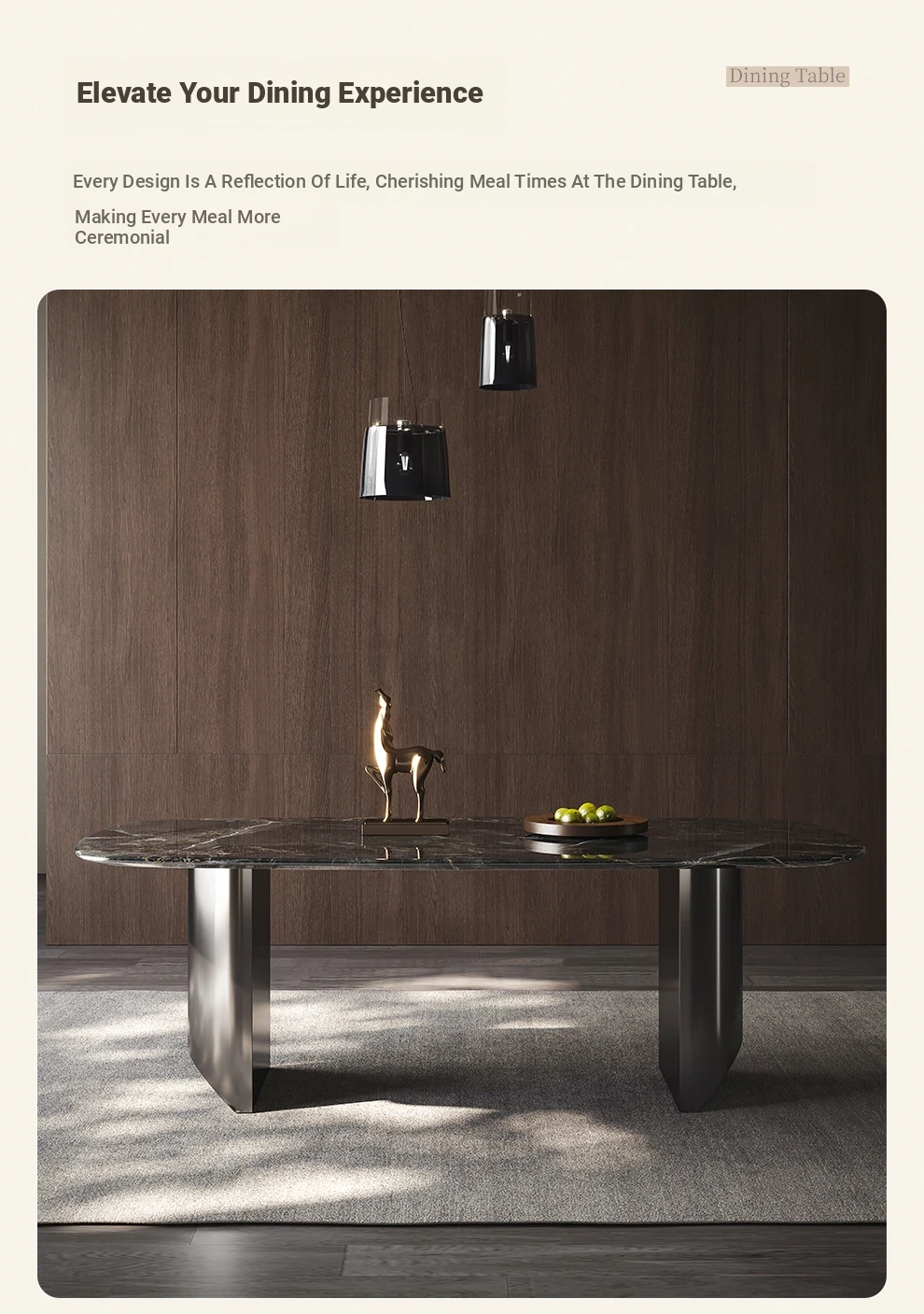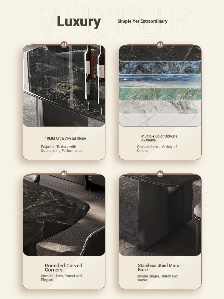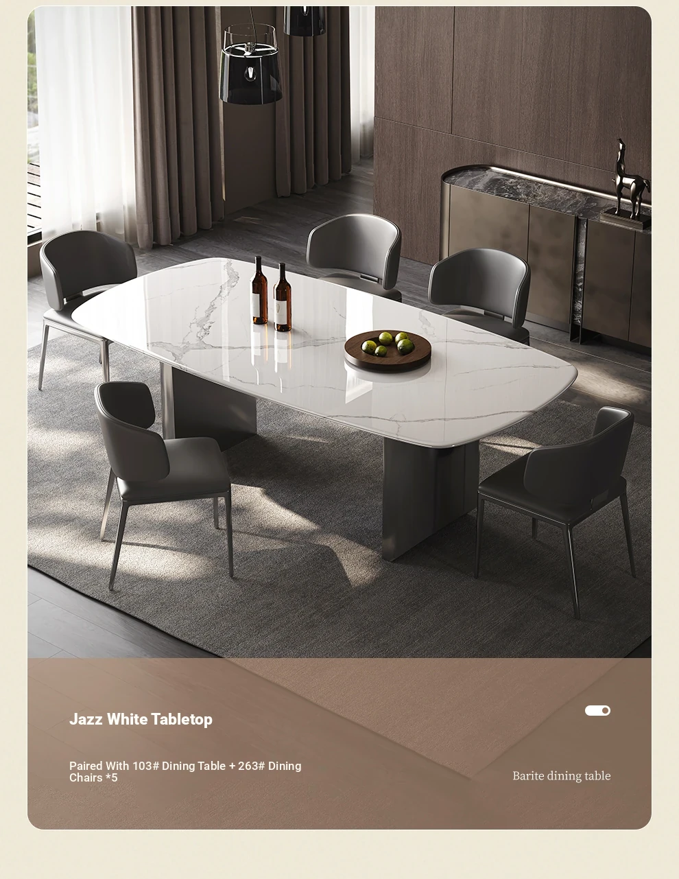 Italian Natural Marble Luxury Micro-Crystal Dining Table Set - Elegant Rectangular Ultra-Crystal Home Dining Table and Chairs Combination for Upscale Interiors