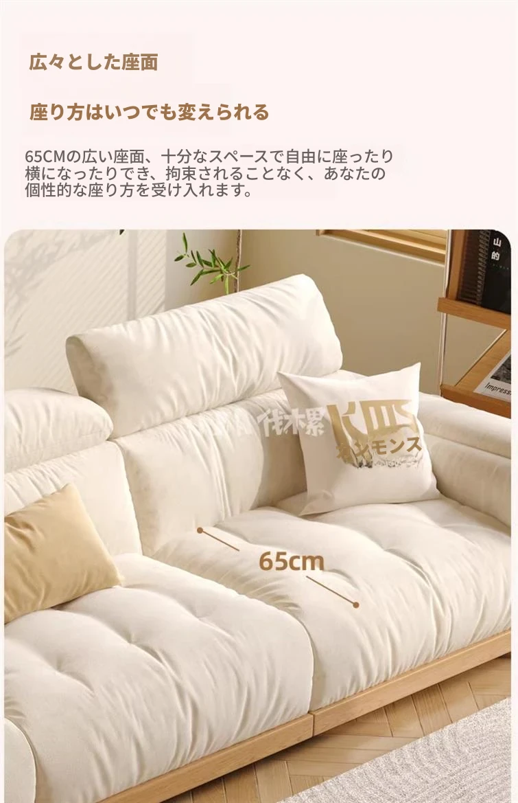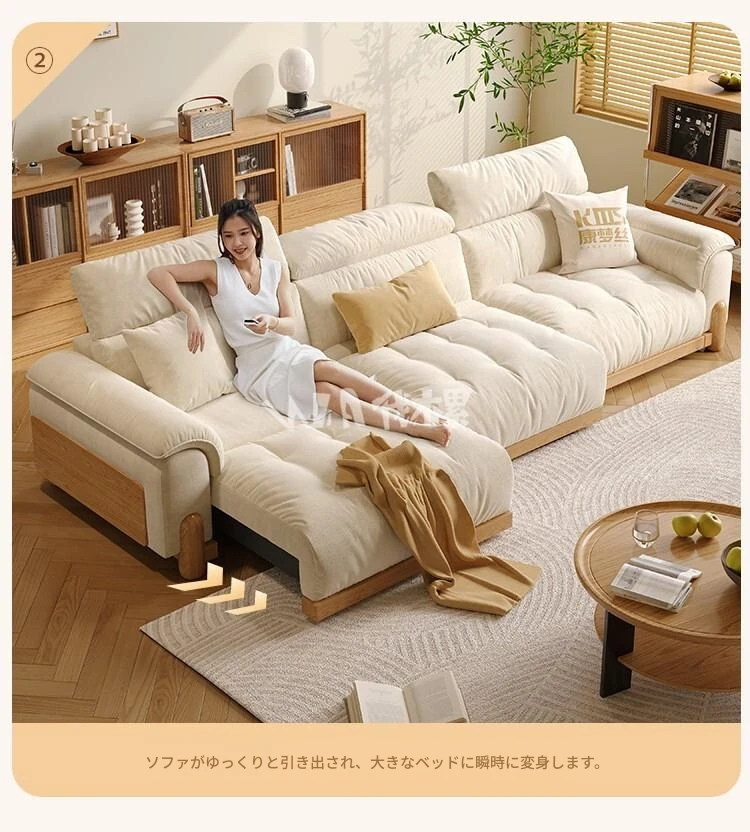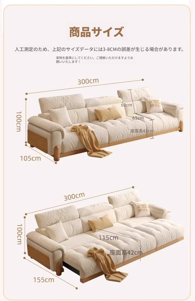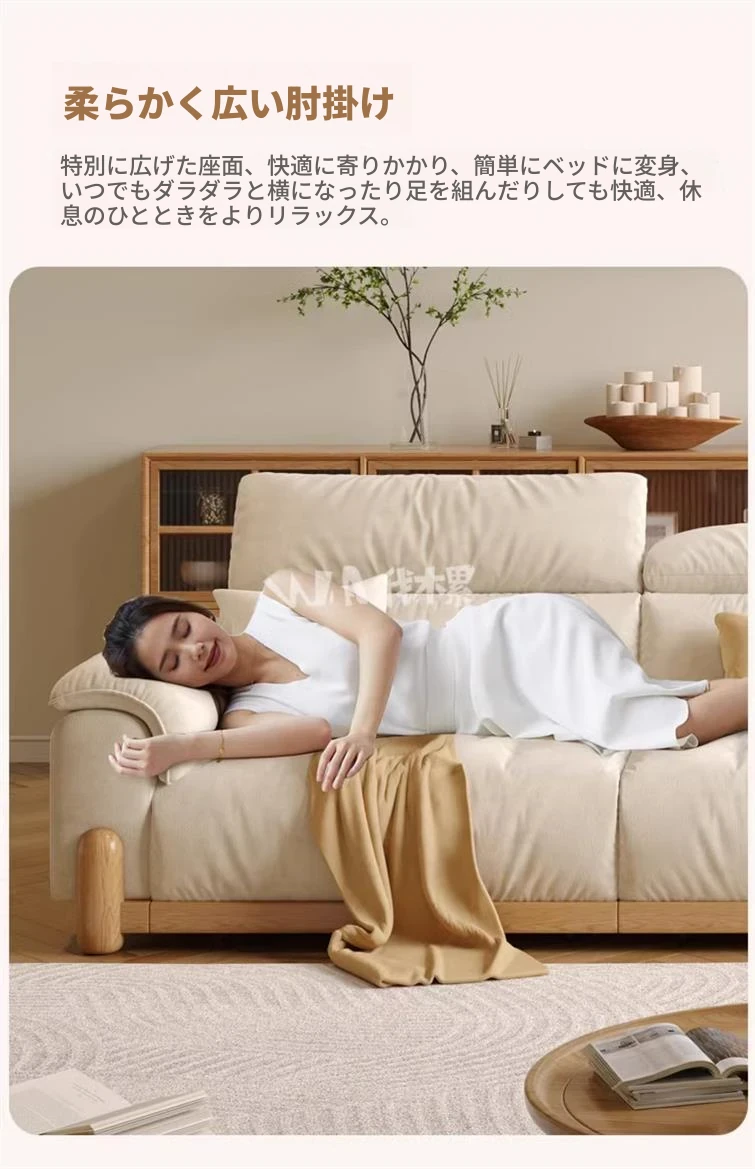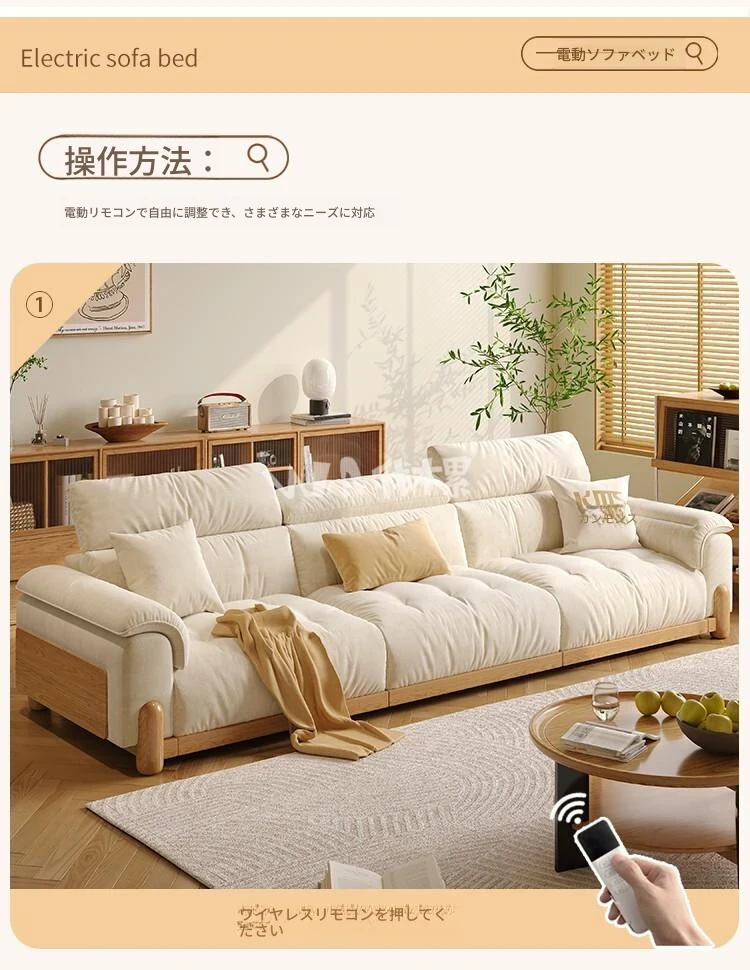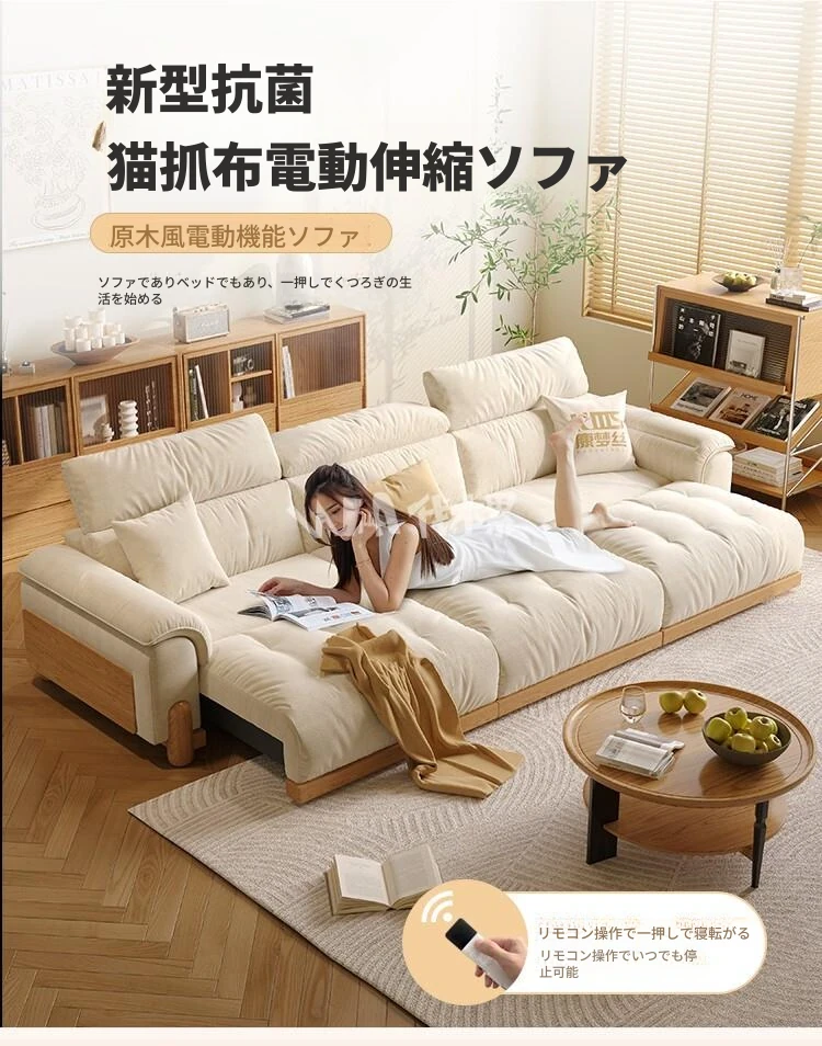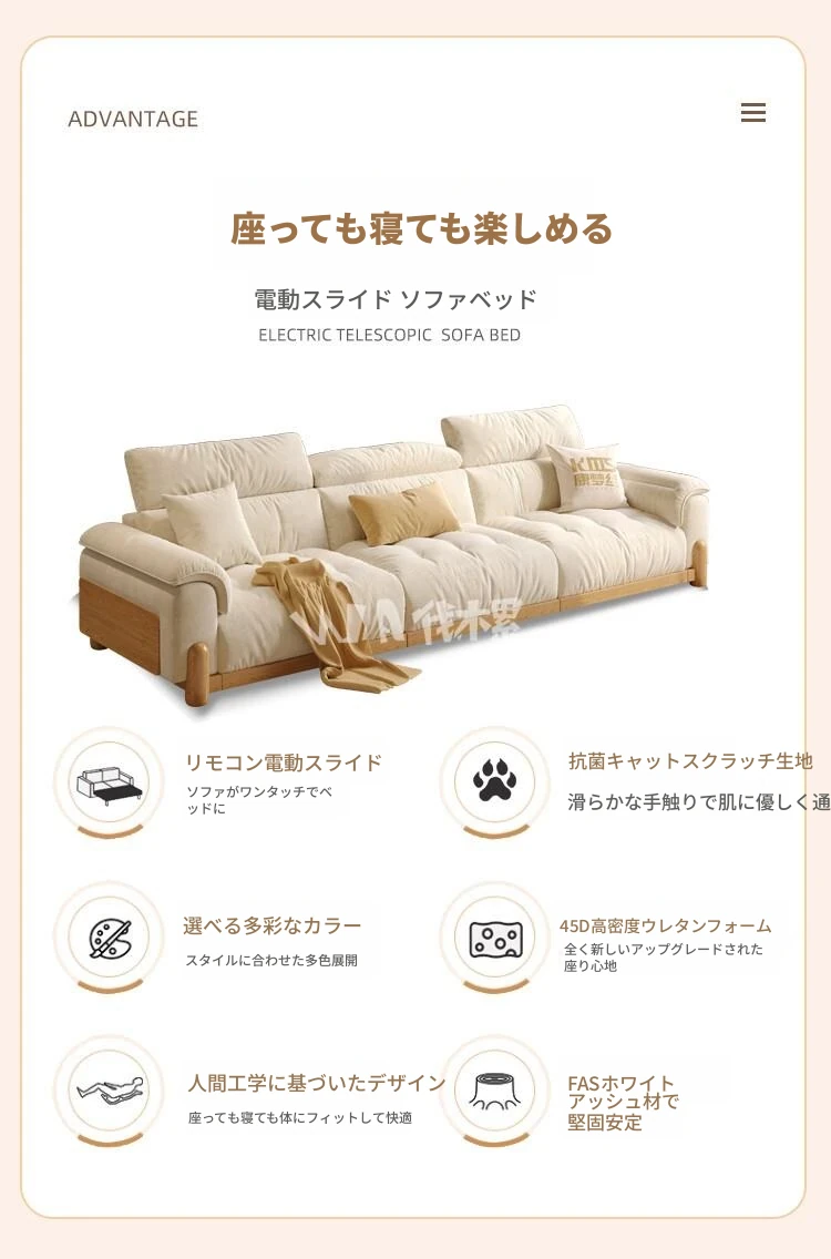 和風クリーム電動ソファ|3人掛け|モダンミニマルデザイン|布製|省スペース対応|リビングにぴったりな木製フレームソファベッド!快適なくつろぎ時間をお届けします。