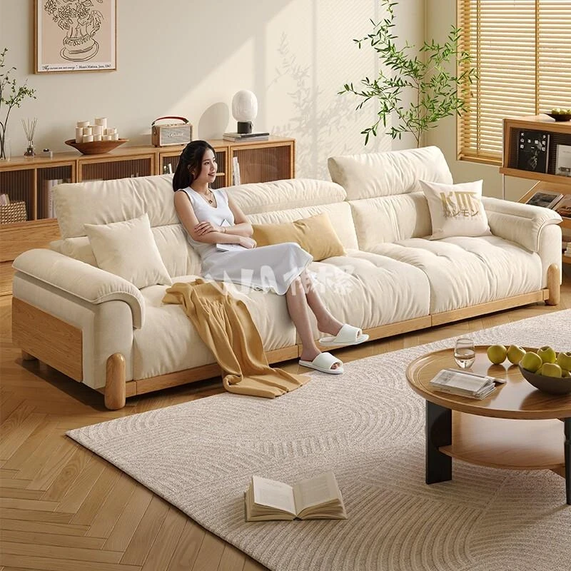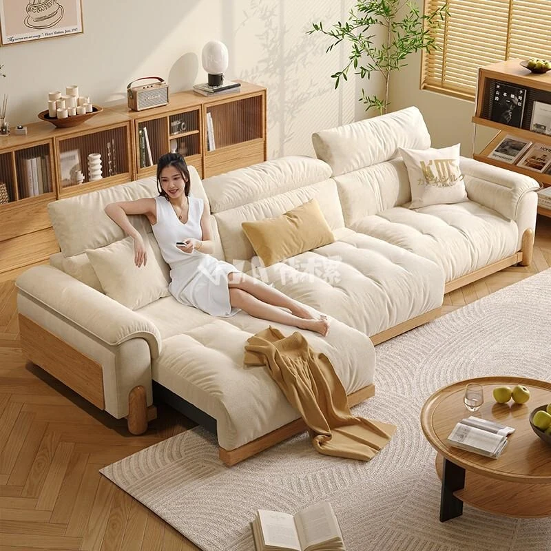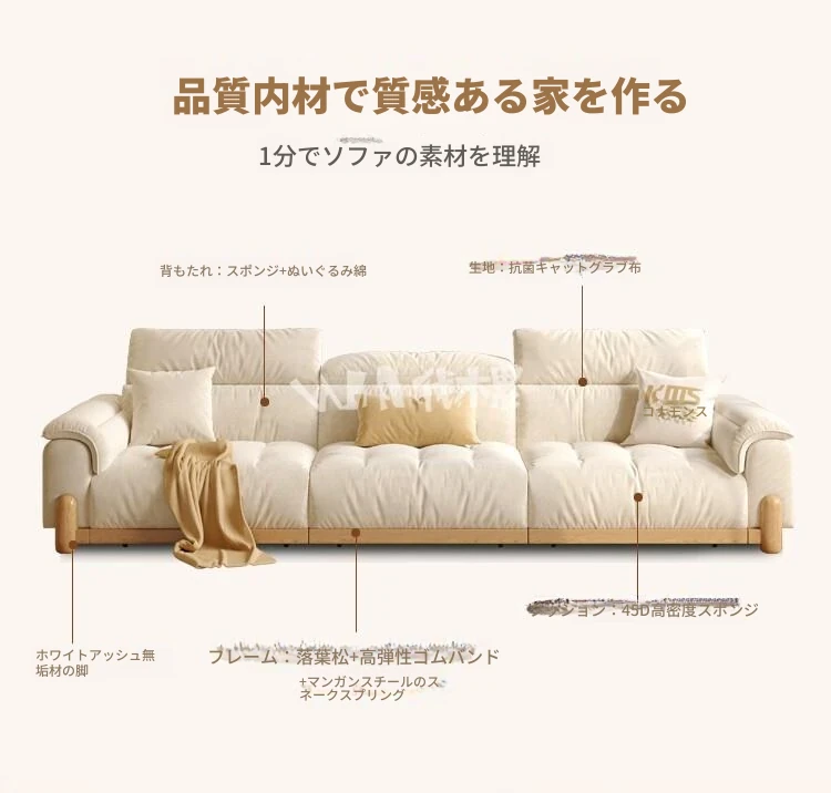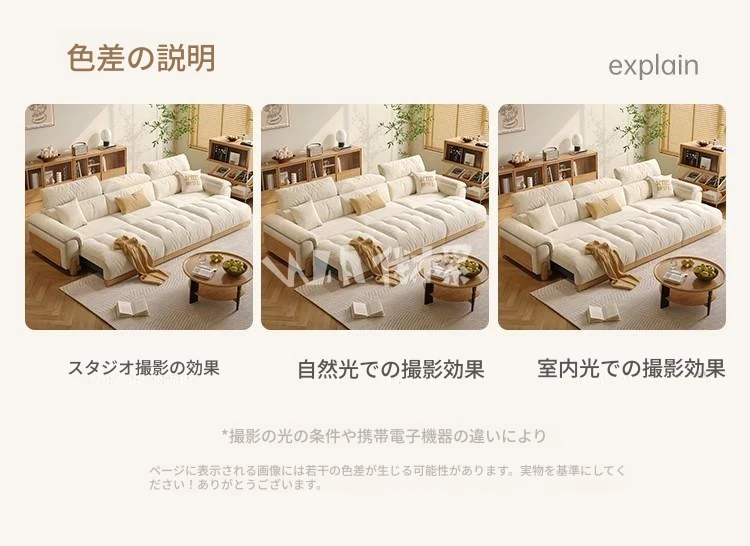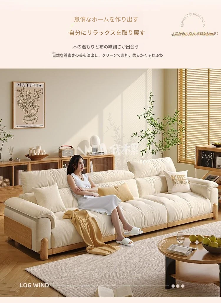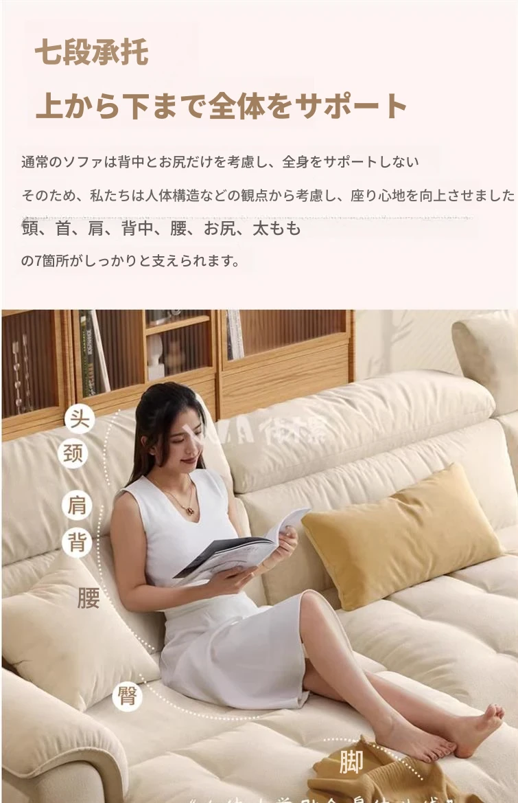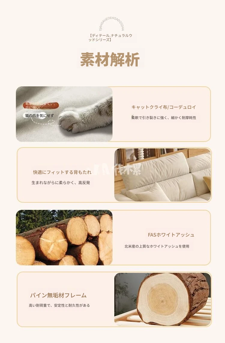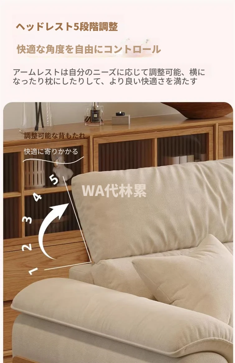 和風クリーム電動ソファ|3人掛け|モダンミニマルデザイン|布製|省スペース対応|リビングにぴったりな木製フレームソファベッド!快適なくつろぎ時間をお届けします。