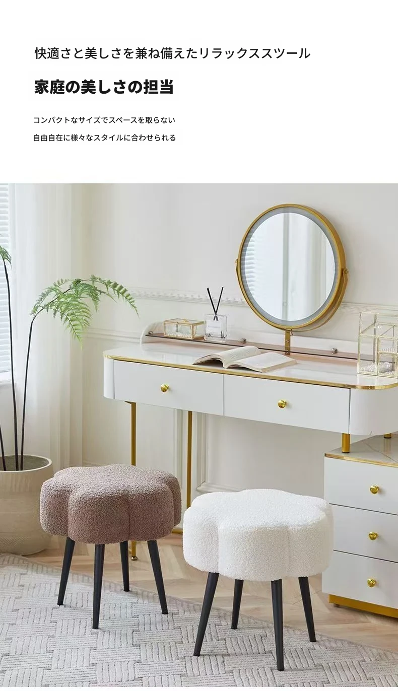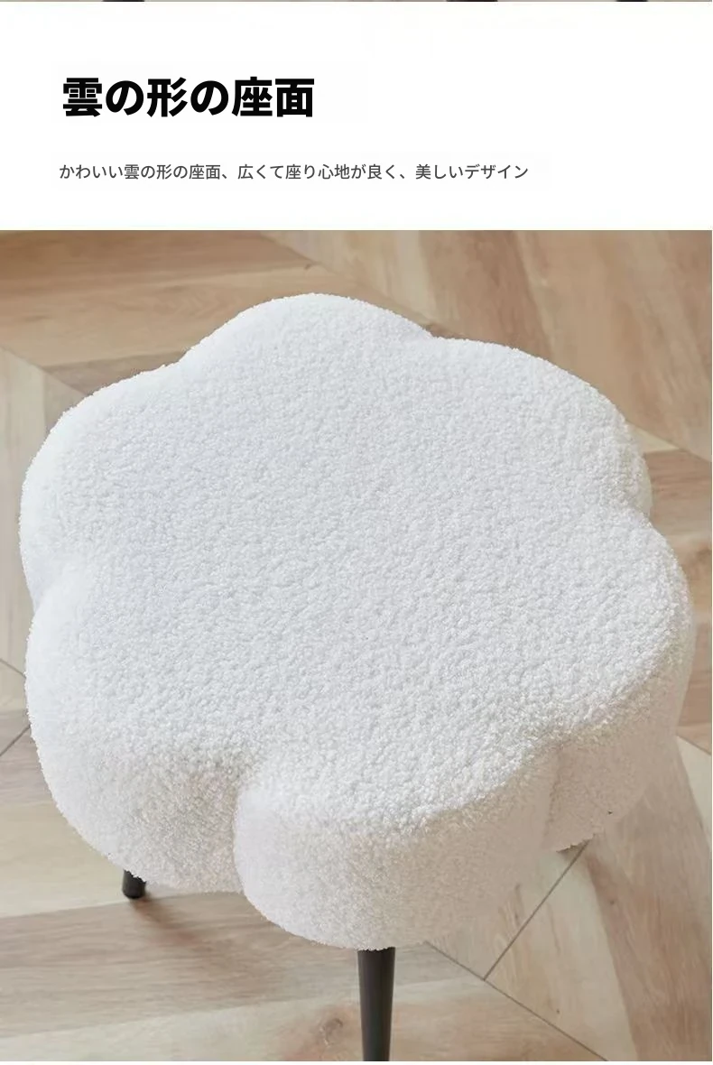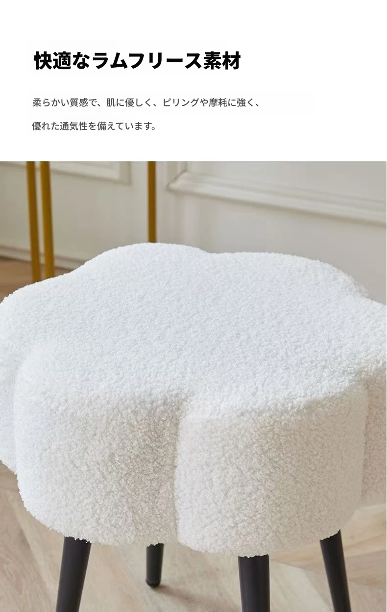 ふわふわのラムファー化粧台イス - おしゃれで高級感あふれるインスタ風のデザイン!シンプルでモダンなスタイル、寝室や試着室にぴったりの雲のような座り心地。あなたのビューティー空間を格上げします!