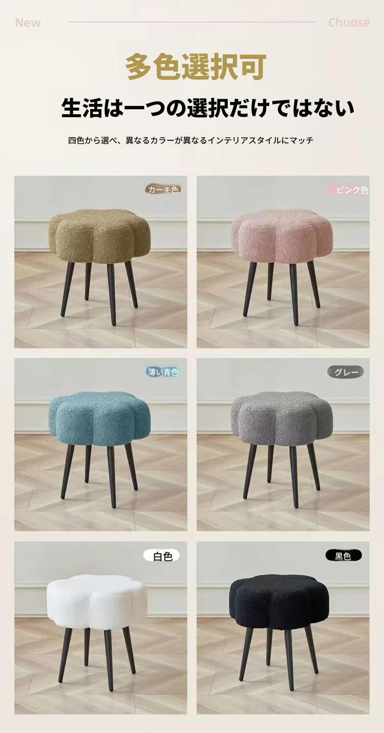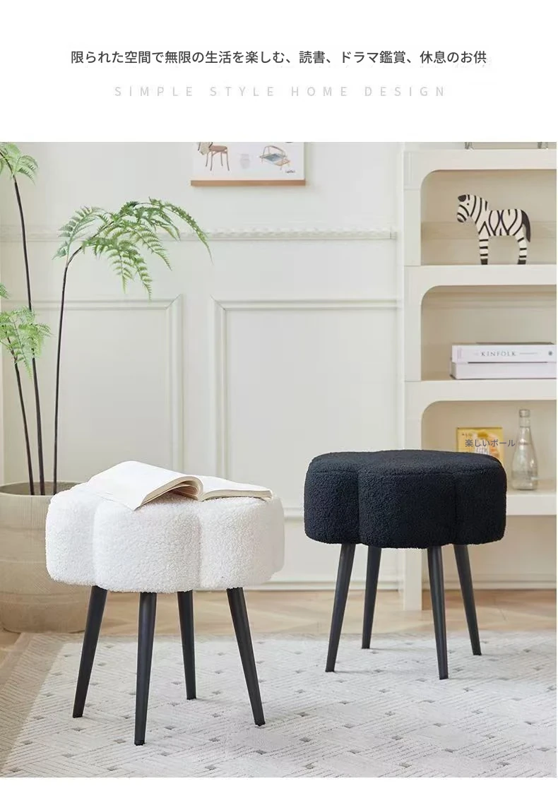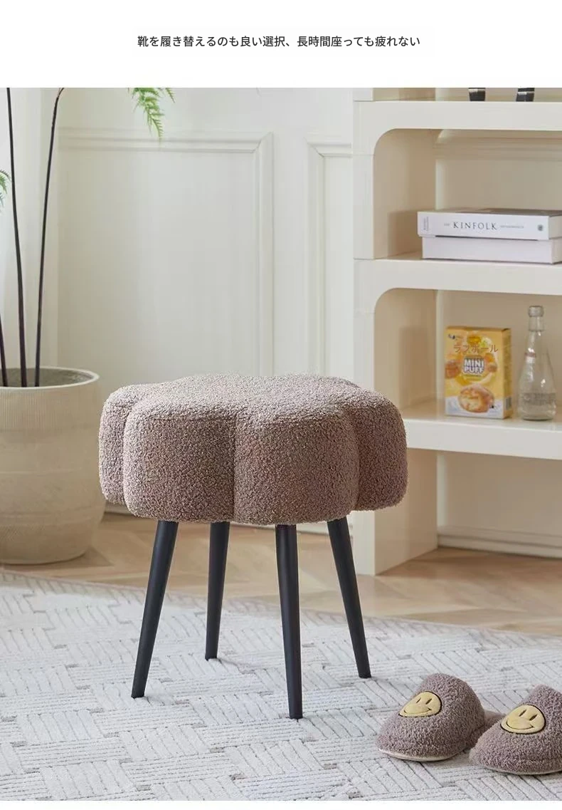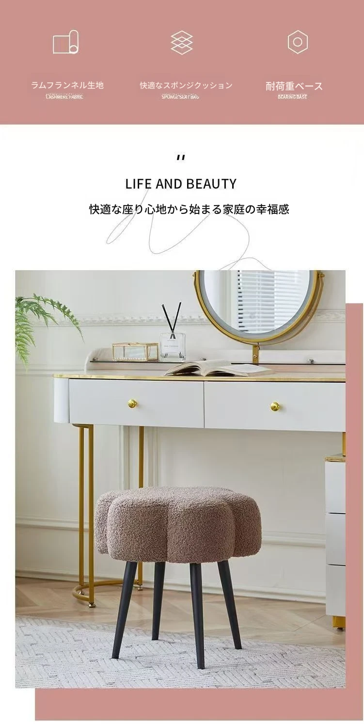 ふわふわのラムファー化粧台イス - おしゃれで高級感あふれるインスタ風のデザイン!シンプルでモダンなスタイル、寝室や試着室にぴったりの雲のような座り心地。あなたのビューティー空間を格上げします!