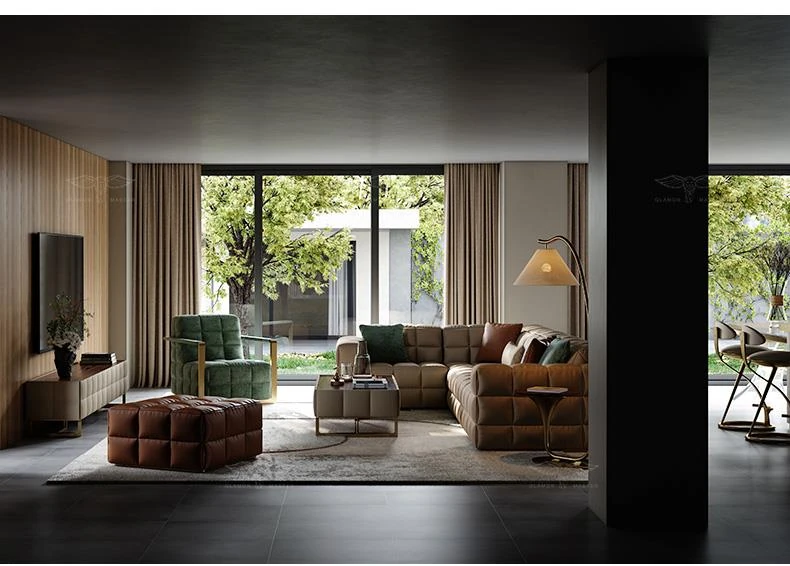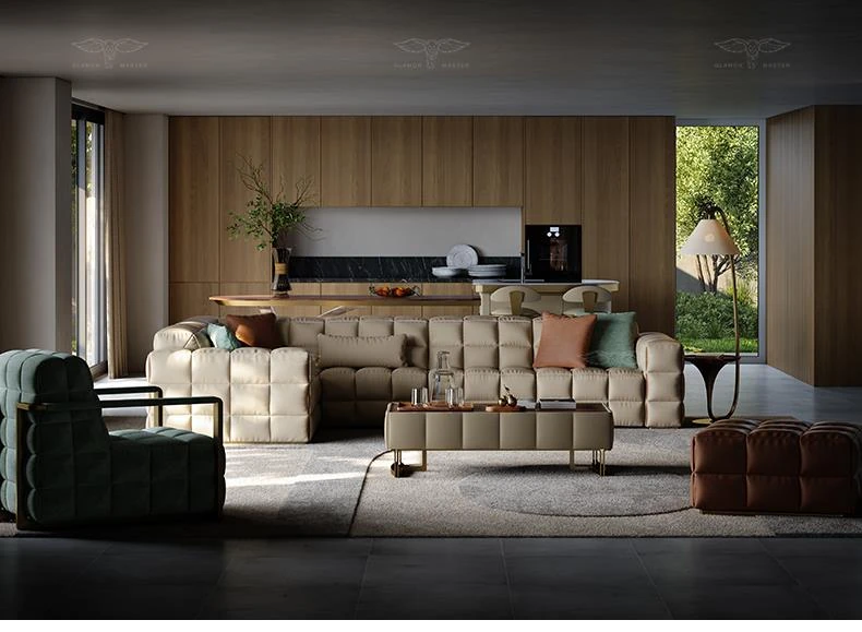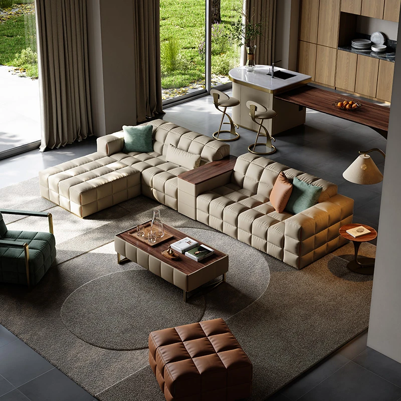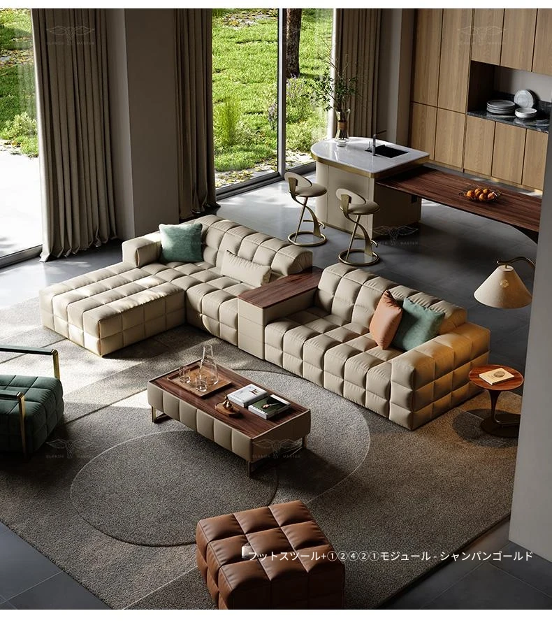 多機能電動ソファ|本革使用のラグジュアリーな別荘リビング向け電動モジュールソファセット!快適さとスタイルを兼ね備えた贅沢な空間を演出します。あなたの生活に特別なひとときを。