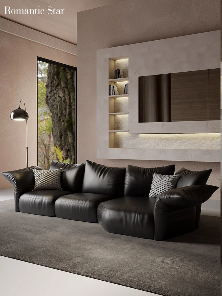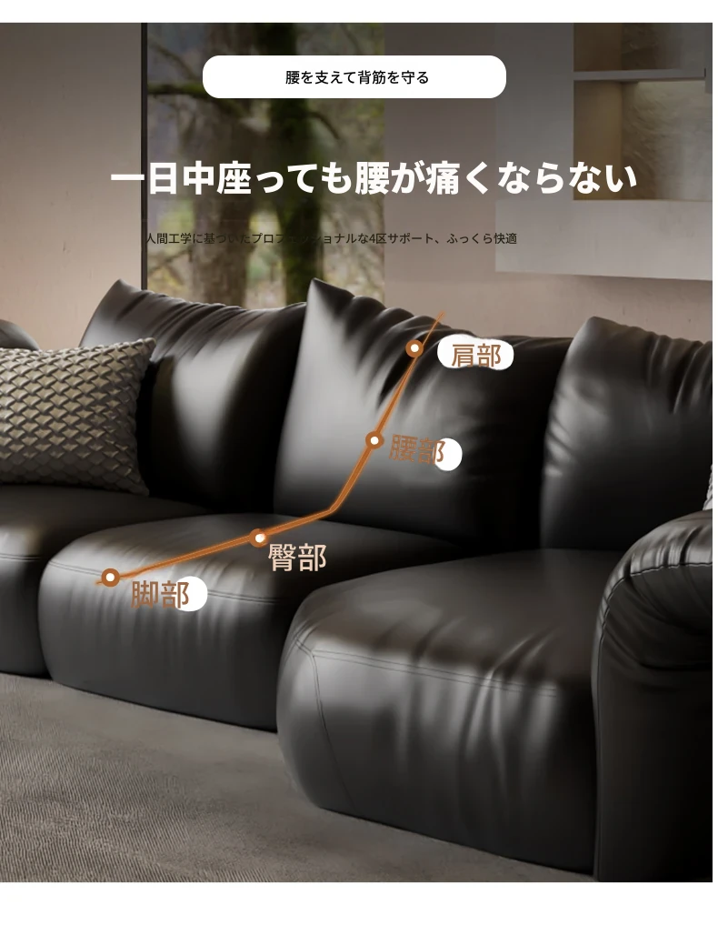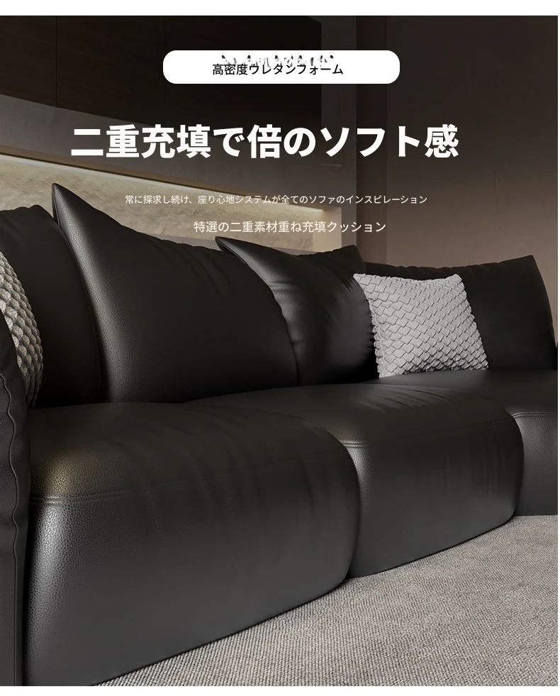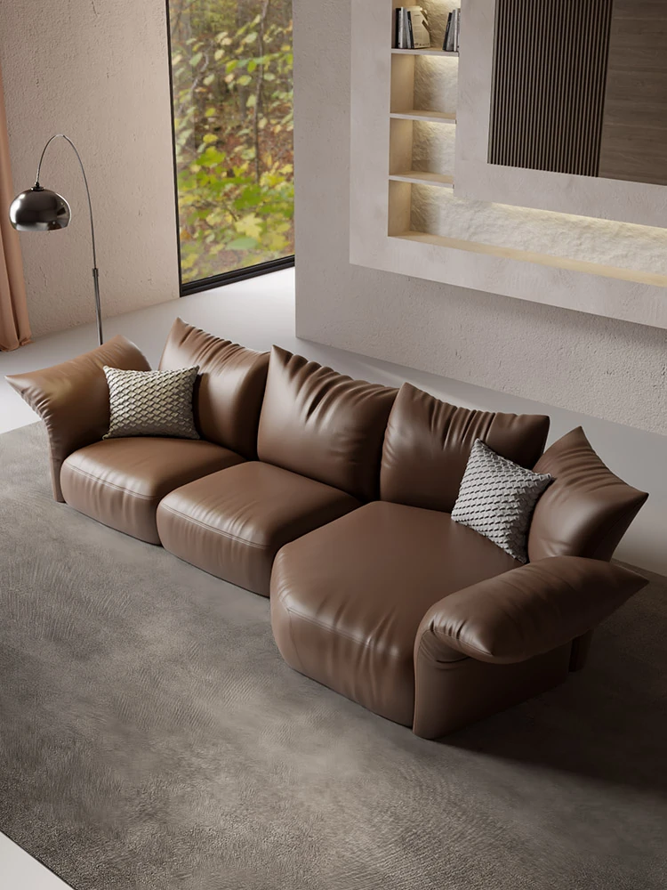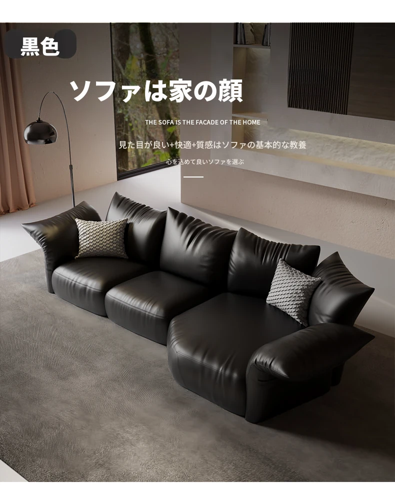 花びらソファ|本革製のユニークデザイン|ラグジュアリーな高級ヴィラリビングに最適|デザイナーによるアーチ型コーナーコンビネーション|機能的でスタイリッシュな直線配置