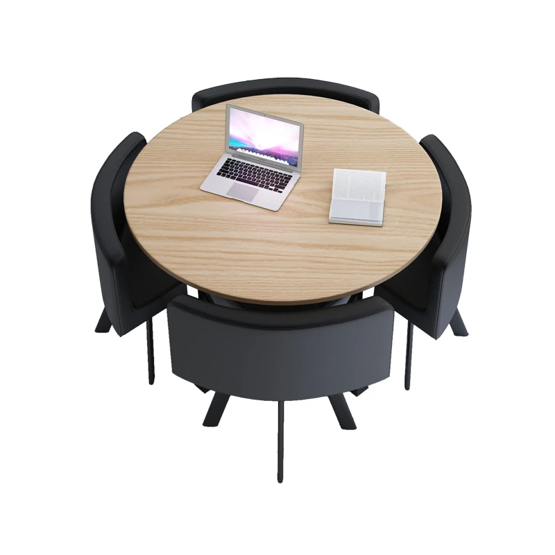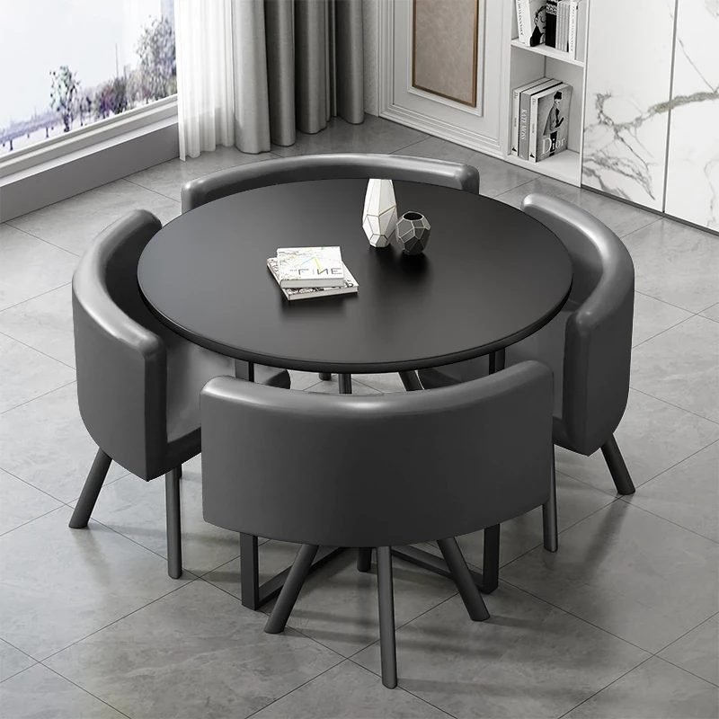 黒丸+灰皮椅子 1テーブル4椅子90*90*75