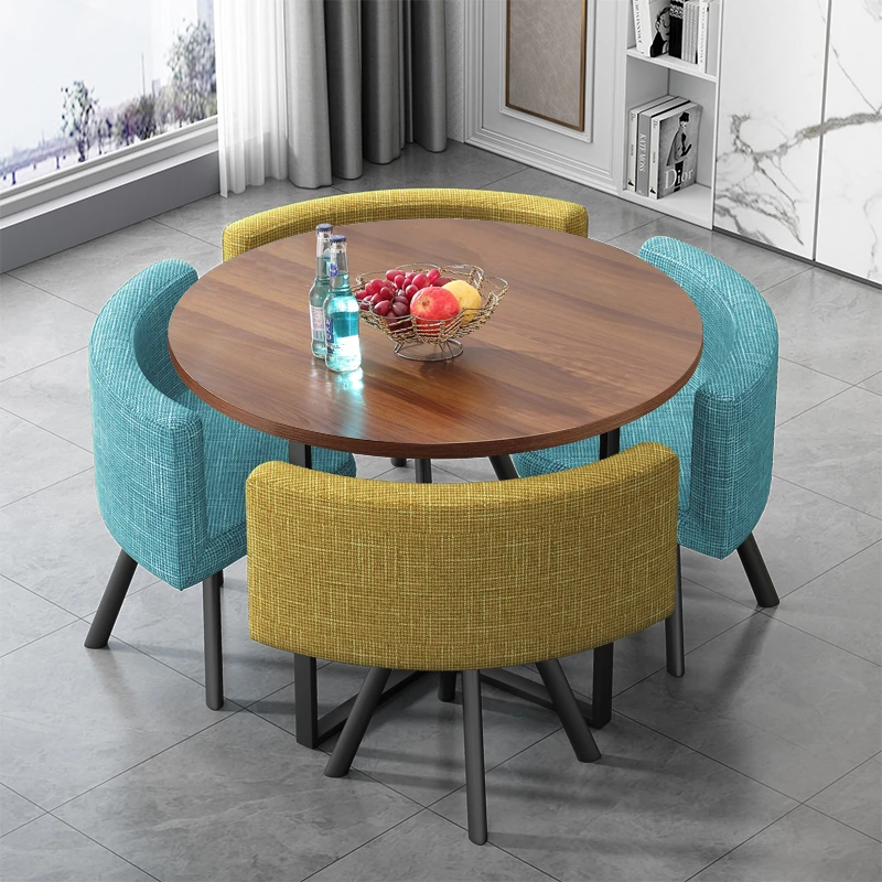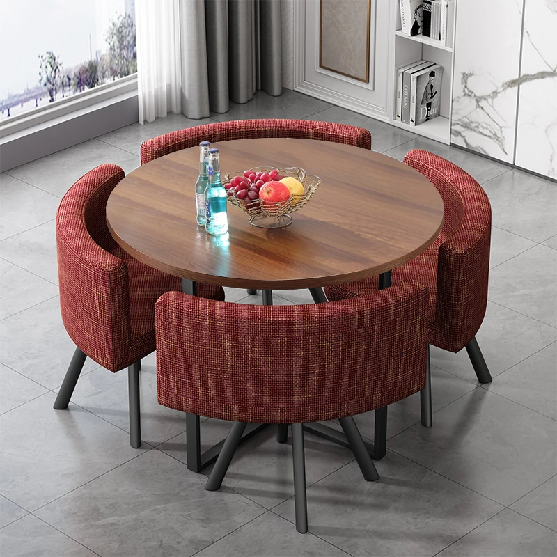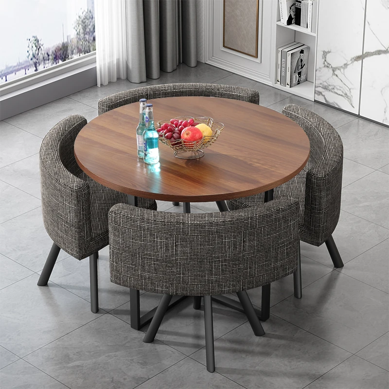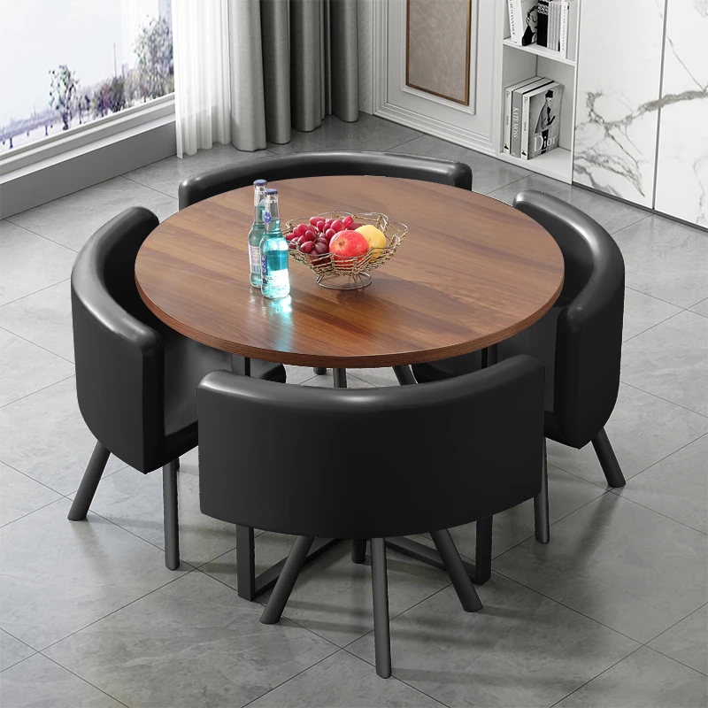 胡桃丸+コーヒー布椅子 1テーブル4椅子90*90*75